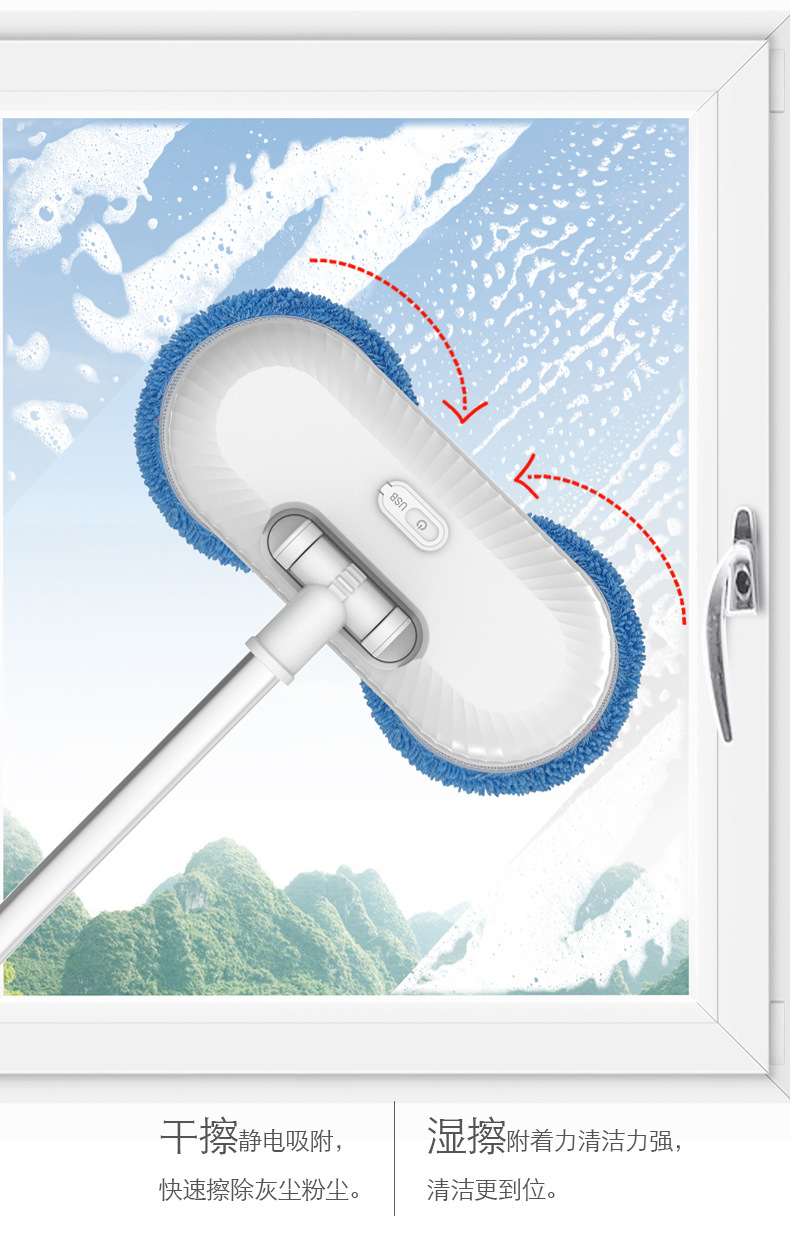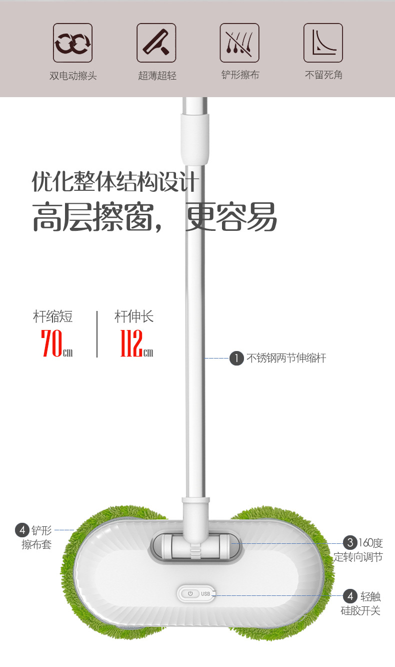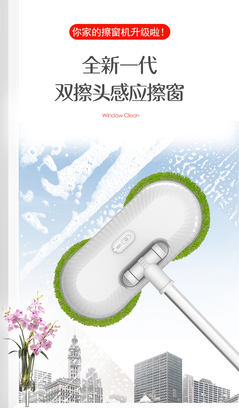 电动伸缩杆双擦头玻璃器/Electric telescopic rod double glass cleaner