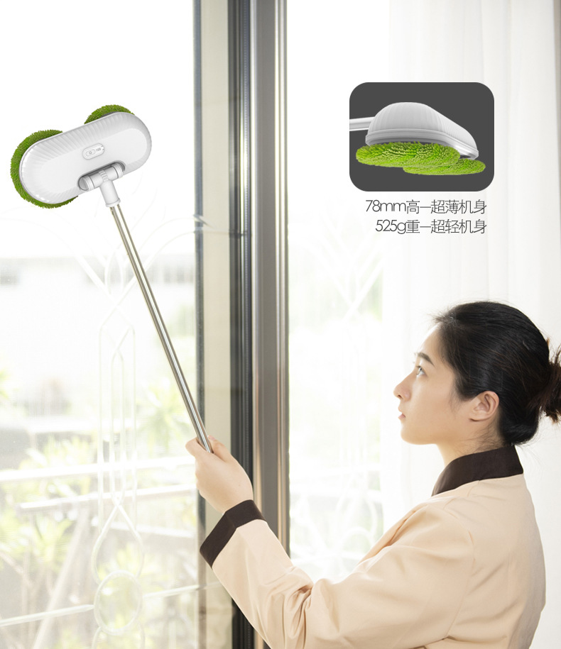 Электрический робот для мытья окон с двумя насадками для домашнего использования, беспроводной телескопический очиститель окон для мытья окон, потолков и высотных зданий.