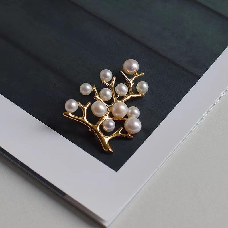 知珍饰品新款生命之树天然珍珠胸针M家同款小众设计百搭大气优雅