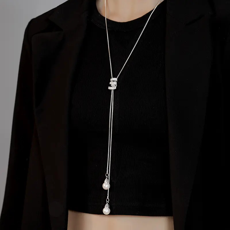 Осенние и зимние жемчужные аксессуары дикие ожерелья длинный свитер простой атмосферный 2024 легкий и роскошный премиум новый дизайн ins