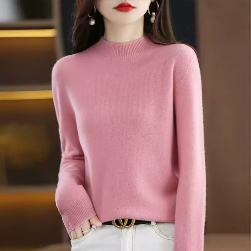 Осенний и зимний новый свитер женский полувысокий воротник с длинными рукавами женский топ свободный тонкий дикий свитер вязаный свитер