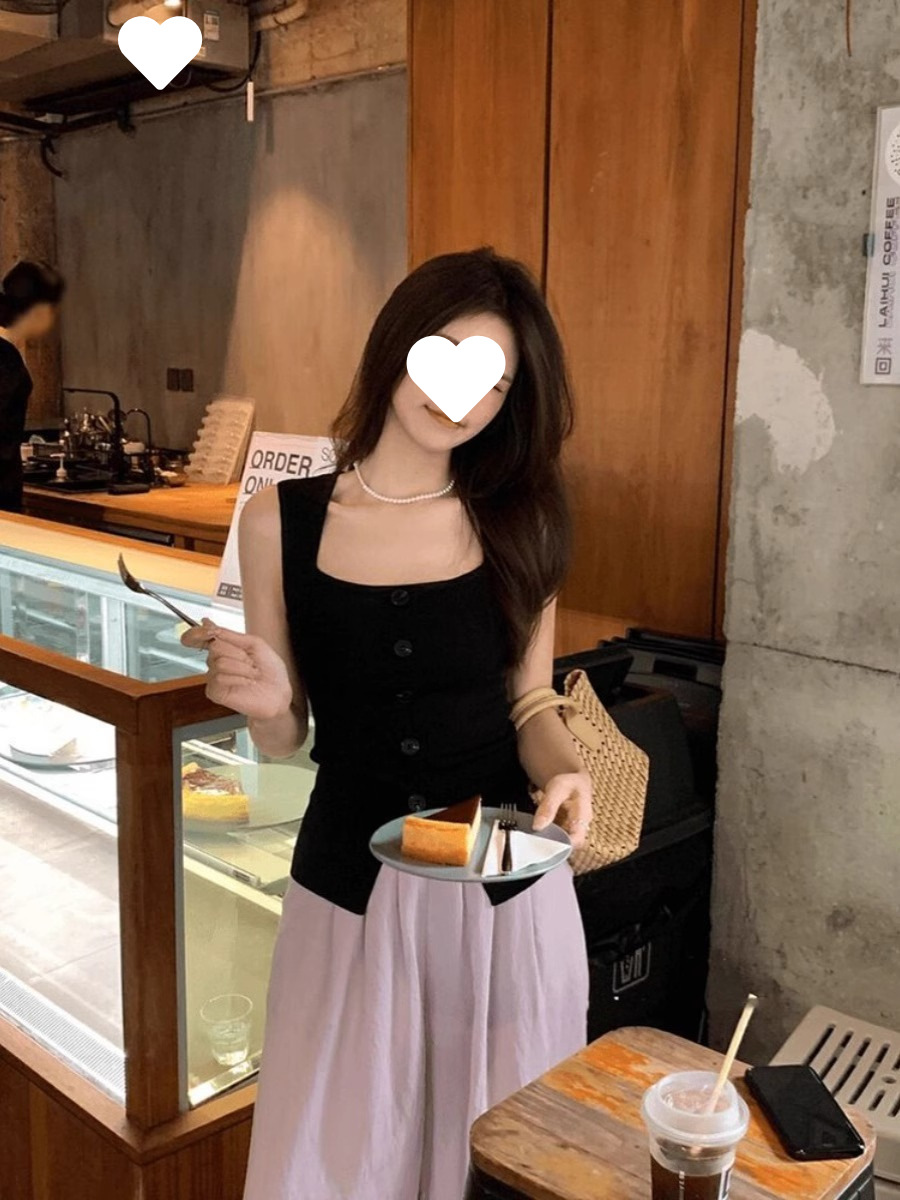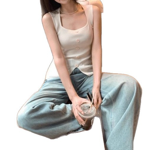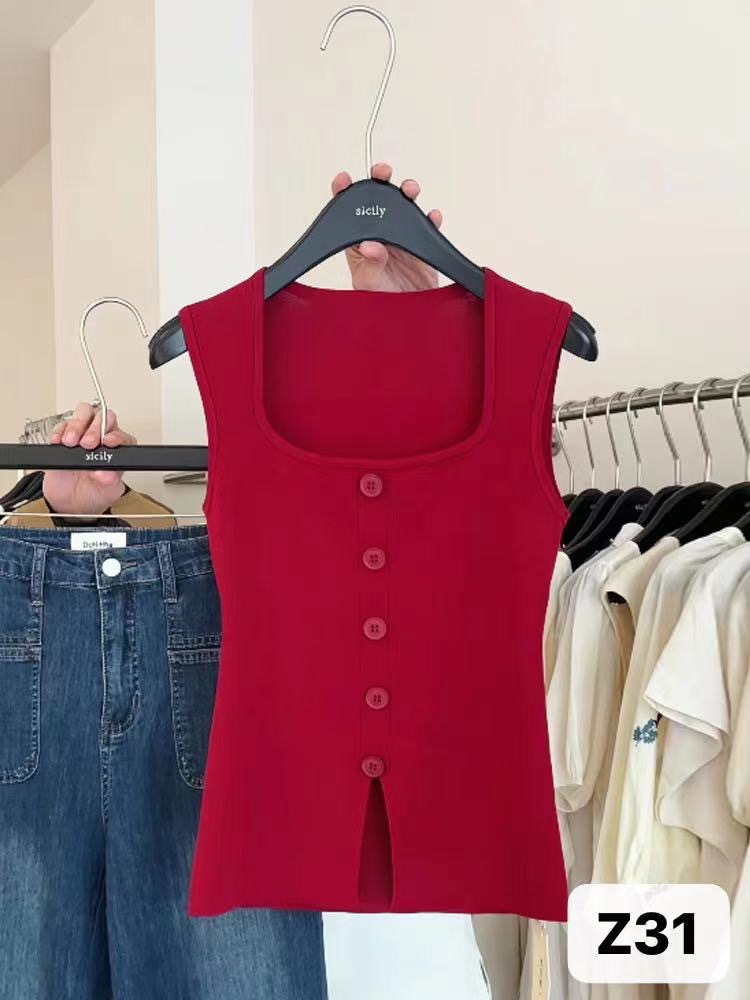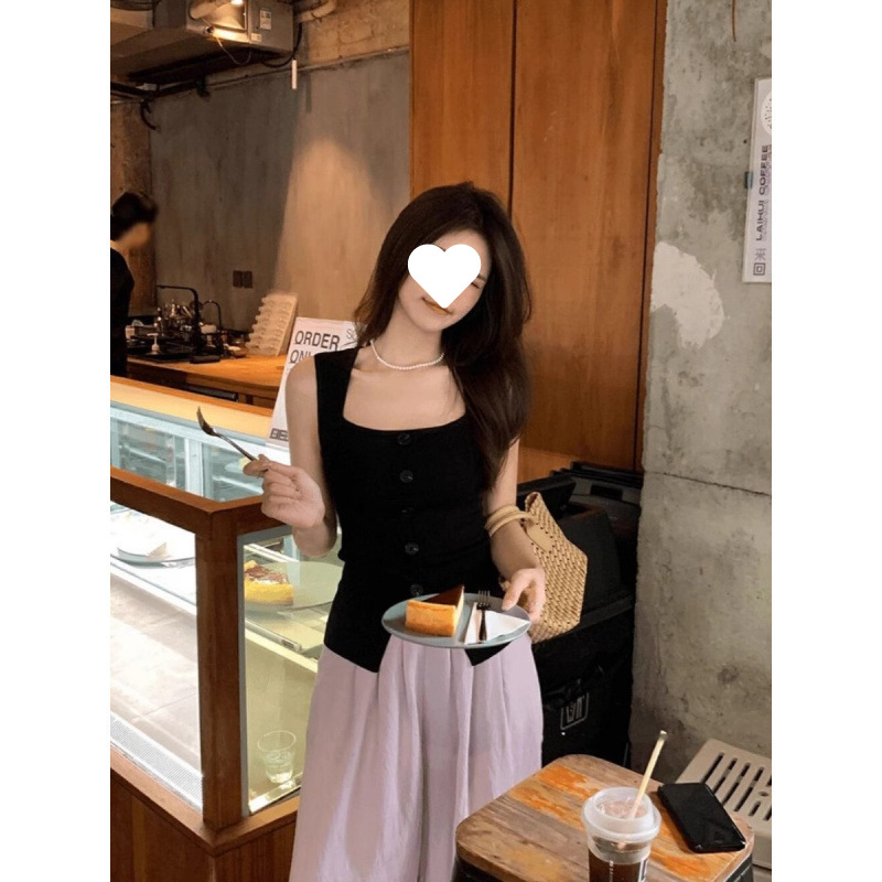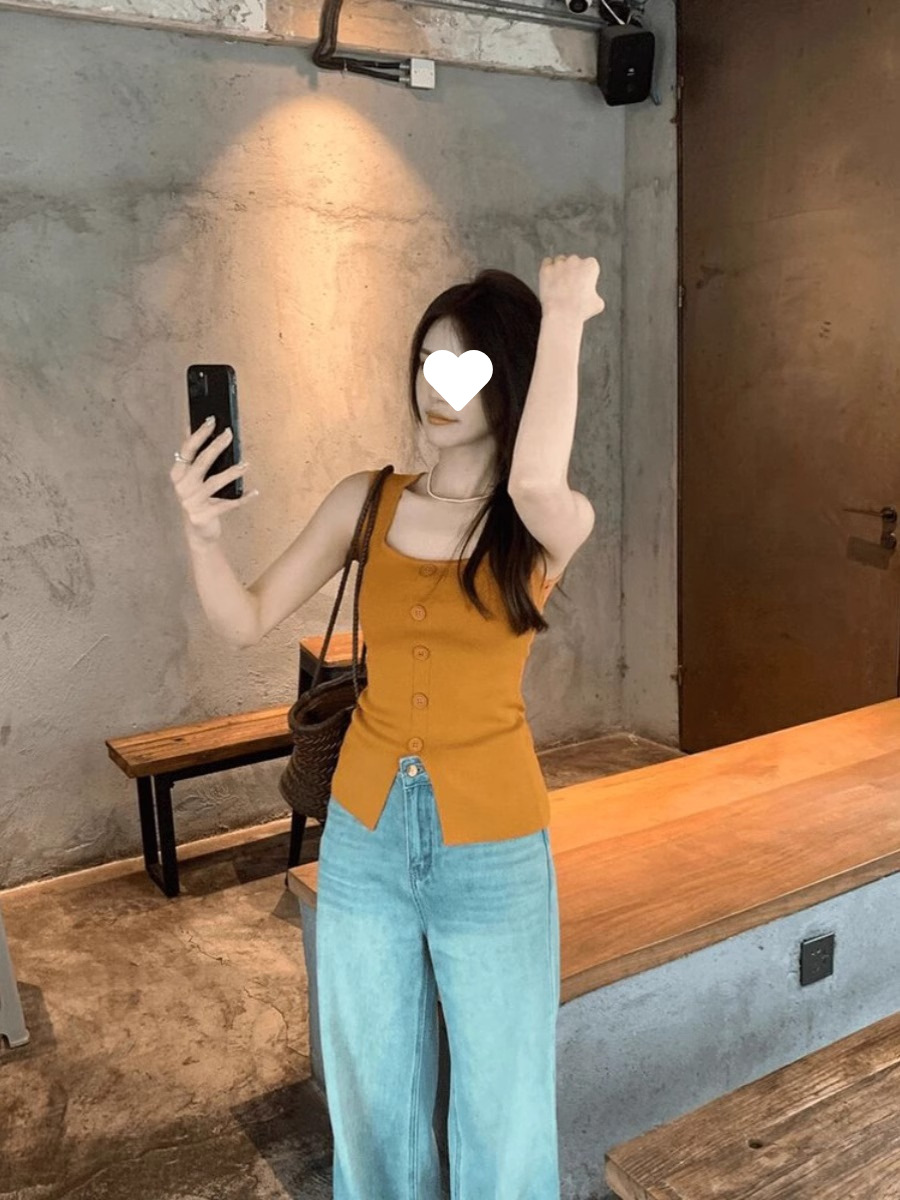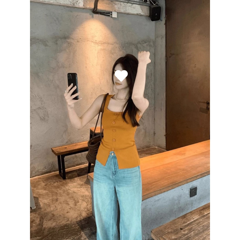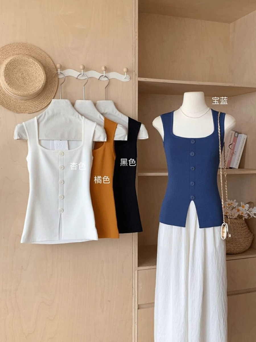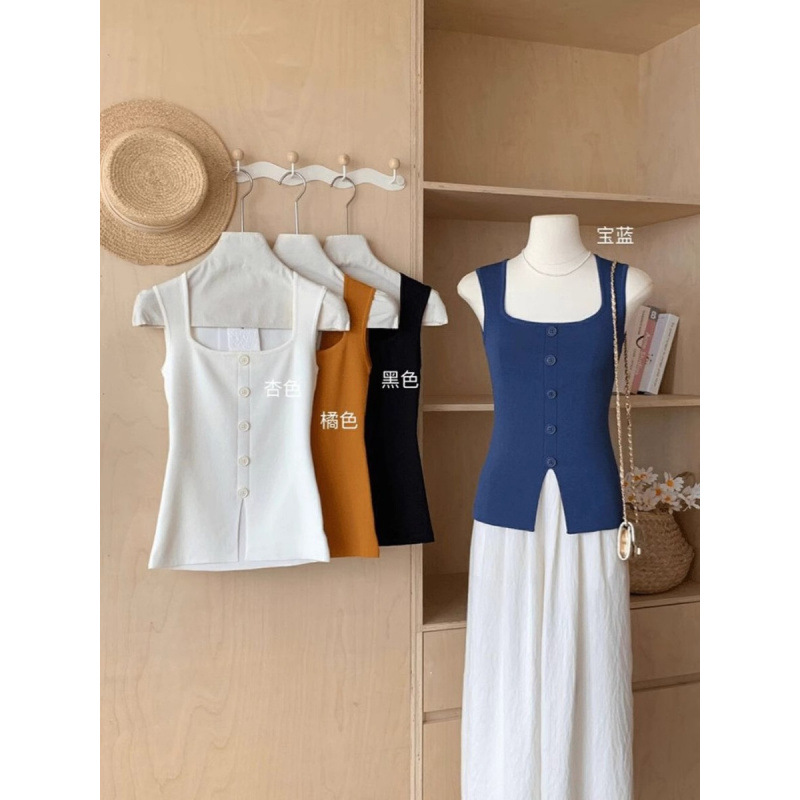 Однобортный вязаный топ с квадратным вырезом для женщин, летний дизайн, облегающий, шикарный и красивый топ без рукавов.