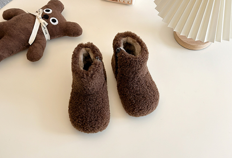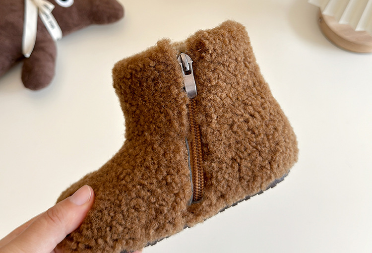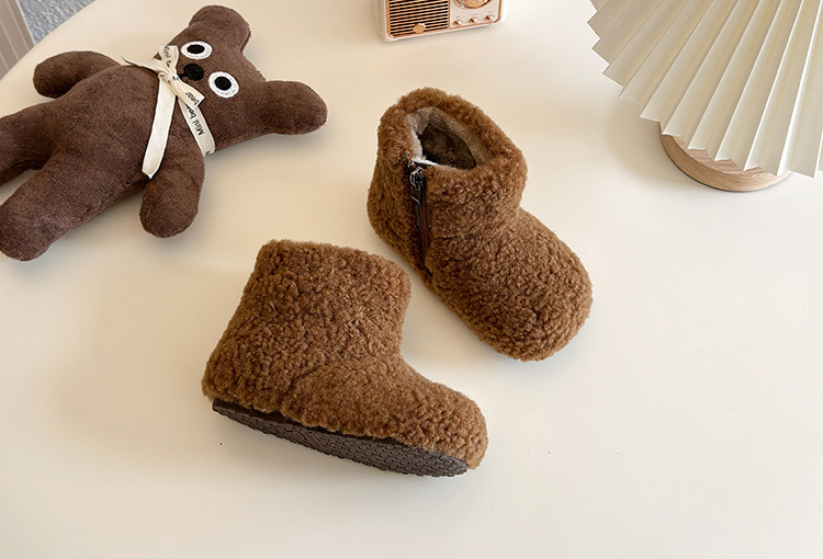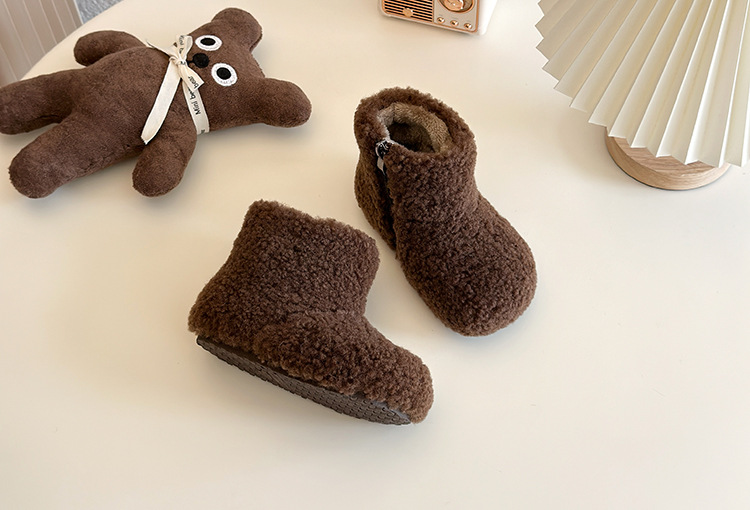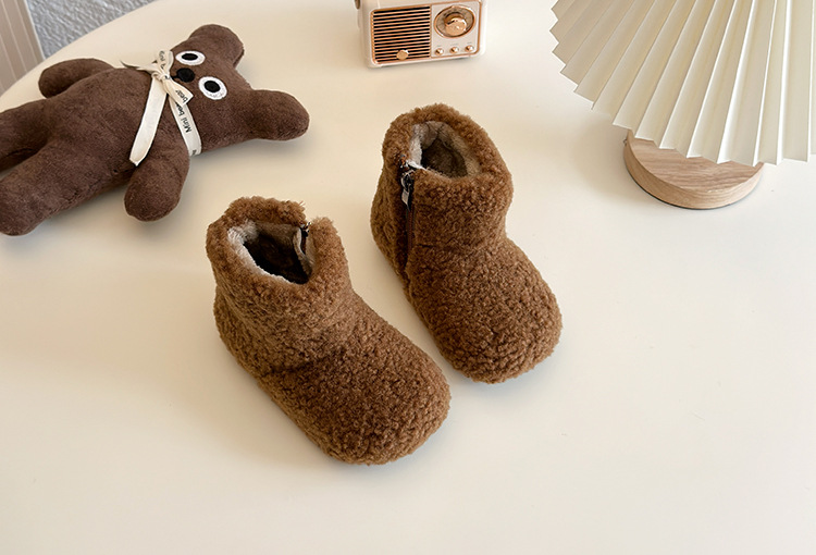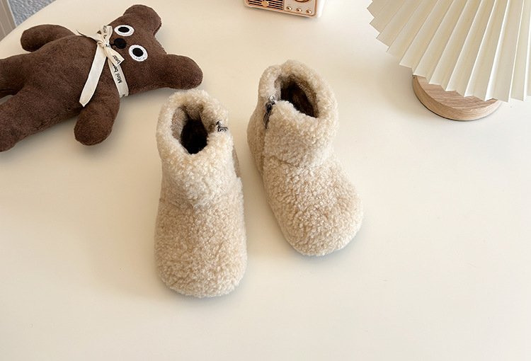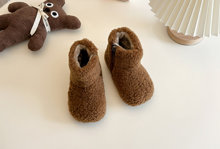 Зимние тёплые детские сапоги в корейском стиле, меховые, 2025 года, короткие, милые, плюшевые, для малышей, из хлопка.