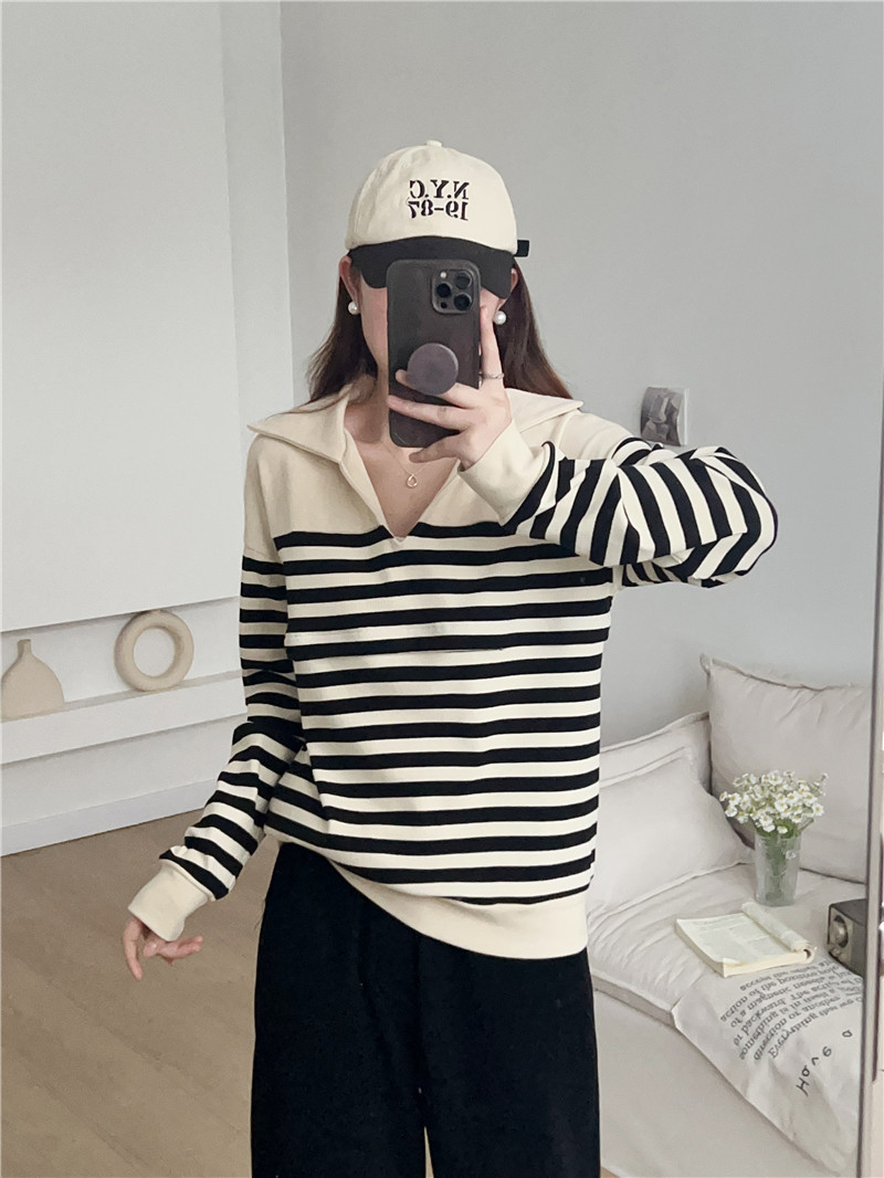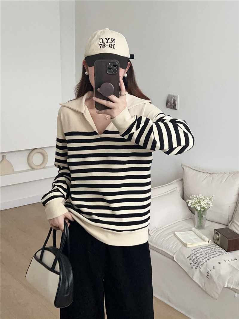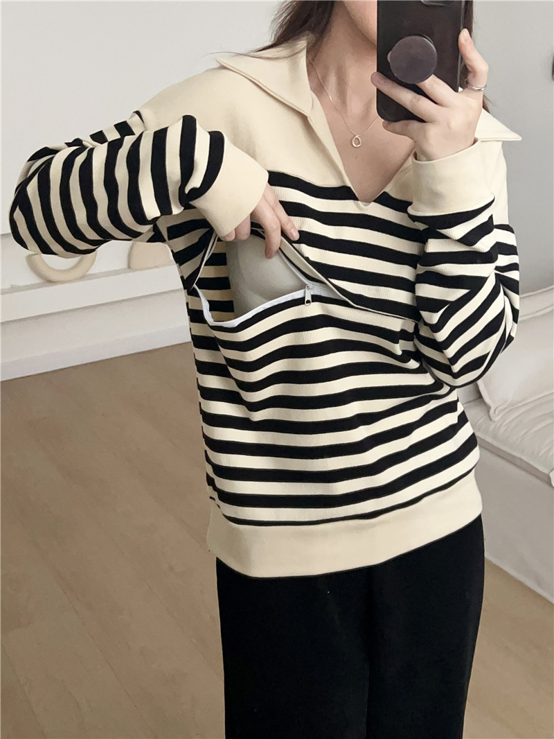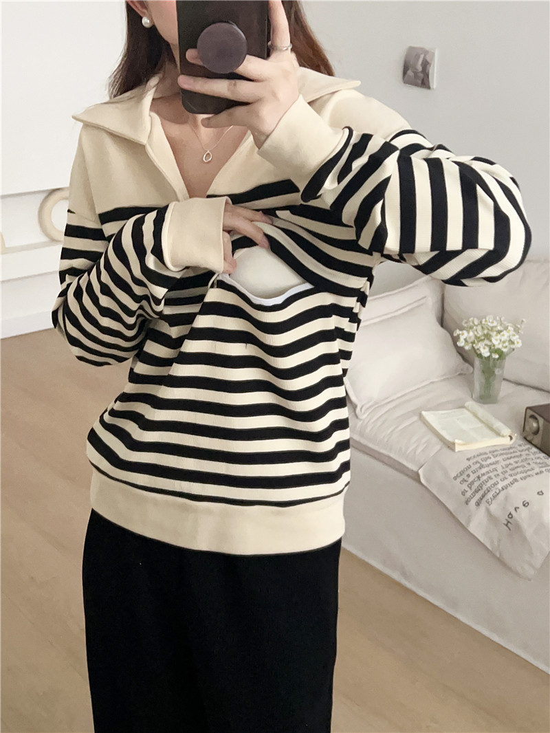 Беременные Повседневный вязаный в полоску с длинными рукавами Весенний и осенний кормящие топ 2307