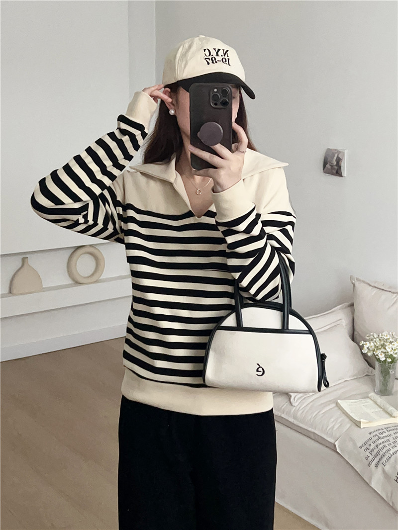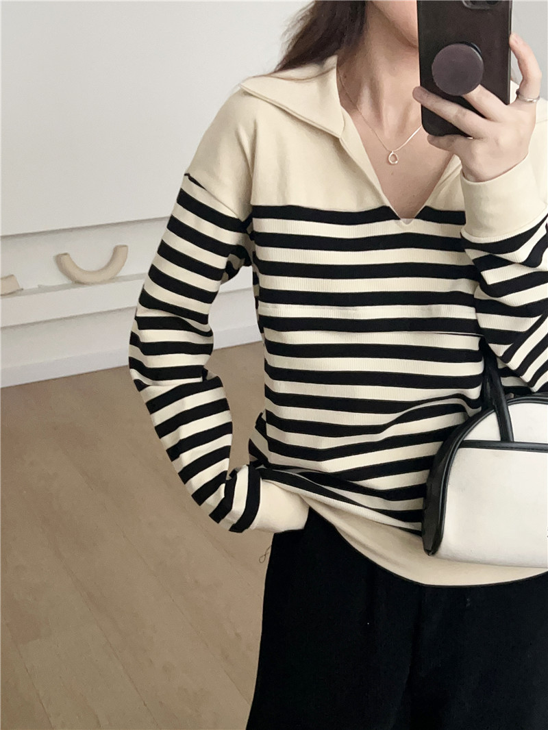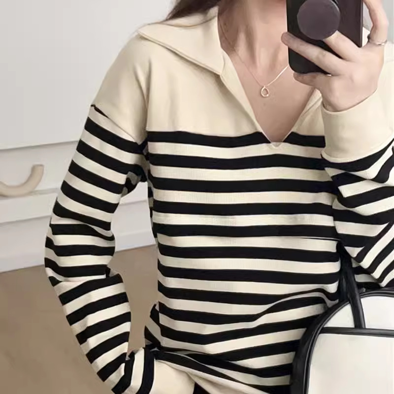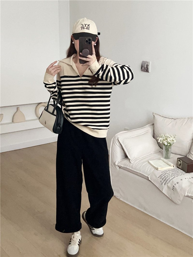 Беременные Повседневный вязаный в полоску с длинными рукавами Весенний и осенний кормящие топ 2307