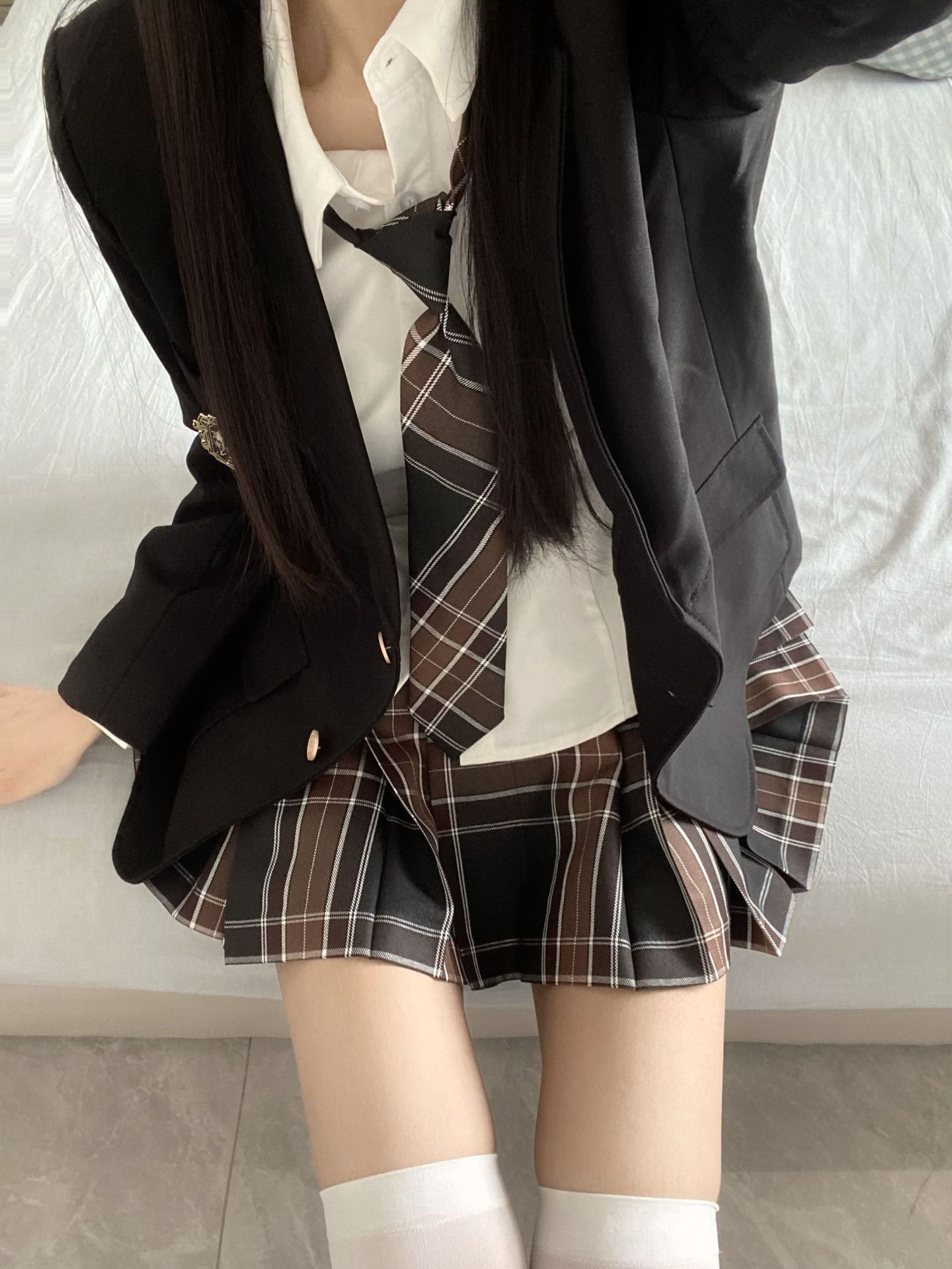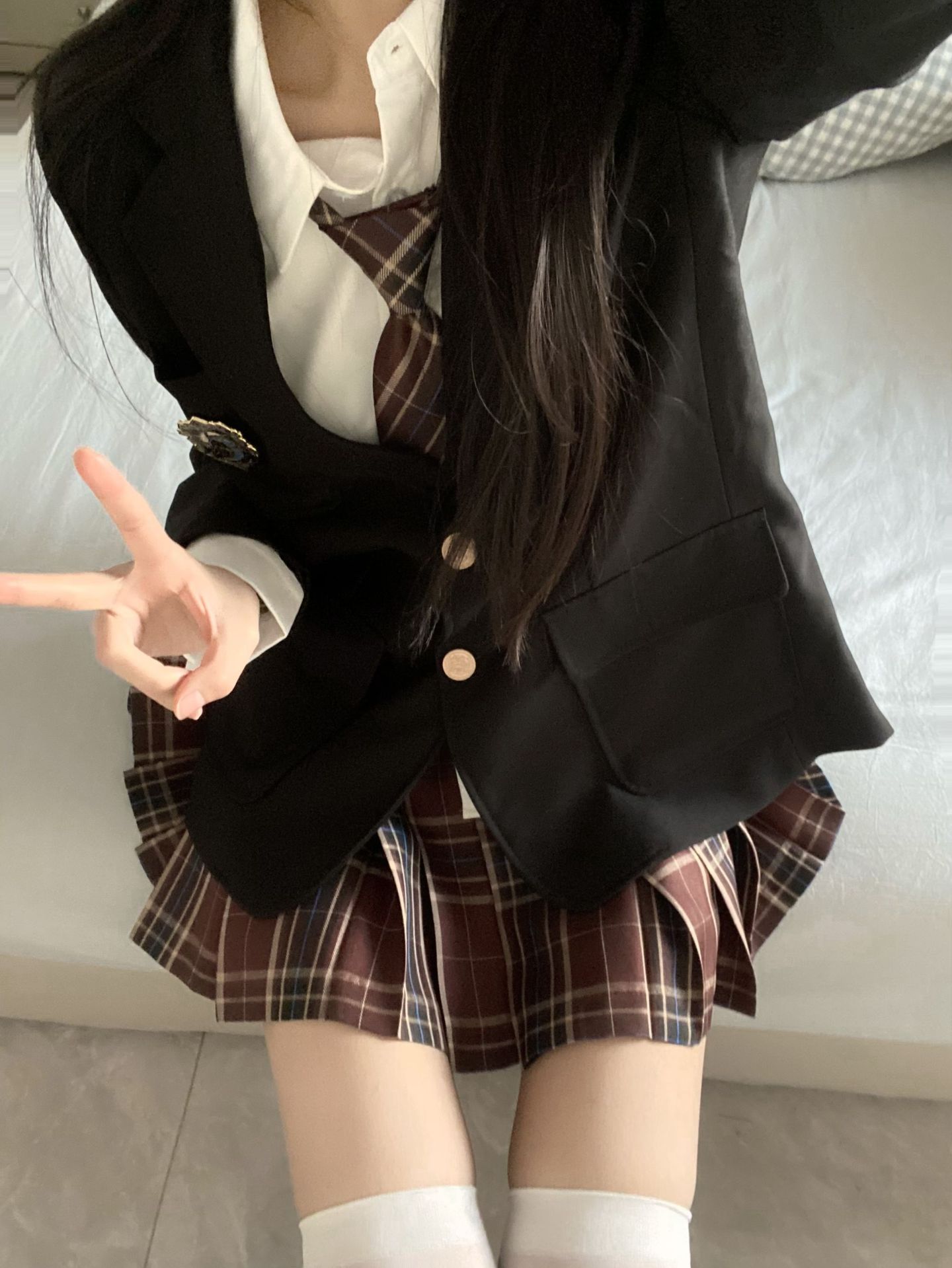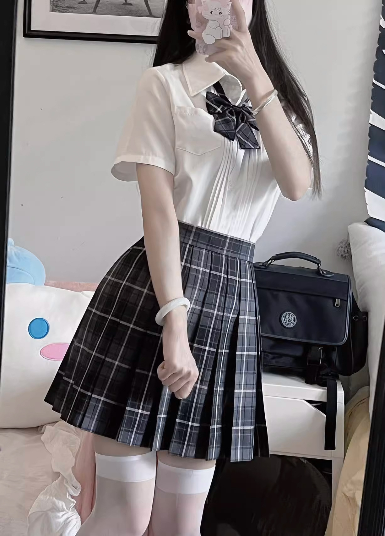 Униформа JK, весенне-осенняя тонкая плиссированная юбка с высокой талией, тонкая универсальная рубашка в школьном стиле, клетчатая юбка, комплект в японском студенческом стиле