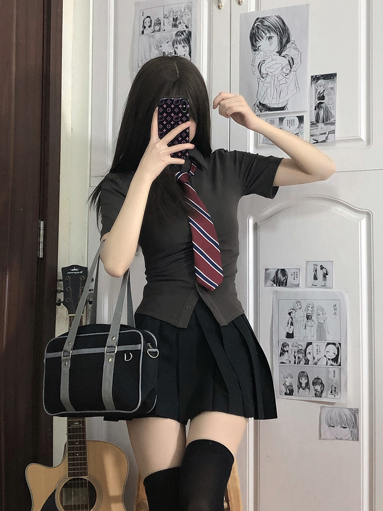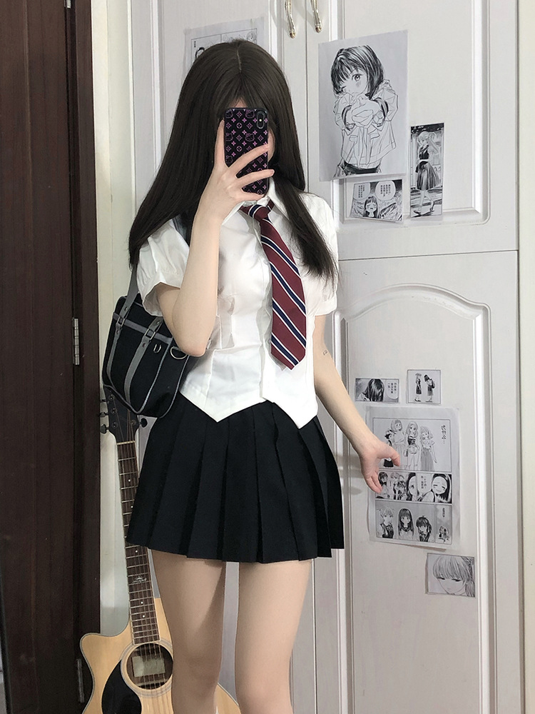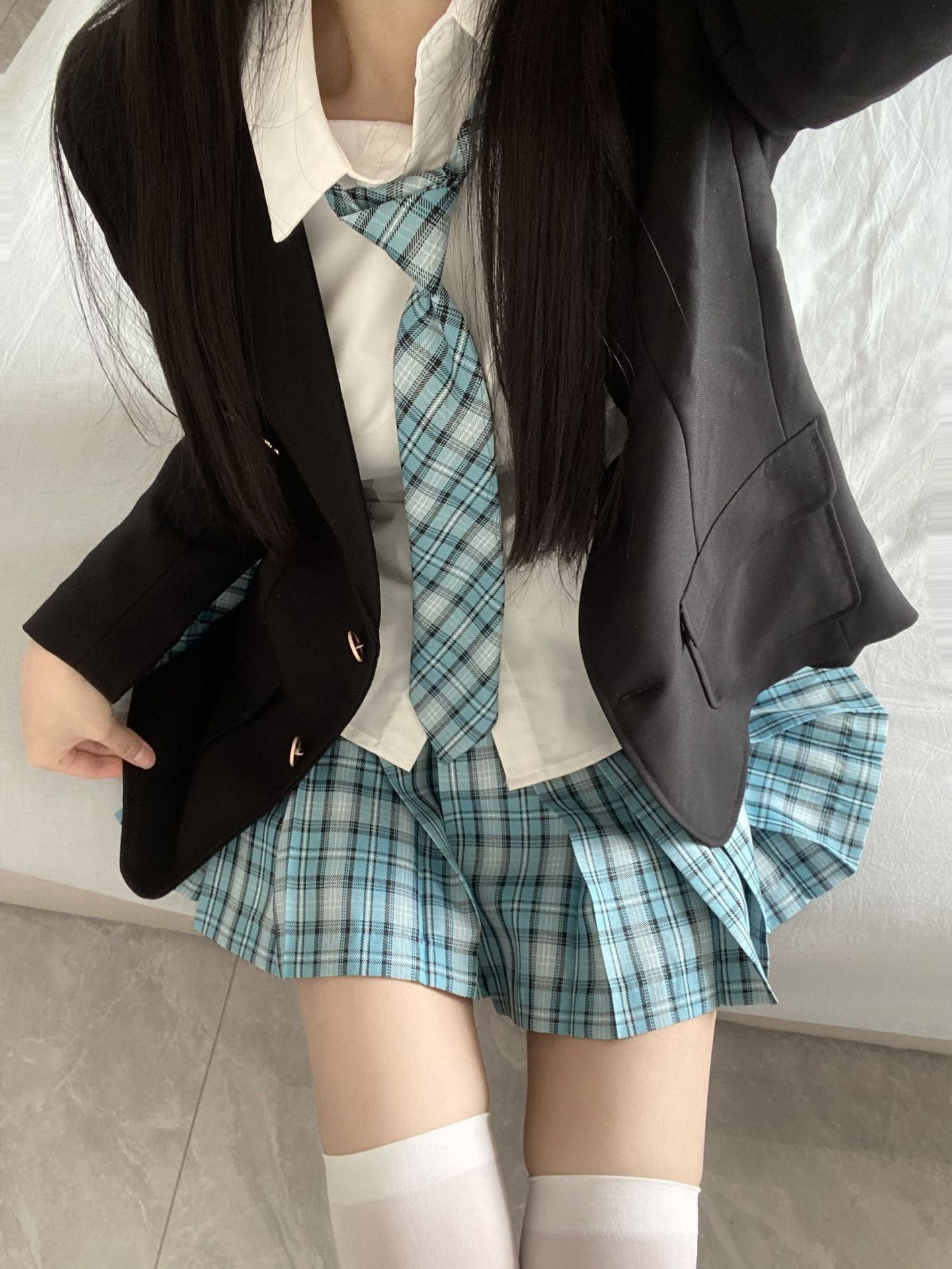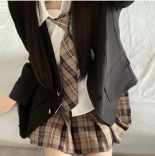 Униформа JK, весенне-осенняя тонкая плиссированная юбка с высокой талией, тонкая универсальная рубашка в школьном стиле, клетчатая юбка, комплект в японском студенческом стиле