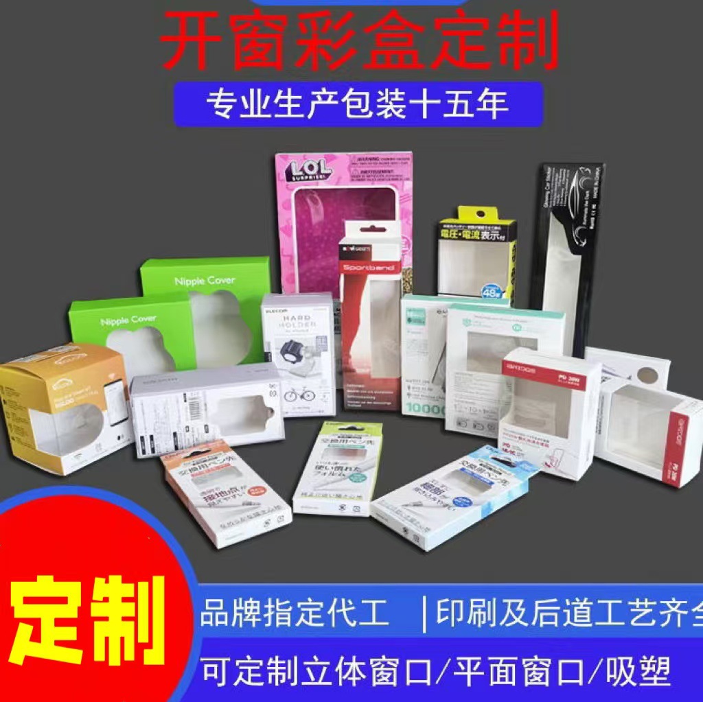Упаковочные изделия с индивидуальной печатью: косметические коробки, упаковочные коробки для электроники, цветная печать, белые картонные коробки с окном из бумаги.
