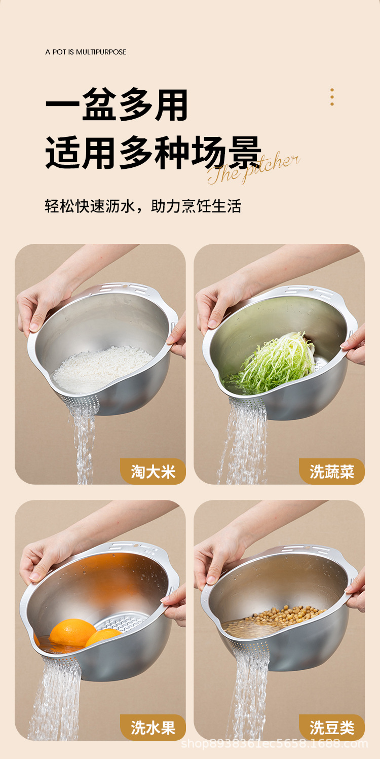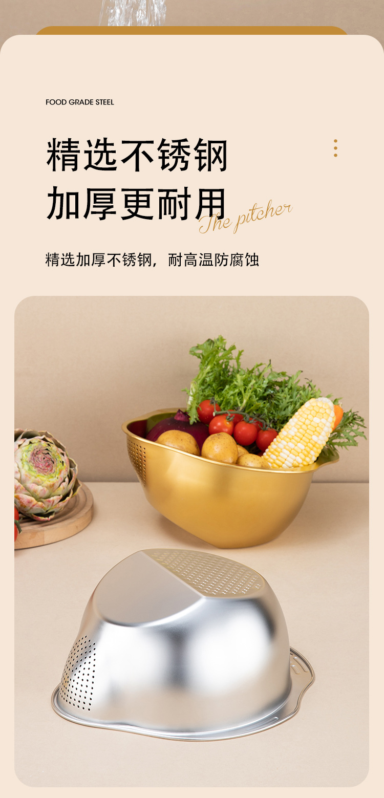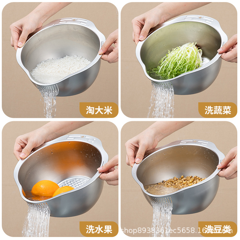 Корзина для мытья овощей из нержавеющей стали, утолщенная, для дома, поддон для фруктов, кухонный дренажный поддон, корзина для слива воды.