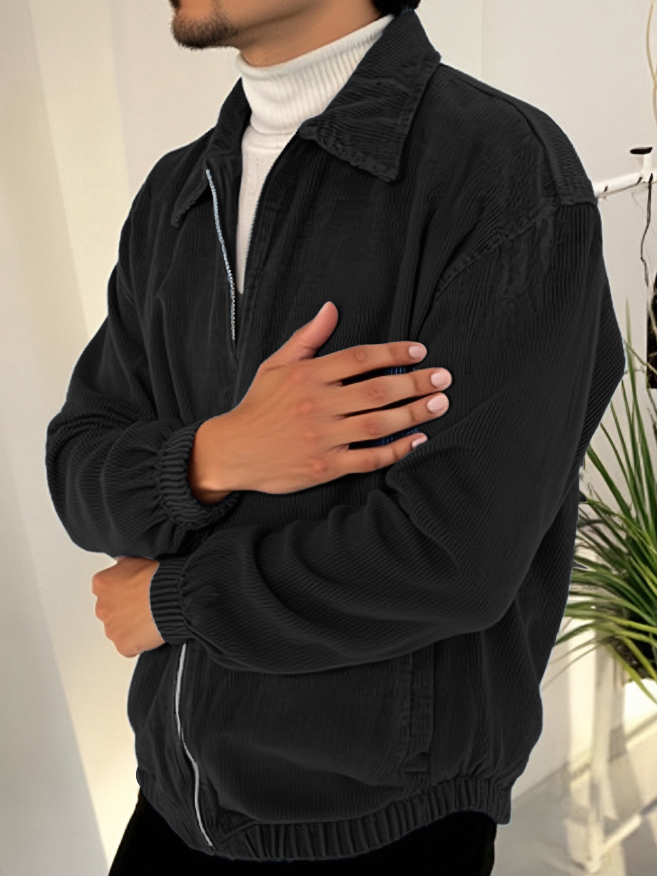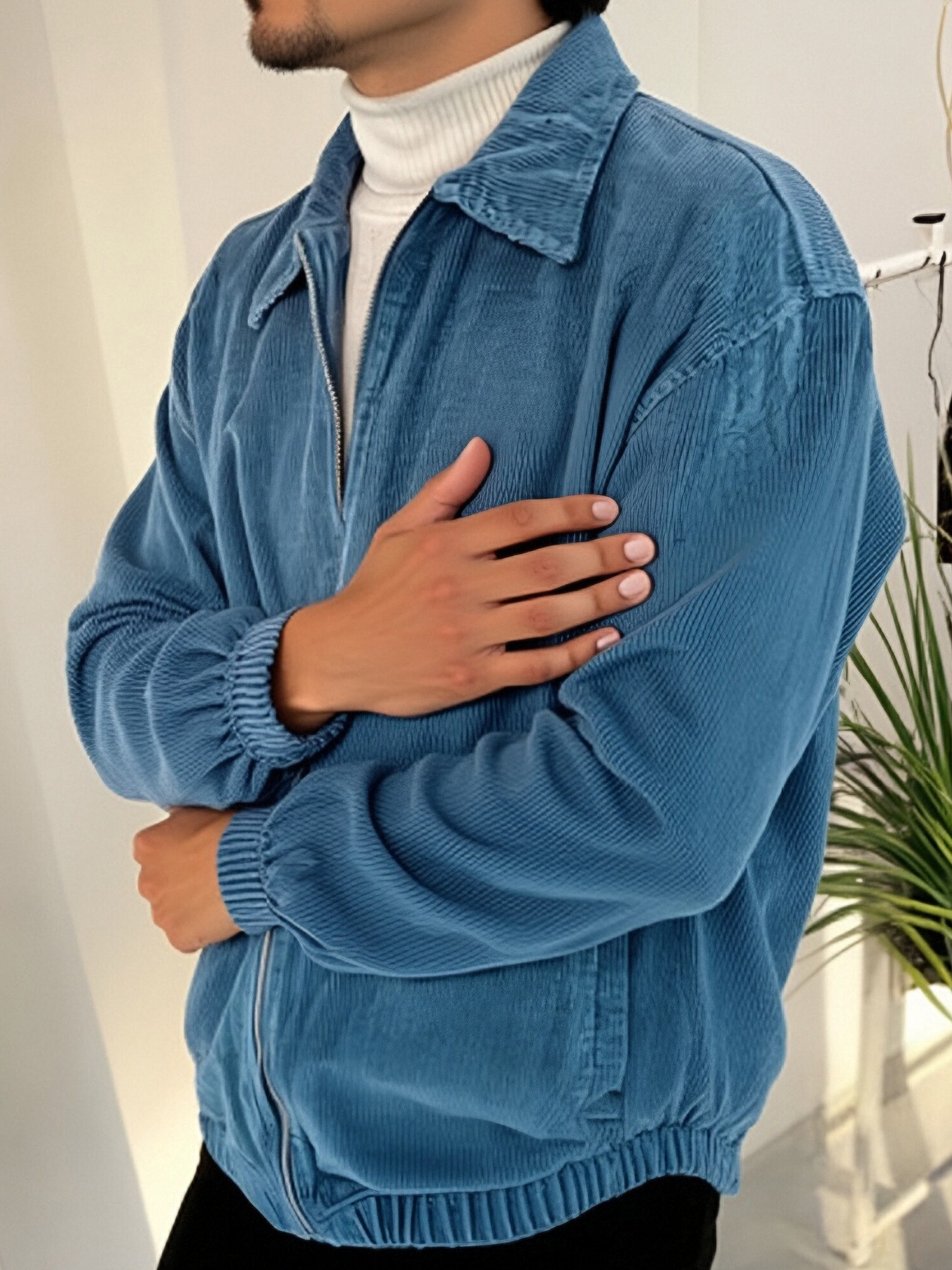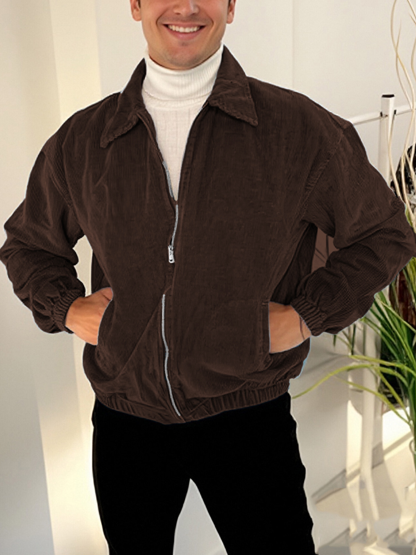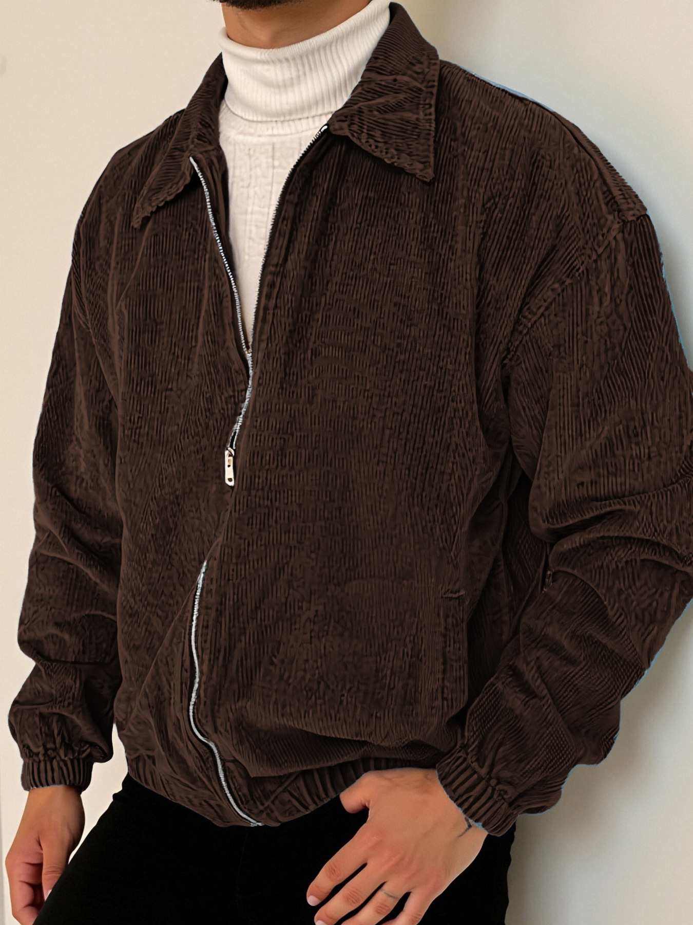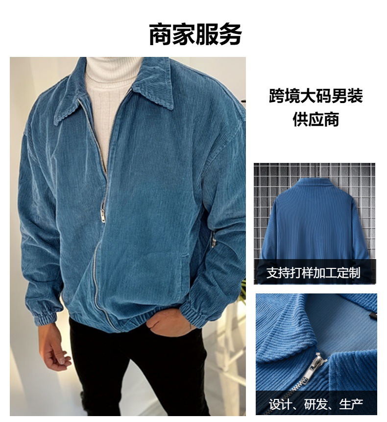 Осень и зима большой размер мужская сплошная вельветовая куртка рыхлый отворот куртка на молнии модная тенденция для мужчин