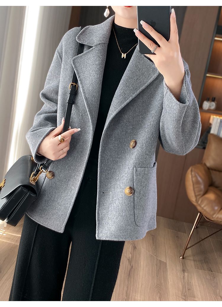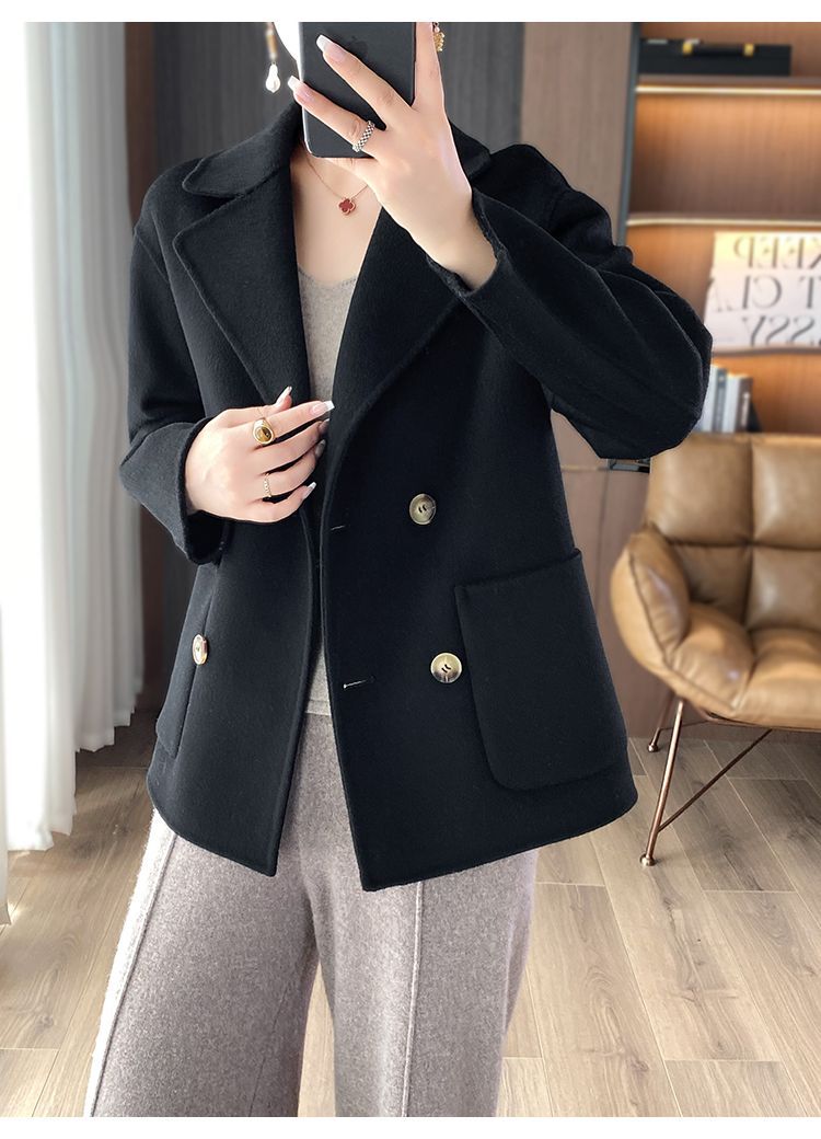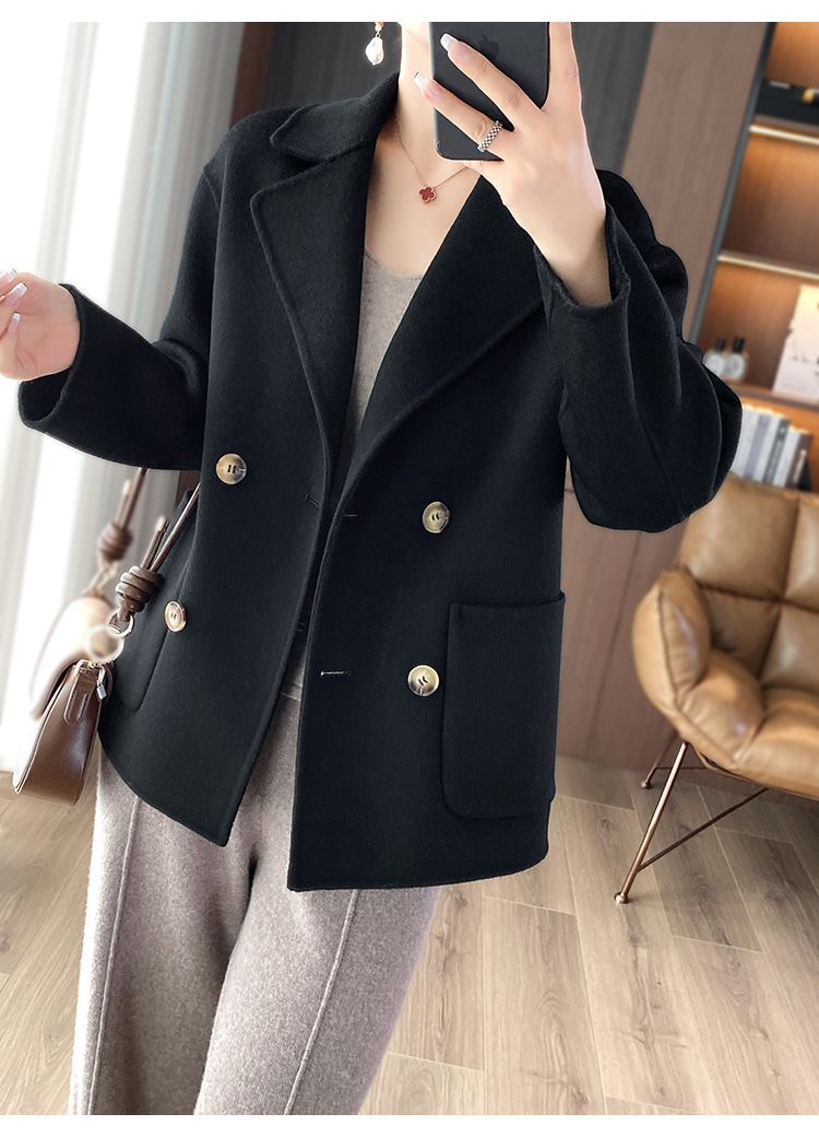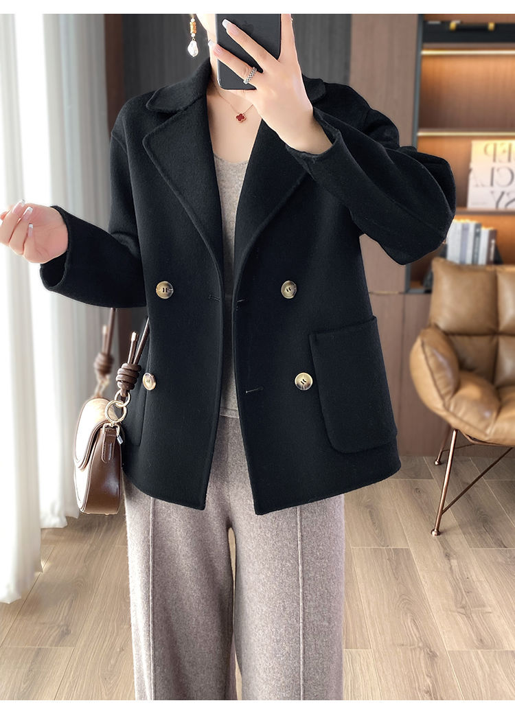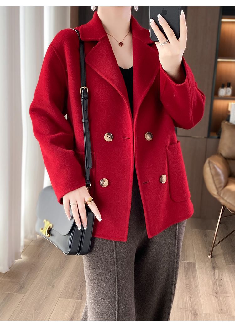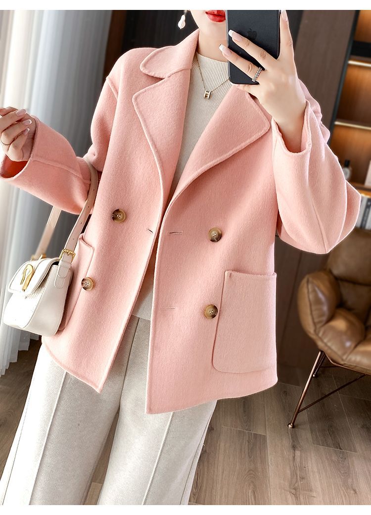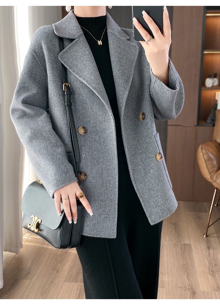 Женское шерстяное пальто 2026 года, укороченное, осенне-зимнее, свободного кроя для миниатюрных фигур, верхняя одежда с отложным воротником, модная шерстяная куртка.