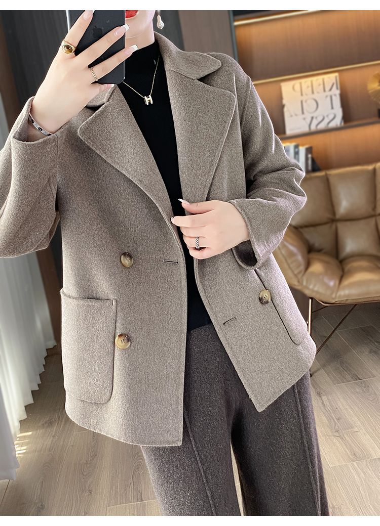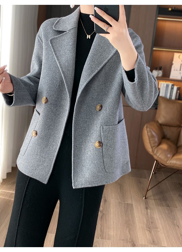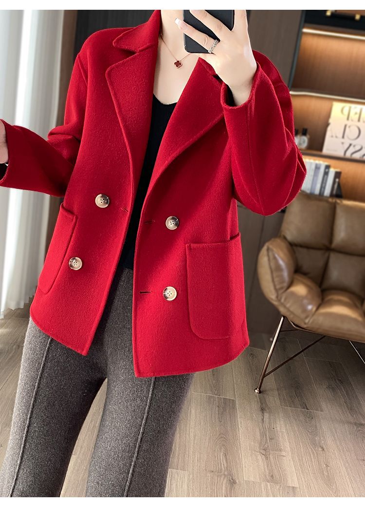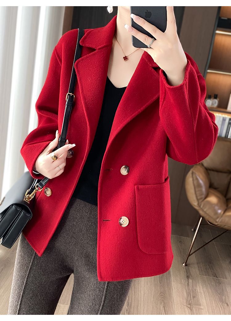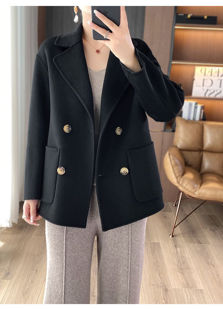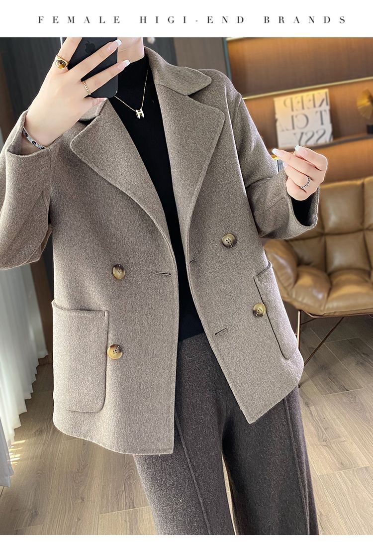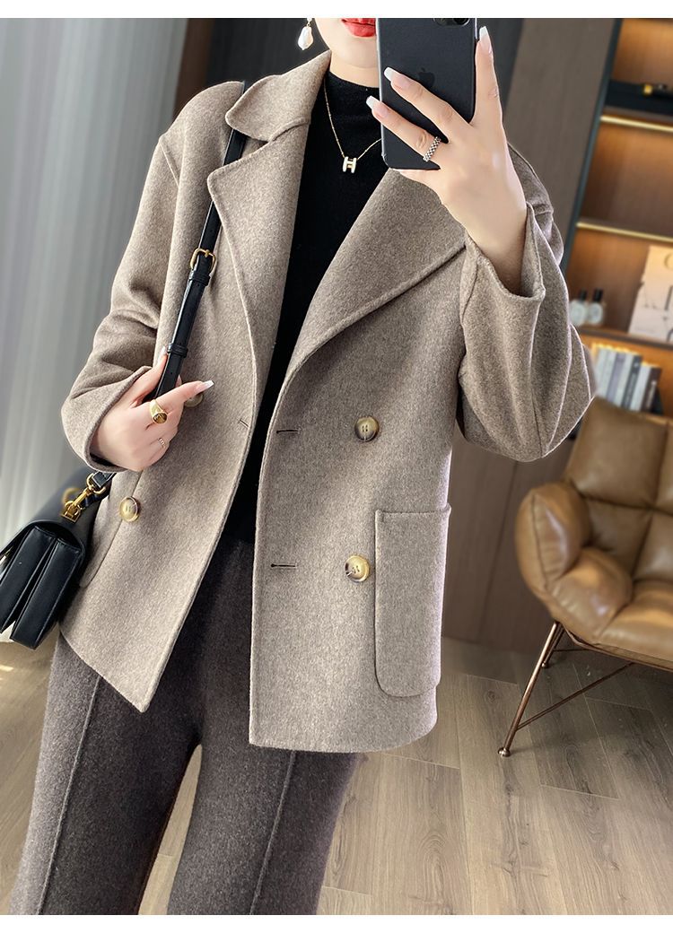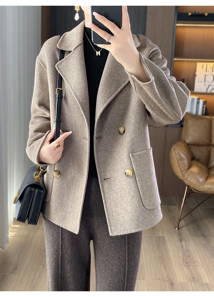Женское шерстяное пальто 2026 года, укороченное, осенне-зимнее, свободного кроя для миниатюрных фигур, верхняя одежда с отложным воротником, модная шерстяная куртка.