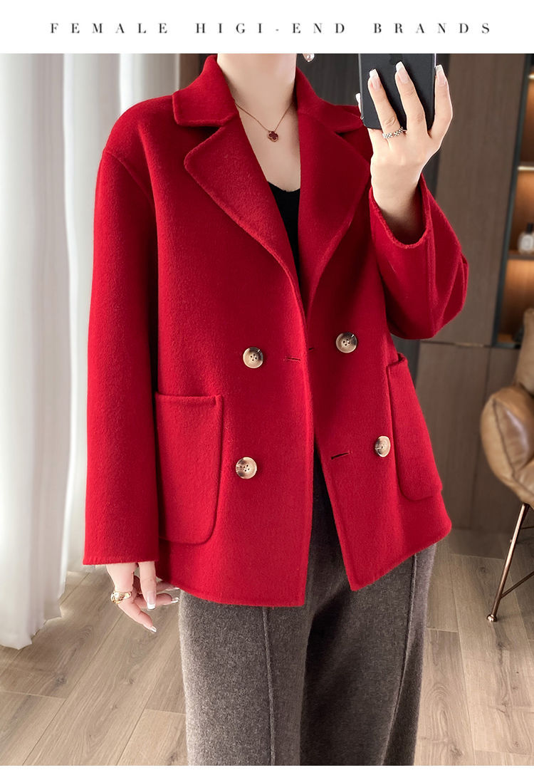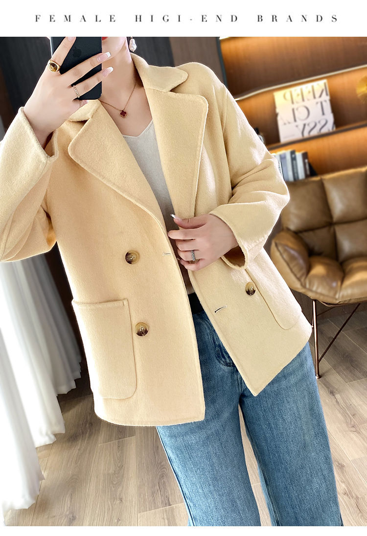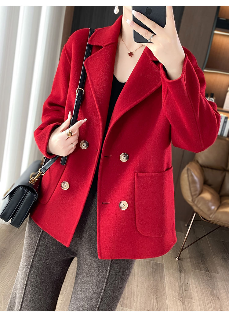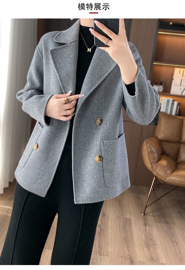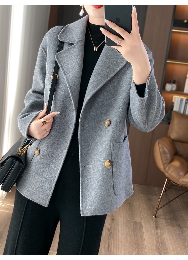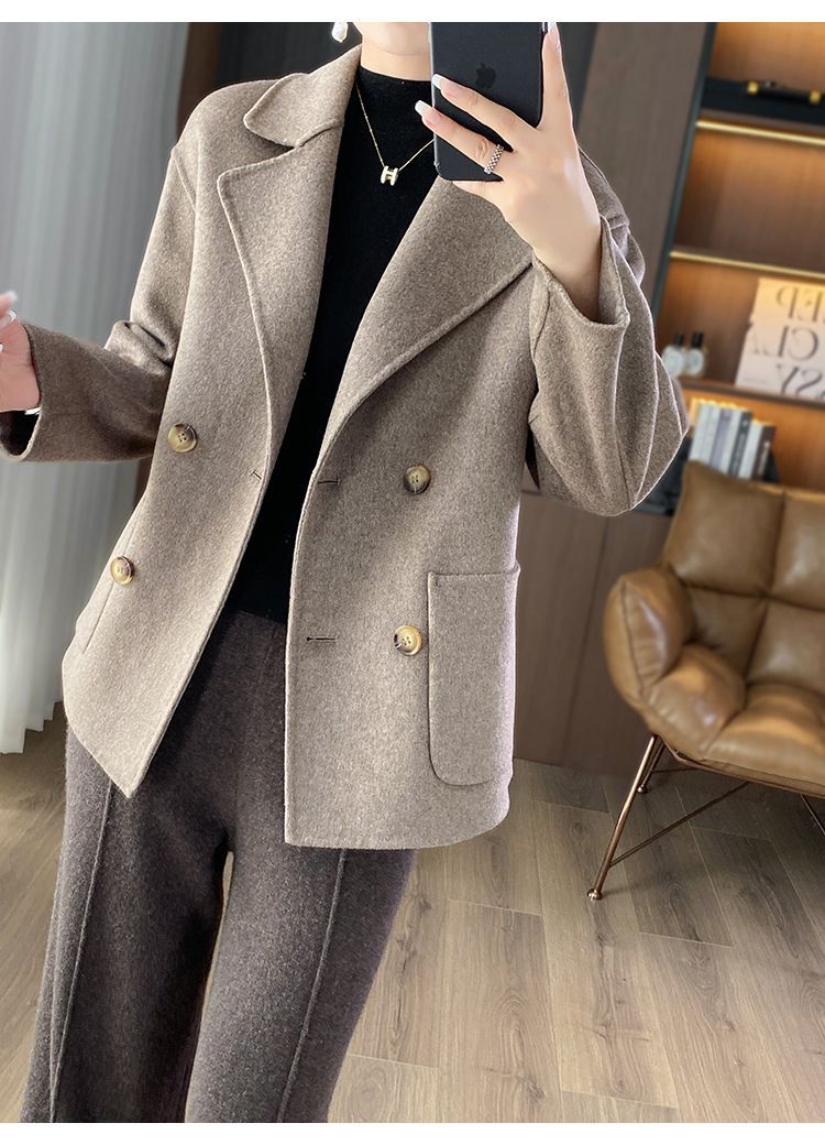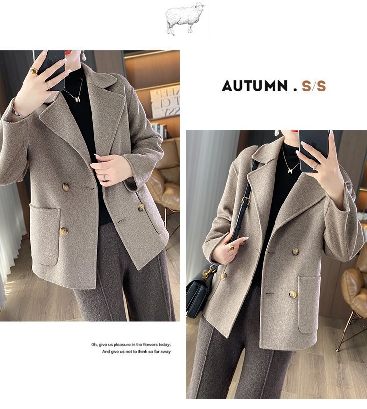 Женское шерстяное пальто 2026 года, укороченное, осенне-зимнее, свободного кроя для миниатюрных фигур, верхняя одежда с отложным воротником, модная шерстяная куртка.