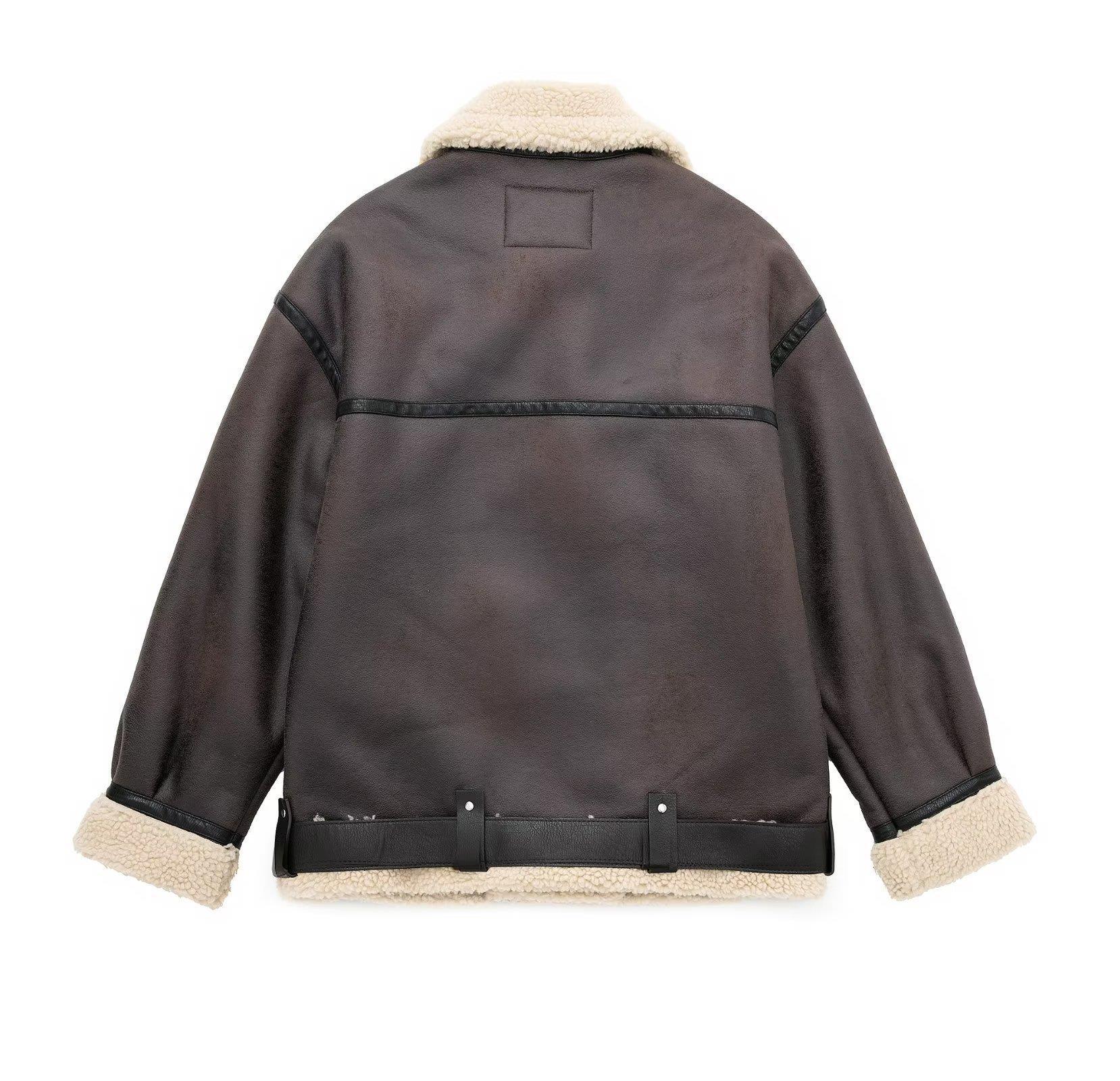 Большая европейско-американская куртка-бомбер на молнии, утепленная, ветрозащитная и водонепроницаемая, из кожи и меха.