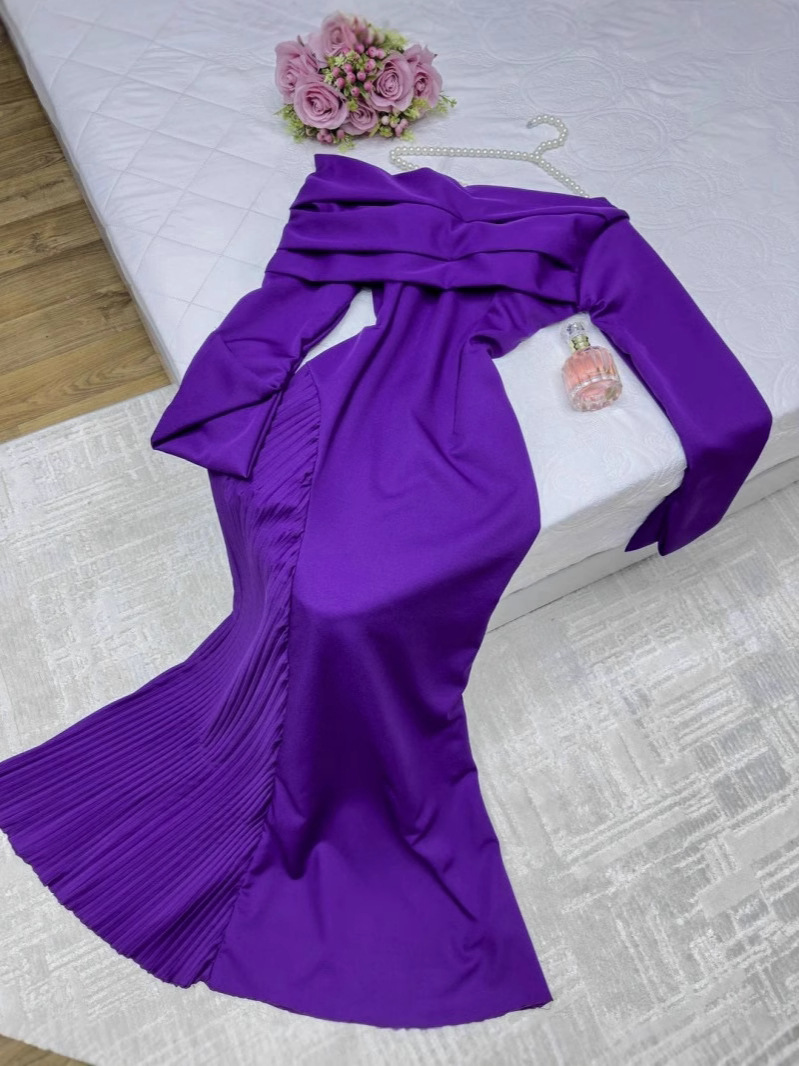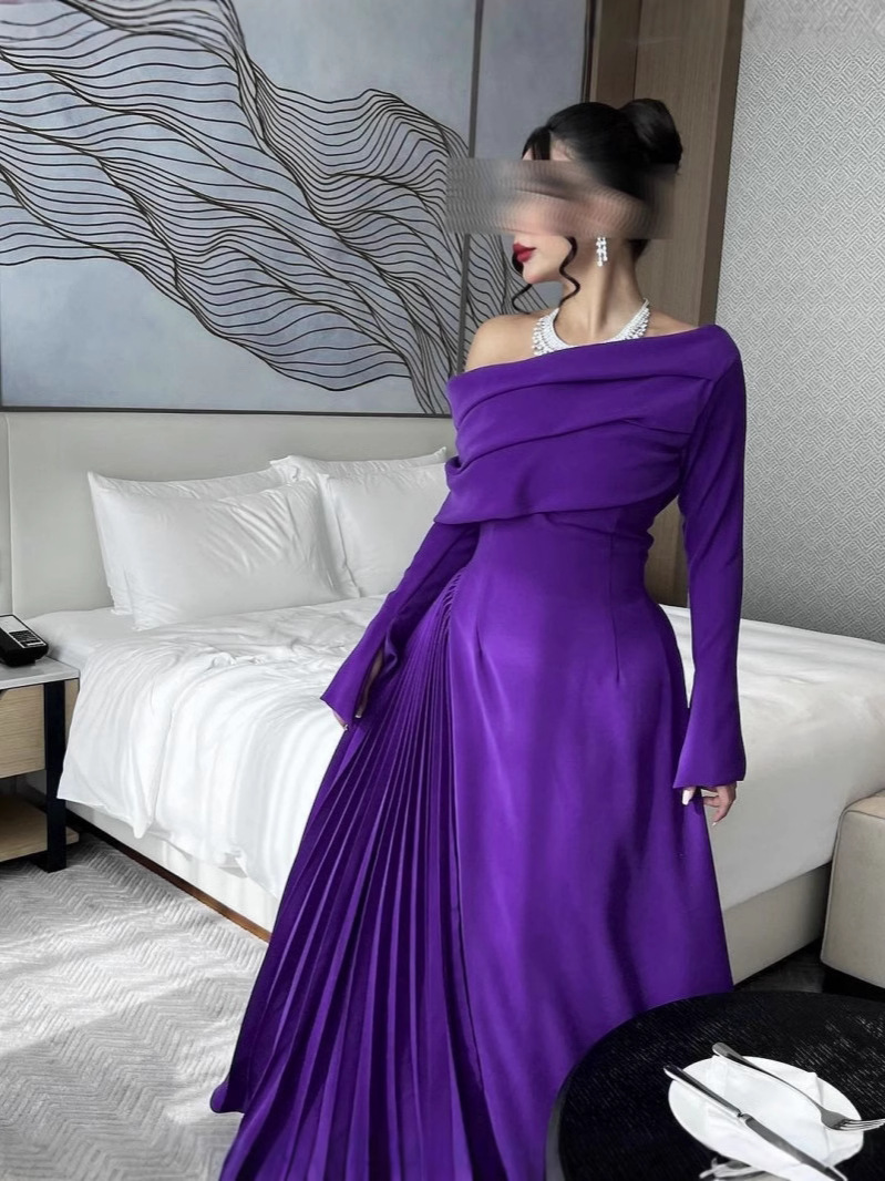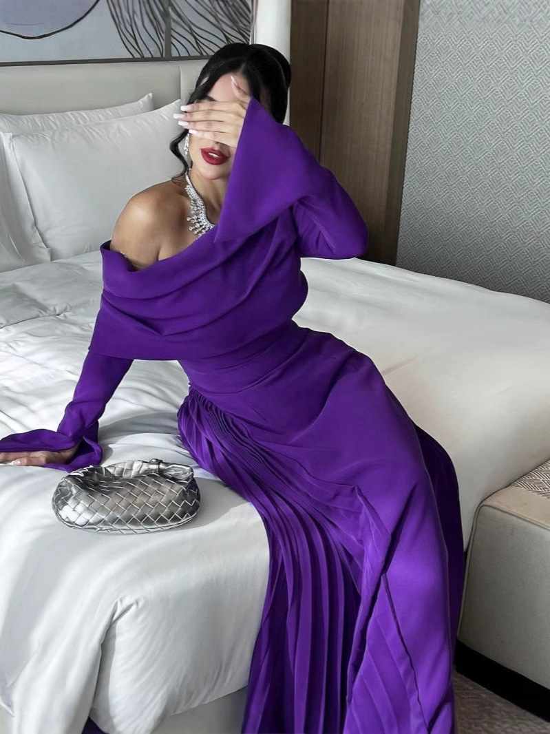 2024 Осень и Зима трансграничная внешняя торговля женская одежда Amazon Независимая станция eBay на Ближнем Востоке сексуальная плиссированная вечерняя одежда с открытыми плечами
