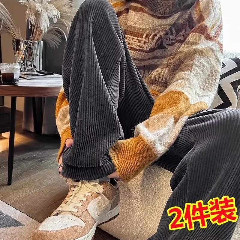 Вельветовые брюки мужские осенние и зимние повседневные брюки мальчики свободные прямые брюки бархатные толстые спортивные брюки мужские