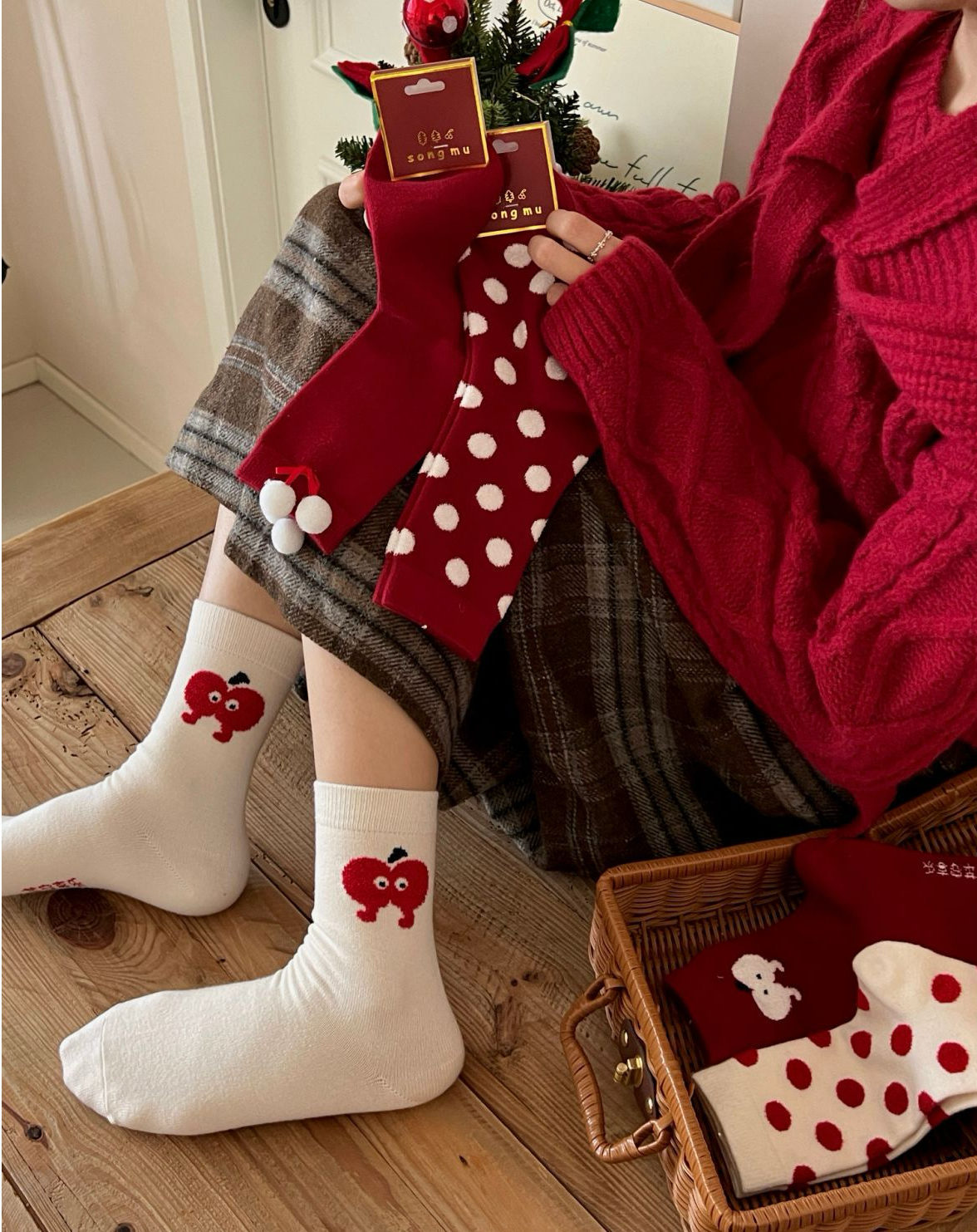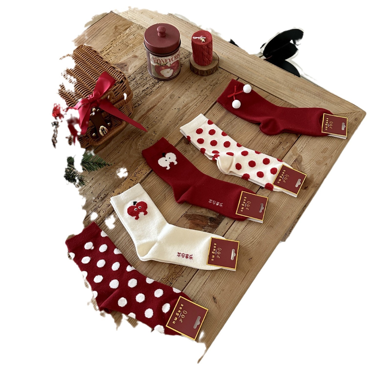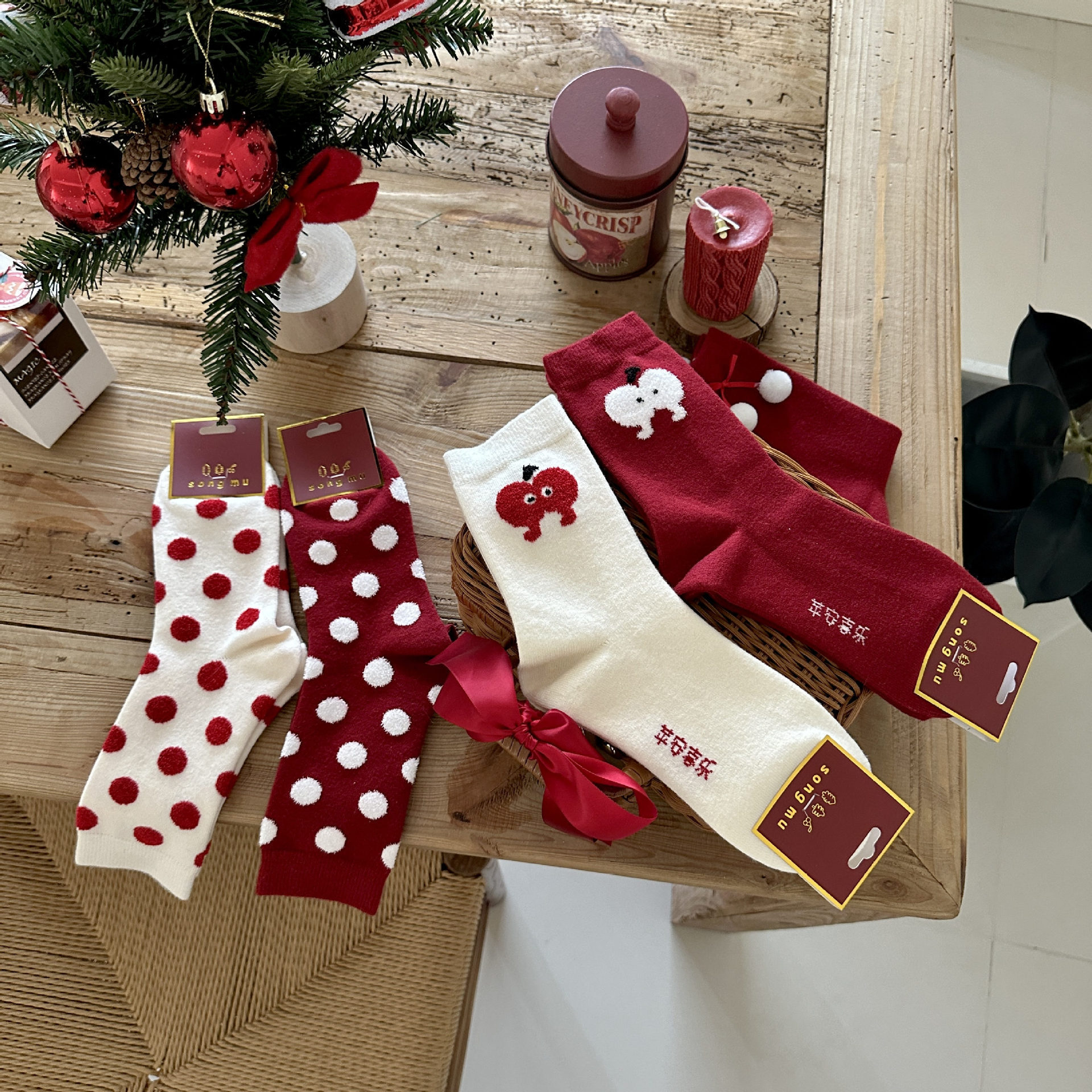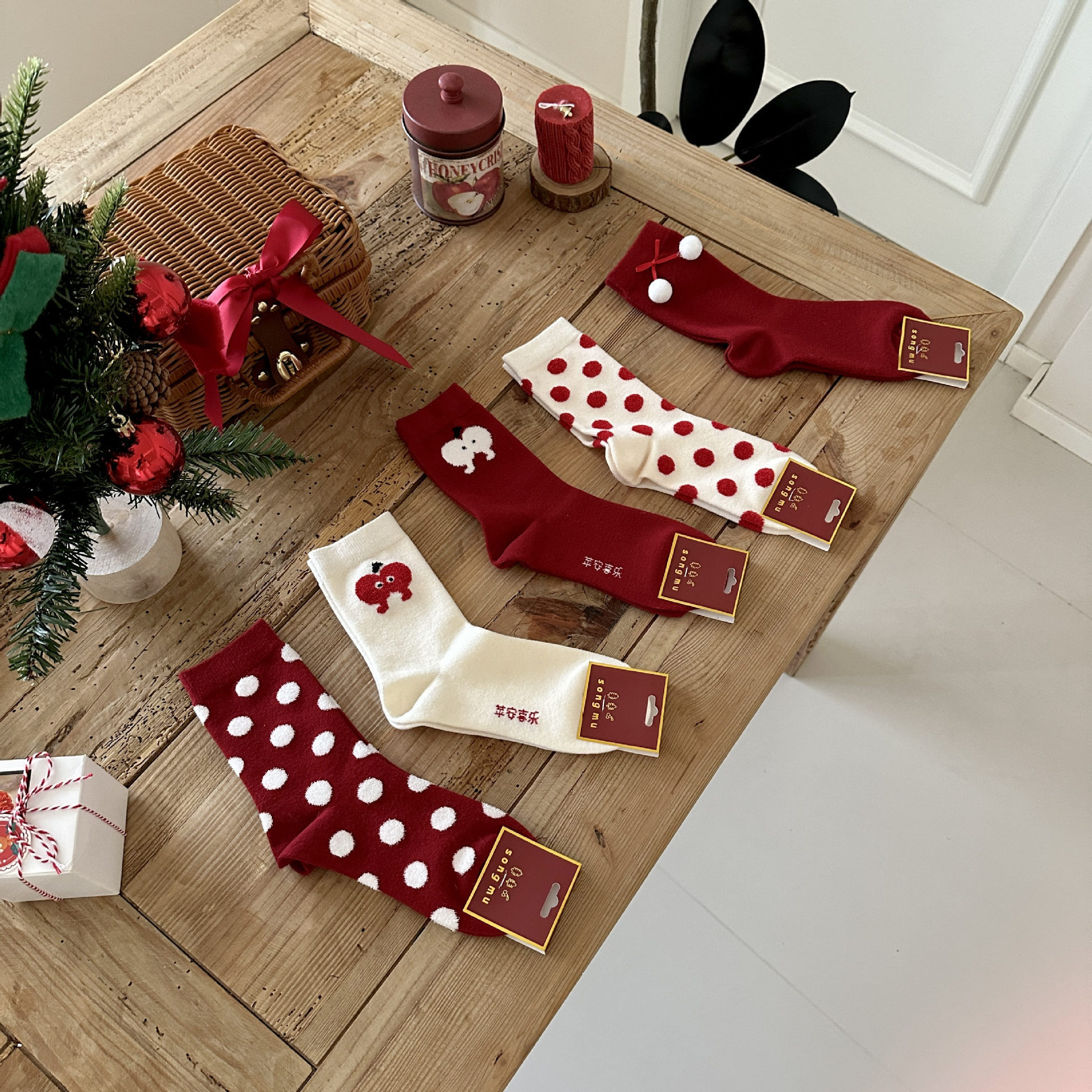 Songmu 'Ping'an Xile Red Sox осень-зима новые японские носки средней точки новогодние красные носки