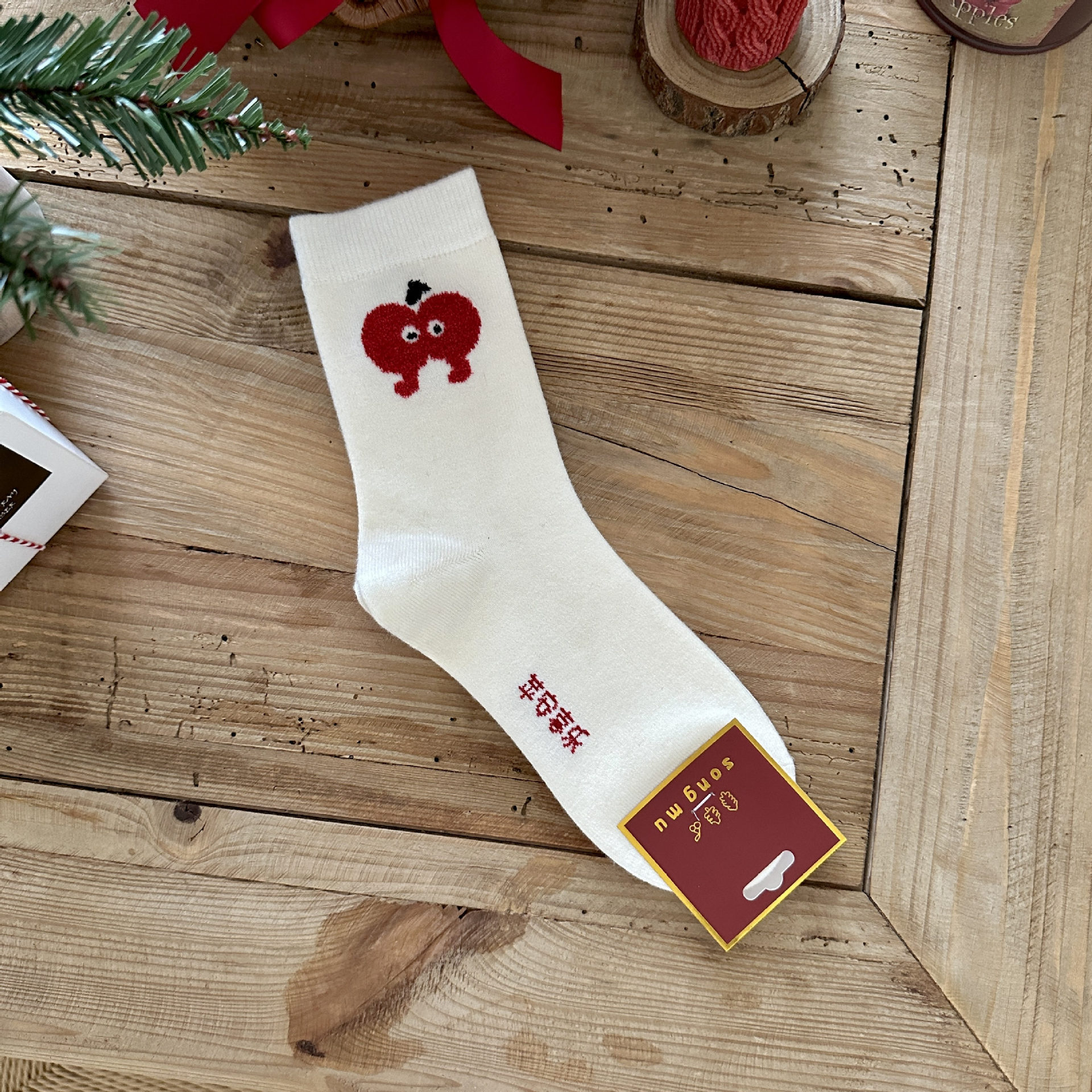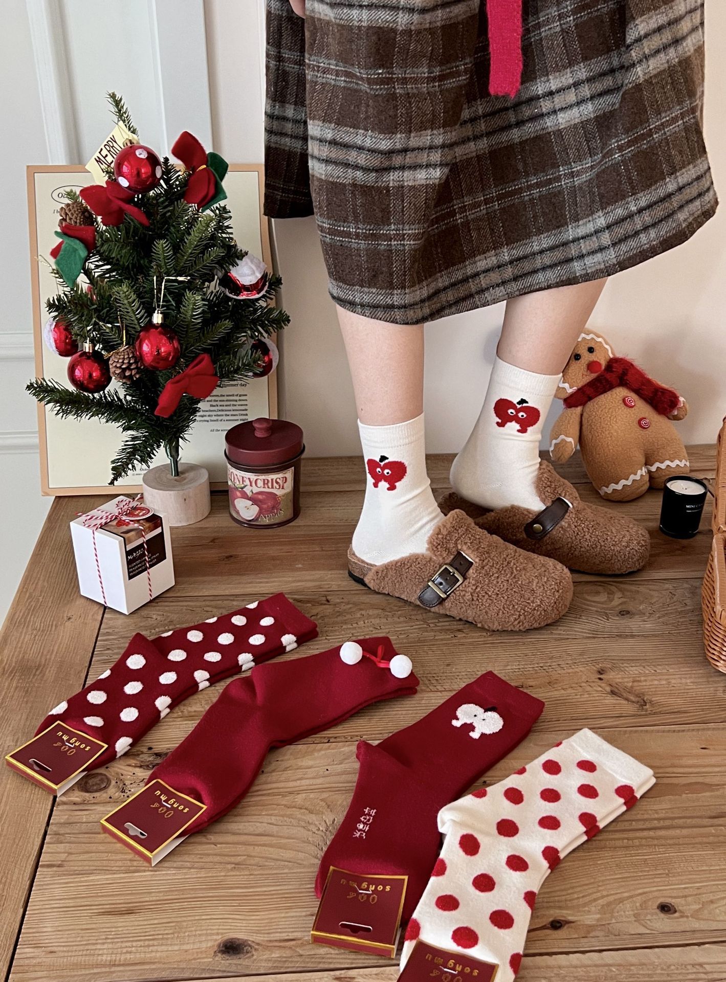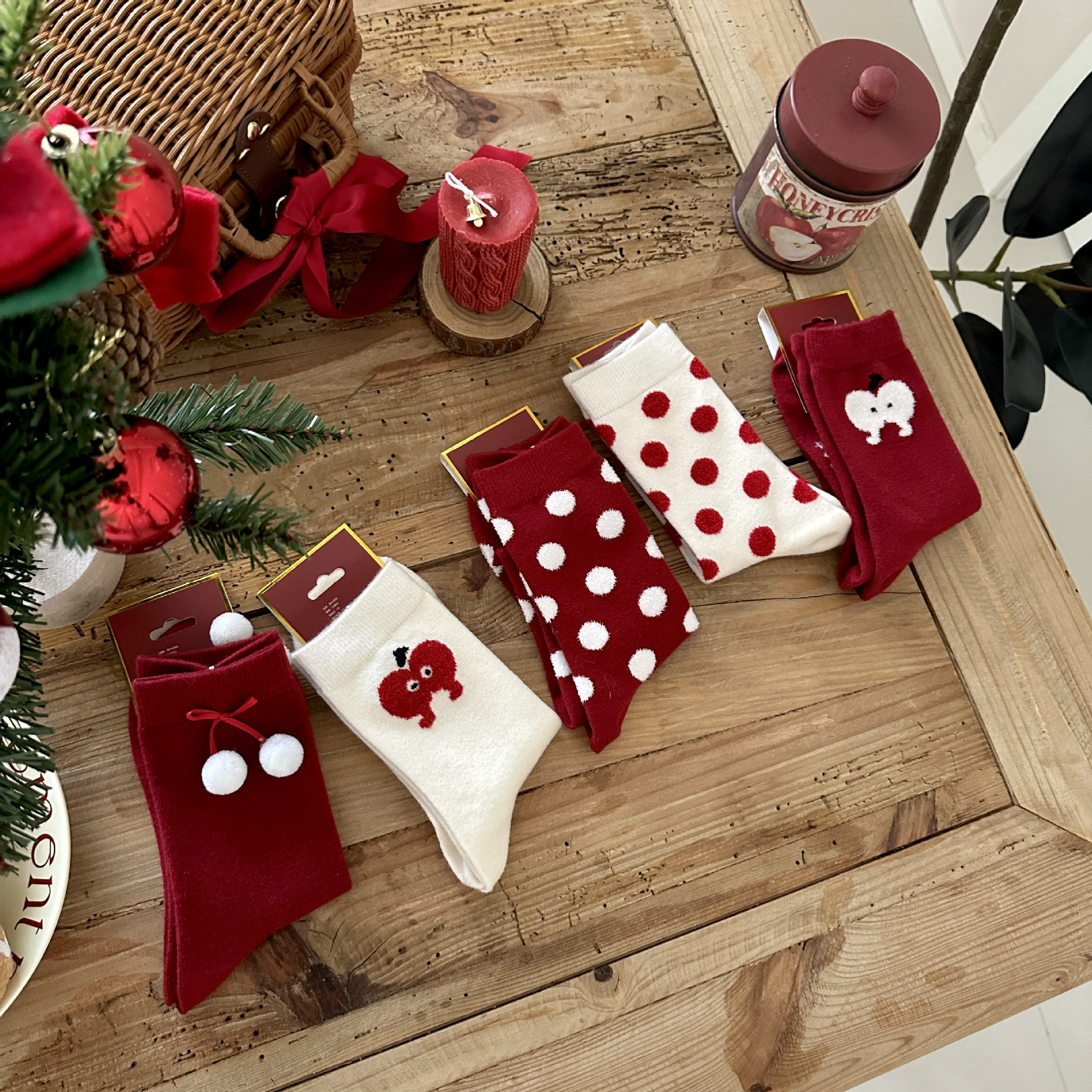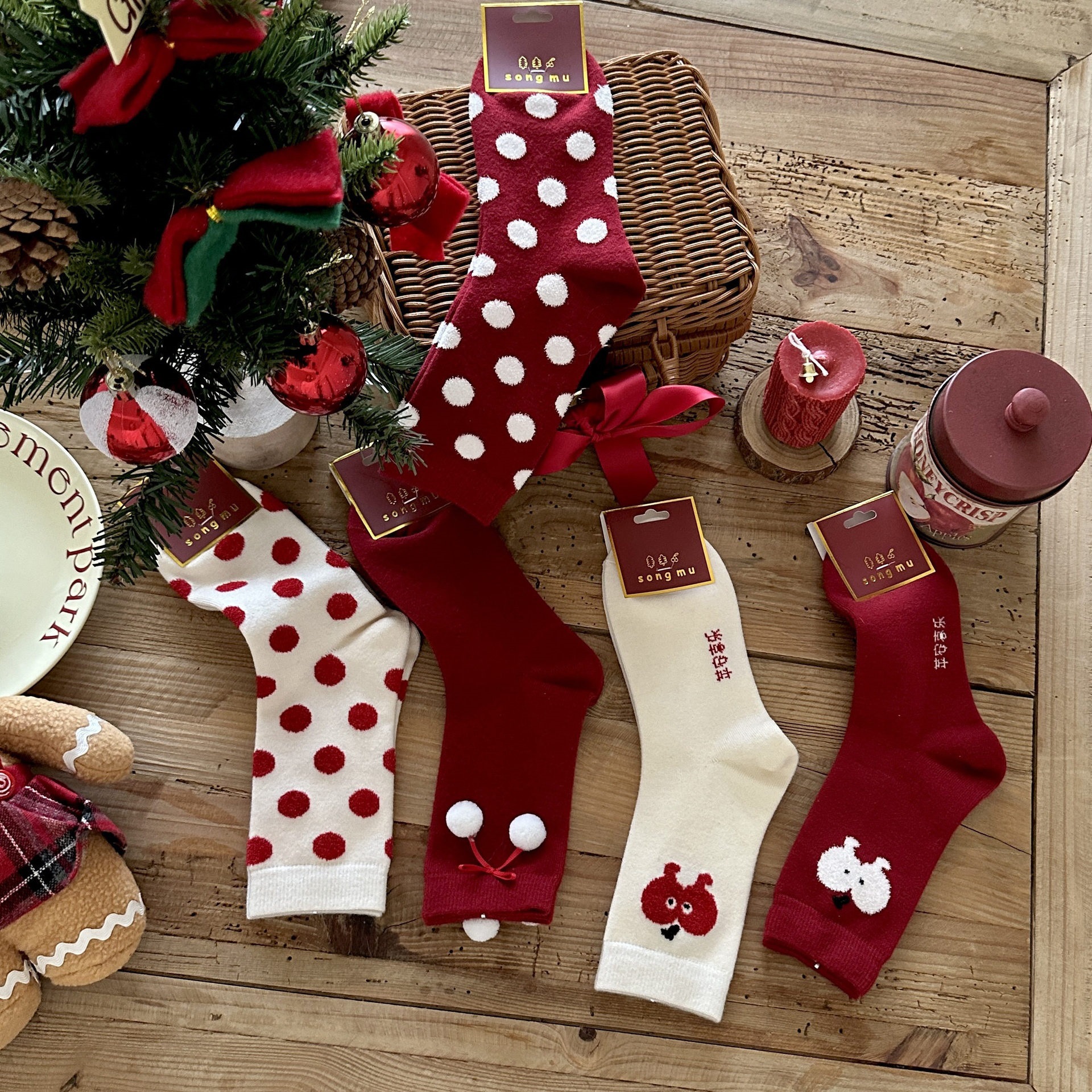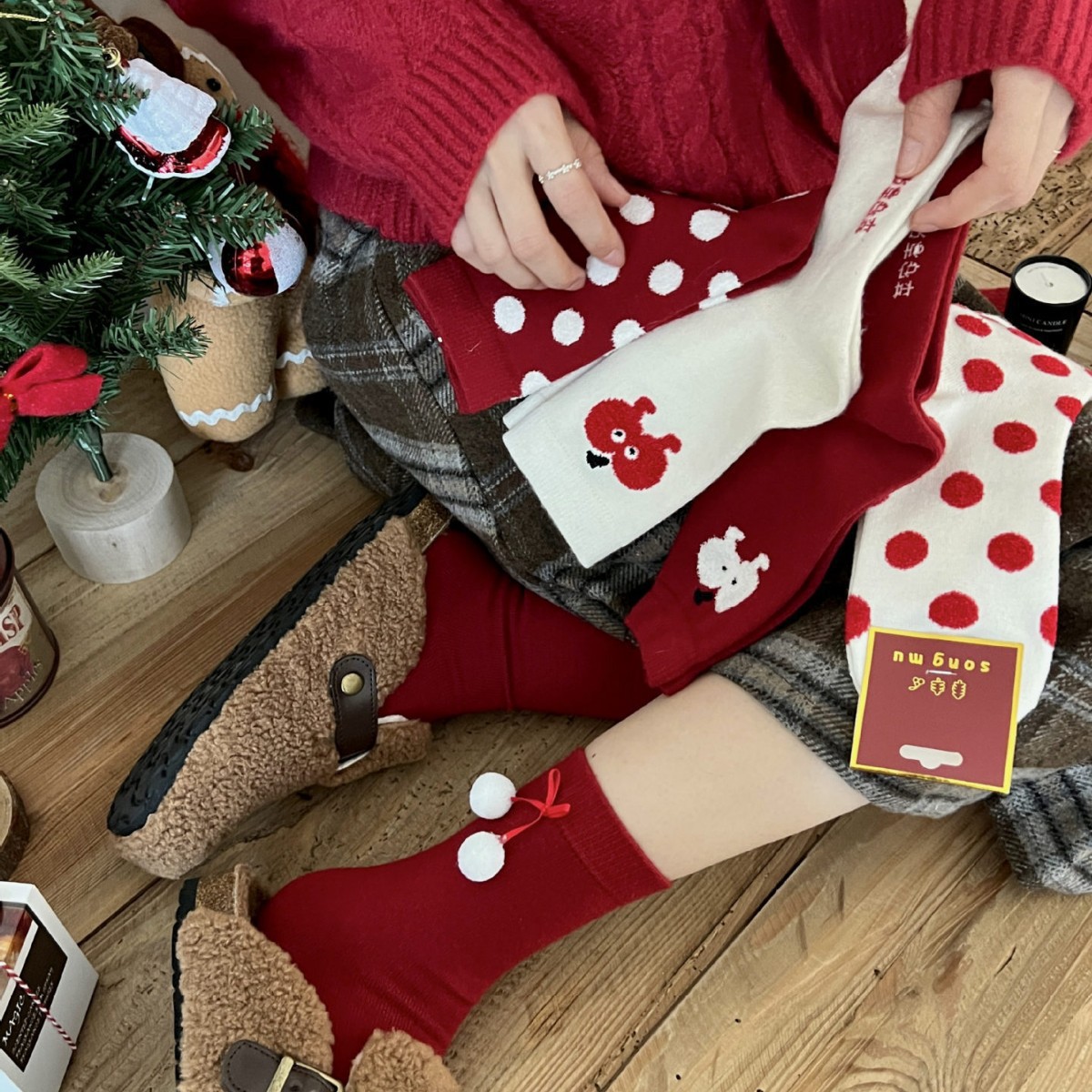 Songmu 'Ping'an Xile Red Sox осень-зима новые японские носки средней точки новогодние красные носки