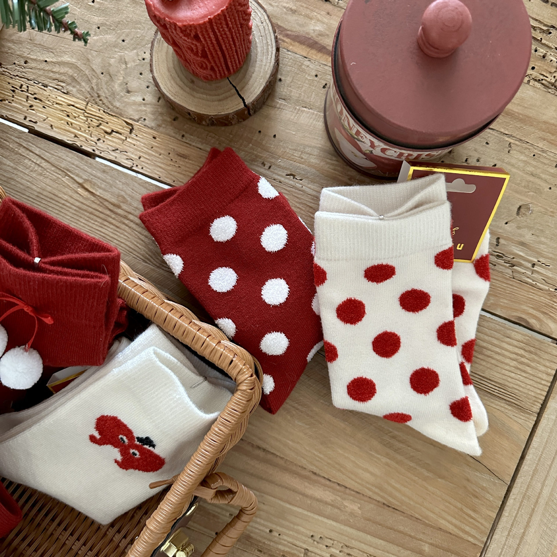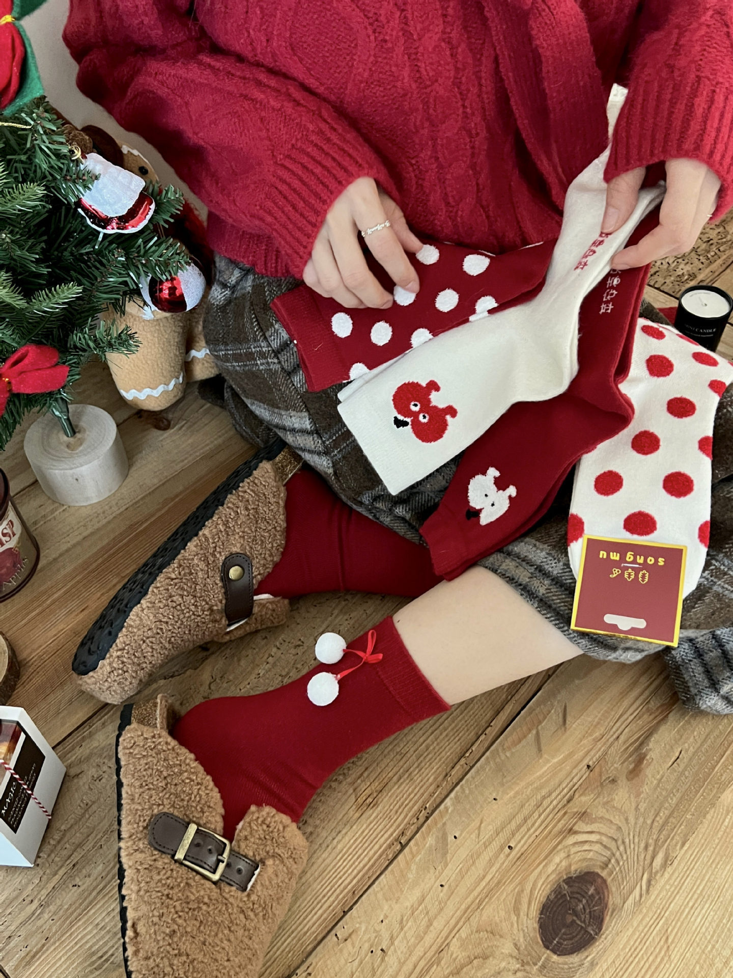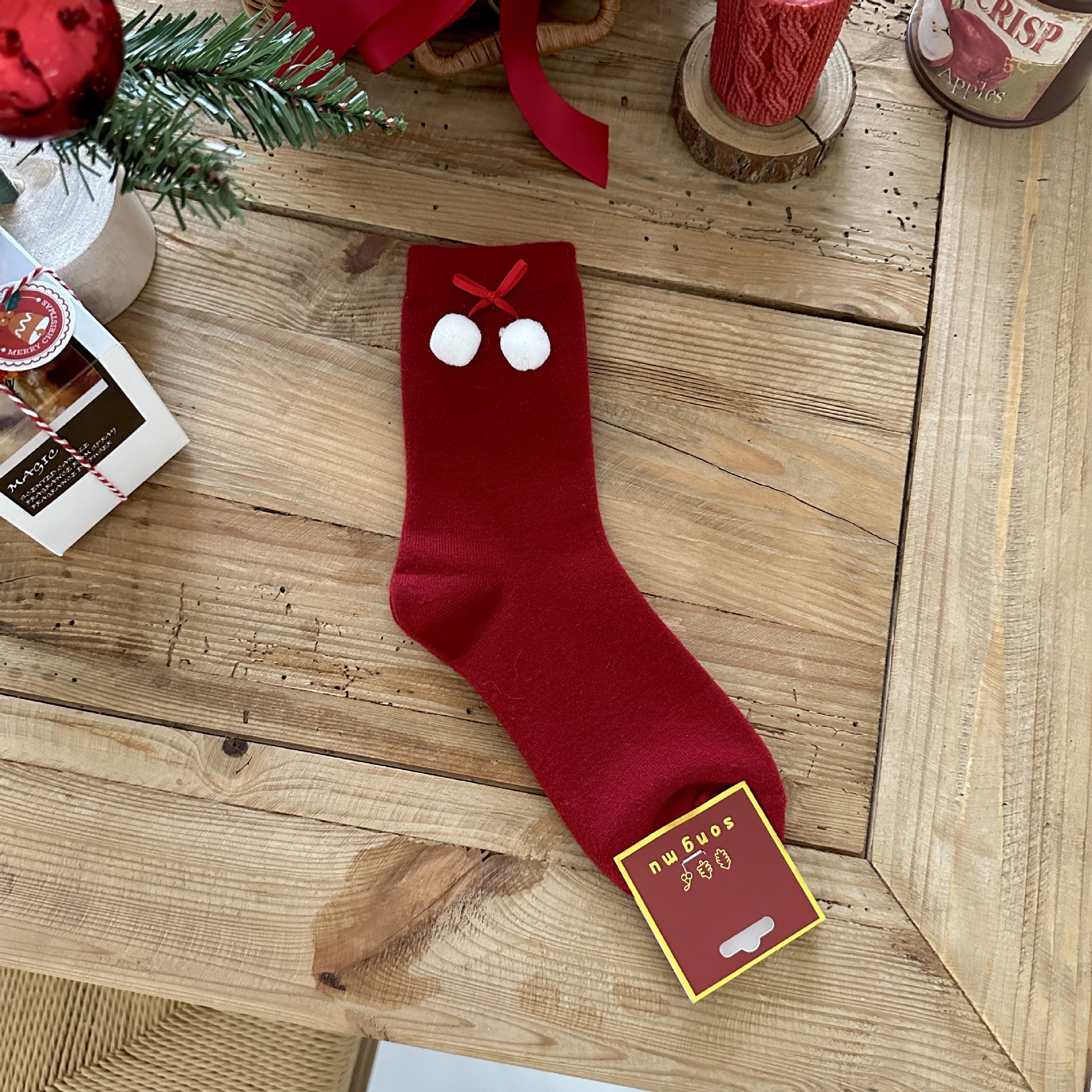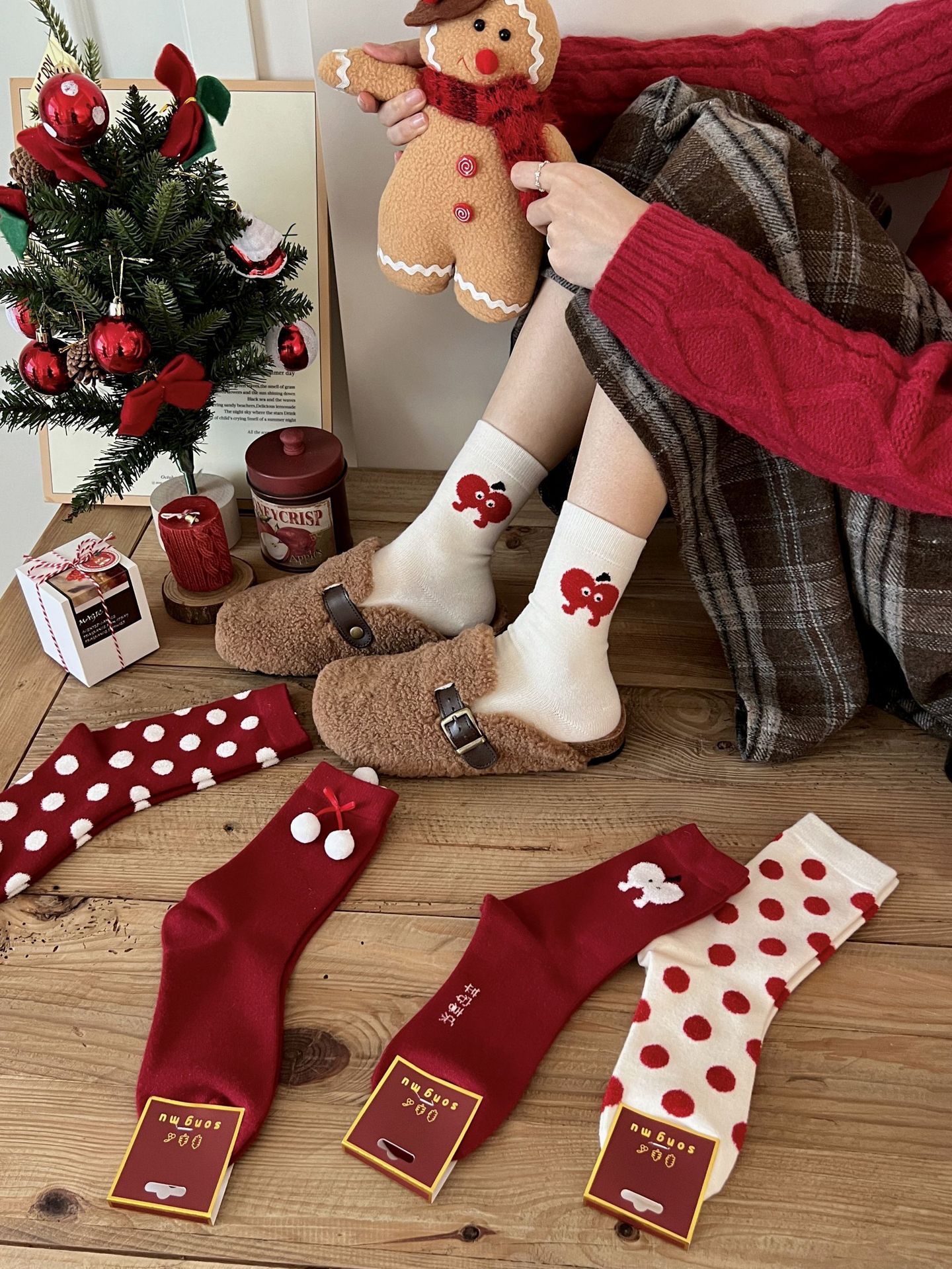 Songmu 'Ping'an Xile Red Sox осень-зима новые японские носки средней точки новогодние красные носки