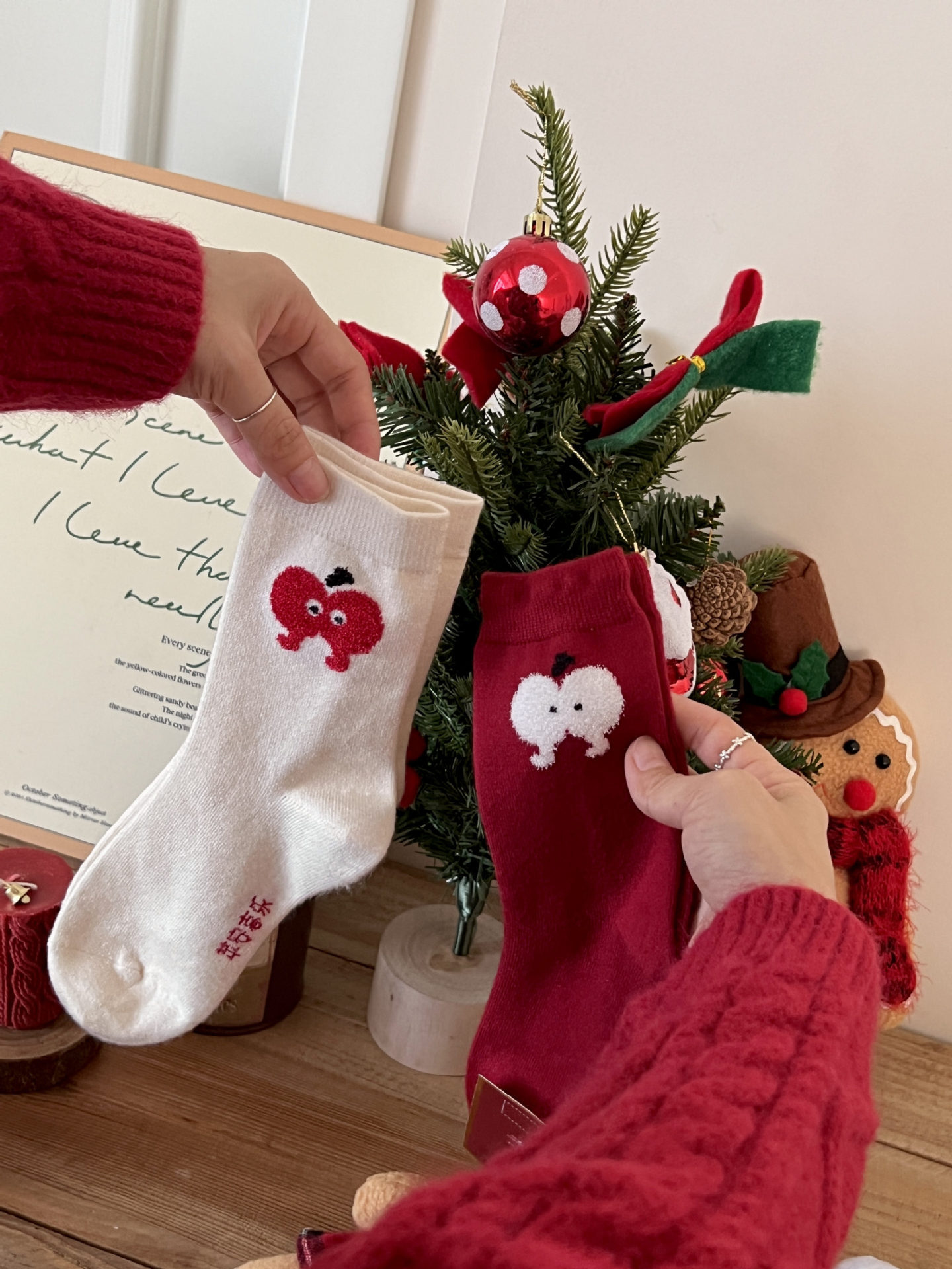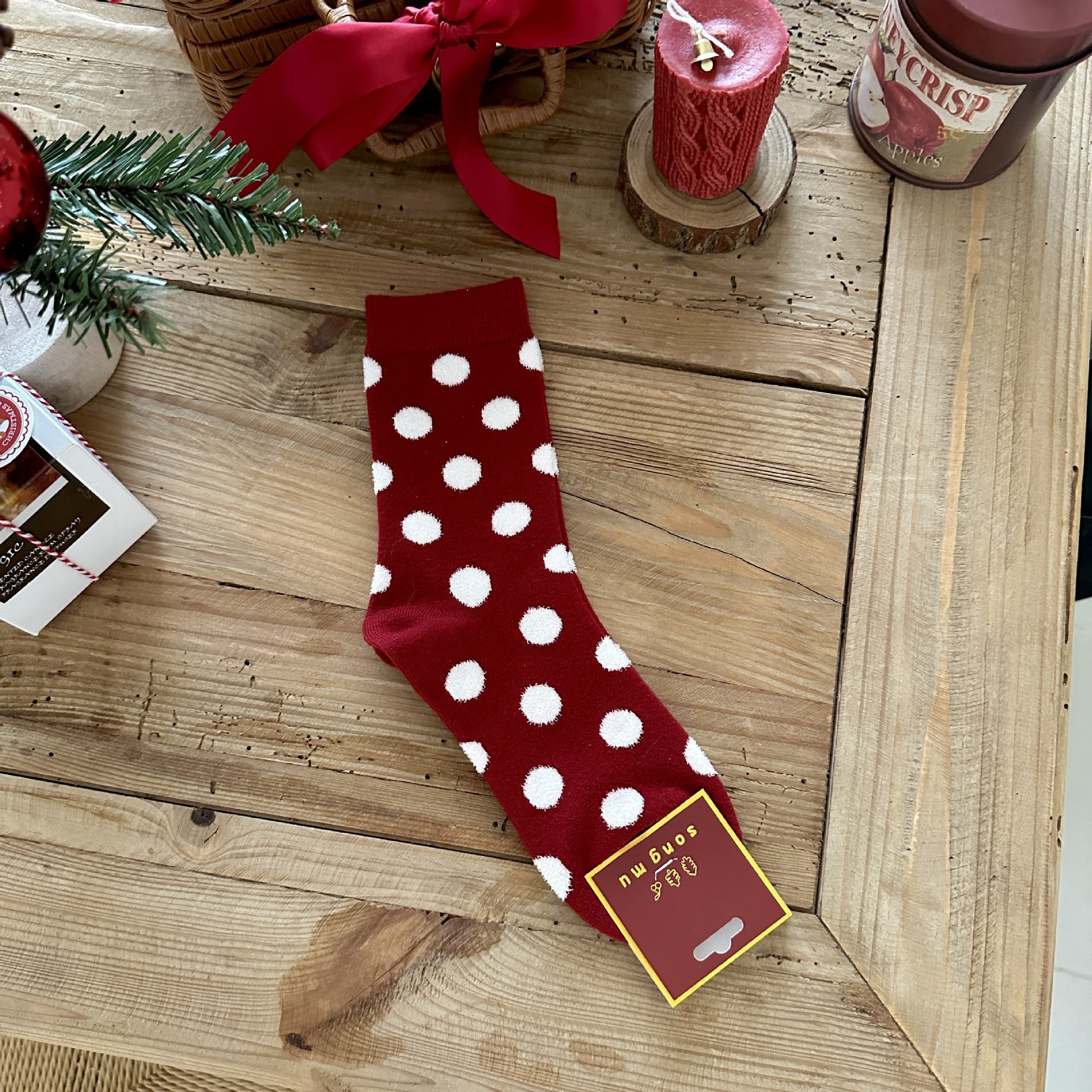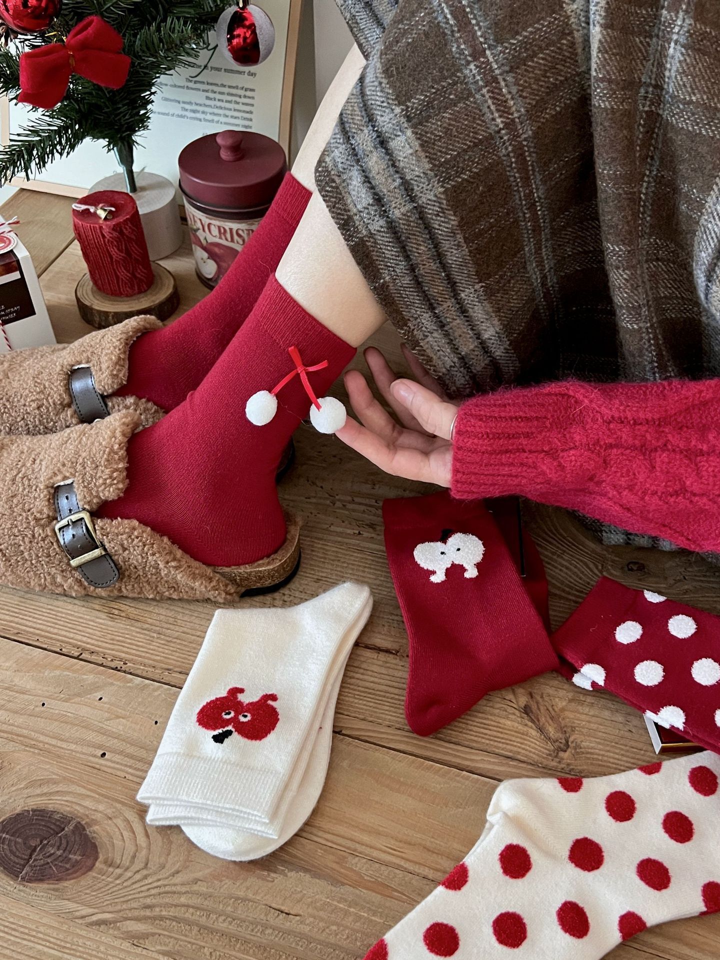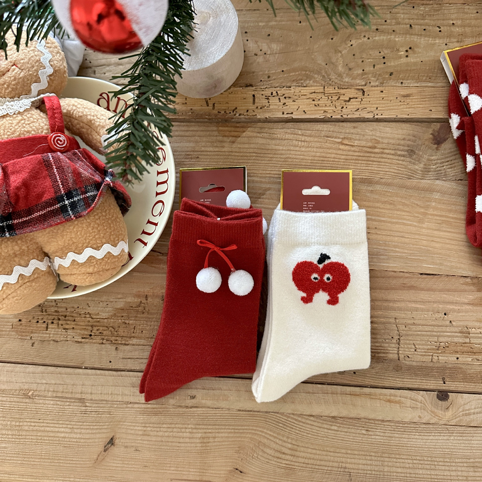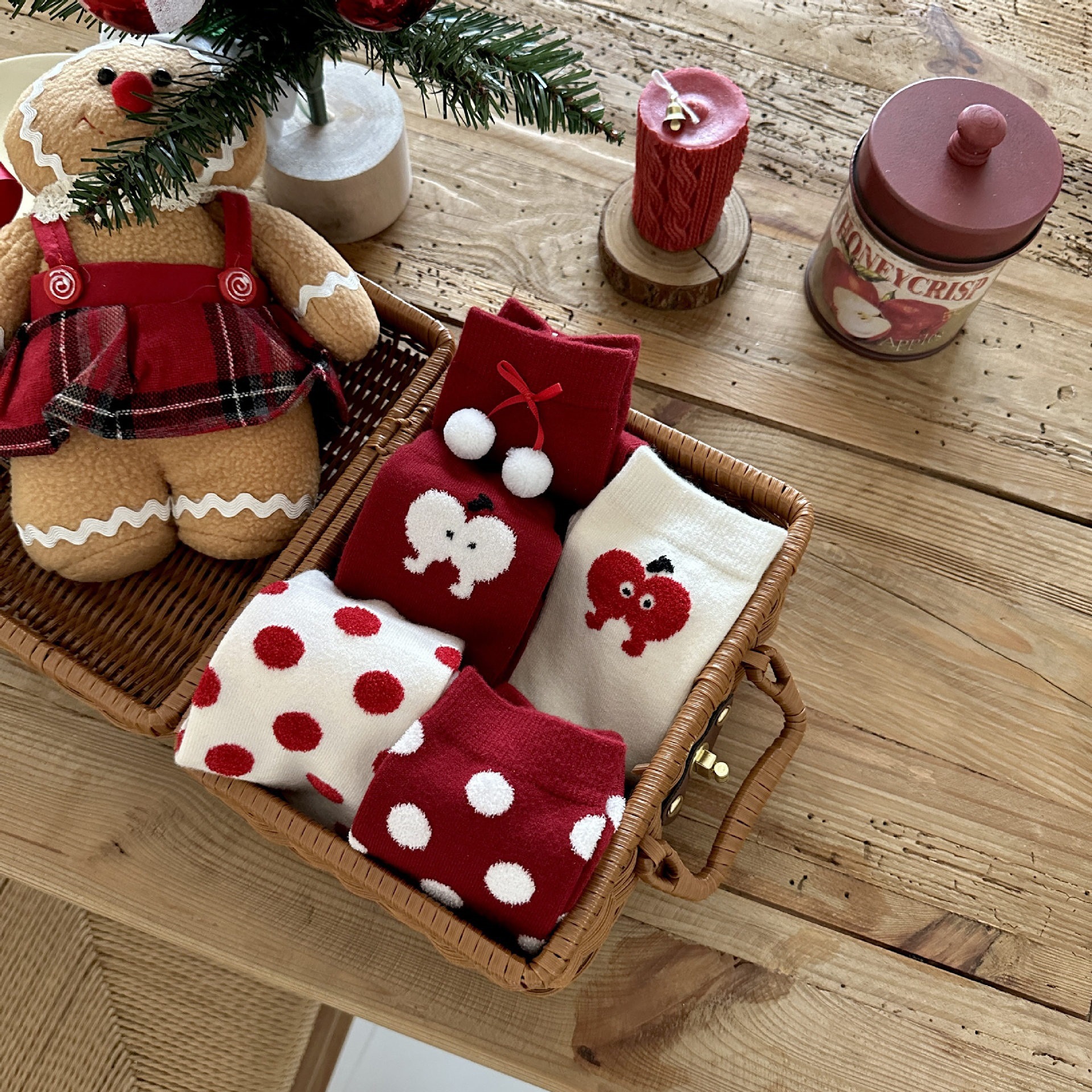 Songmu 'Ping'an Xile Red Sox осень-зима новые японские носки средней точки новогодние красные носки