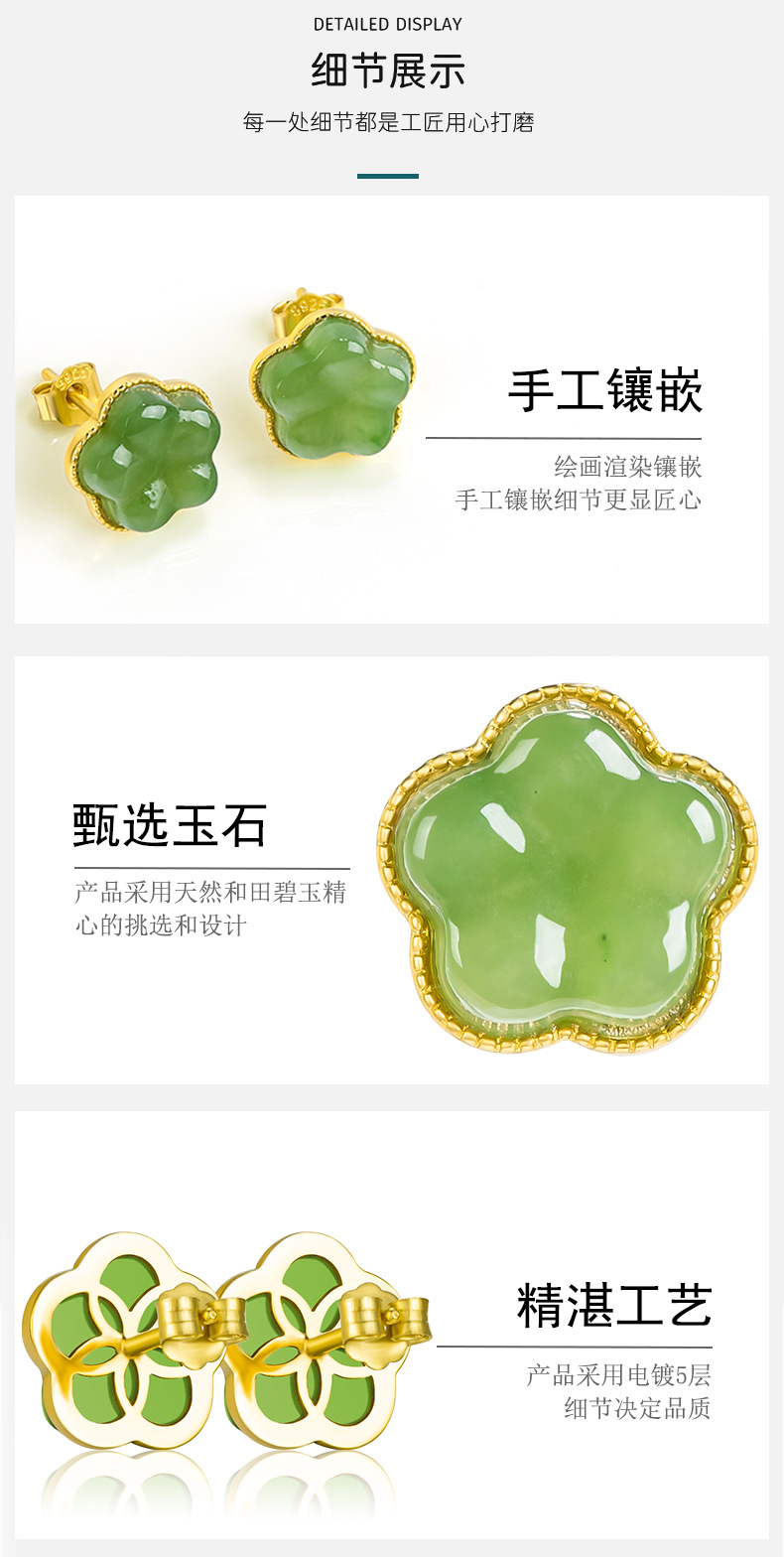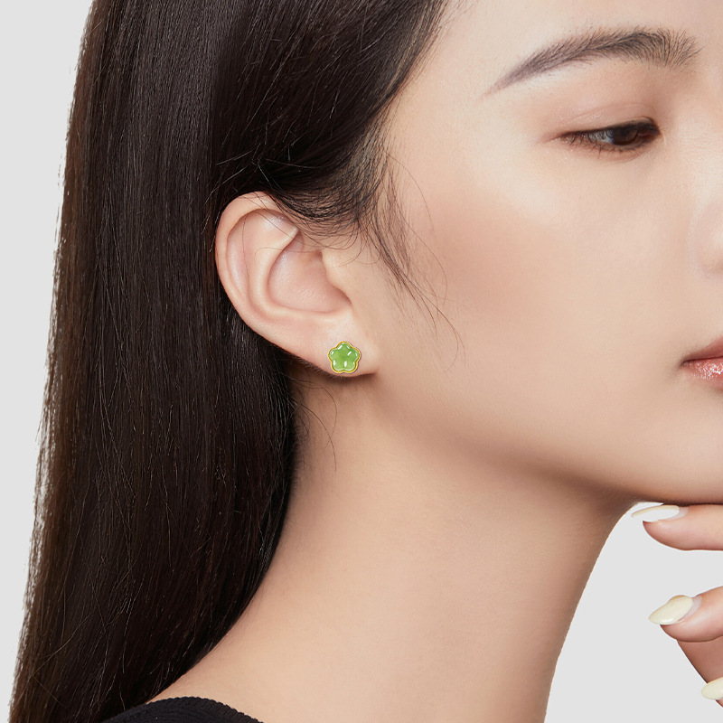 Шпинат зеленый натуральный старый материал Хетиан Джейд персик серьги шип женский подлинный S925 Серебряная инкрустированная нефритовая серьги оптом