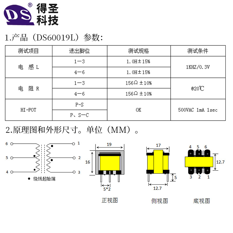 DS60019L аудиосигнала Изоляция трансформатора Экранирование Камера Входной аудио трансформатор