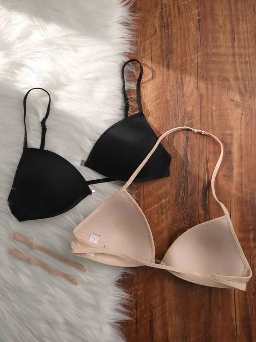 Женское нижнее белье с треугольными чашками и бретельками на шее, красивой спиной, бюстгальтером с невидимой пряжкой спереди, летним тонким бюстгальтером пуш-ап для маленькой груди.