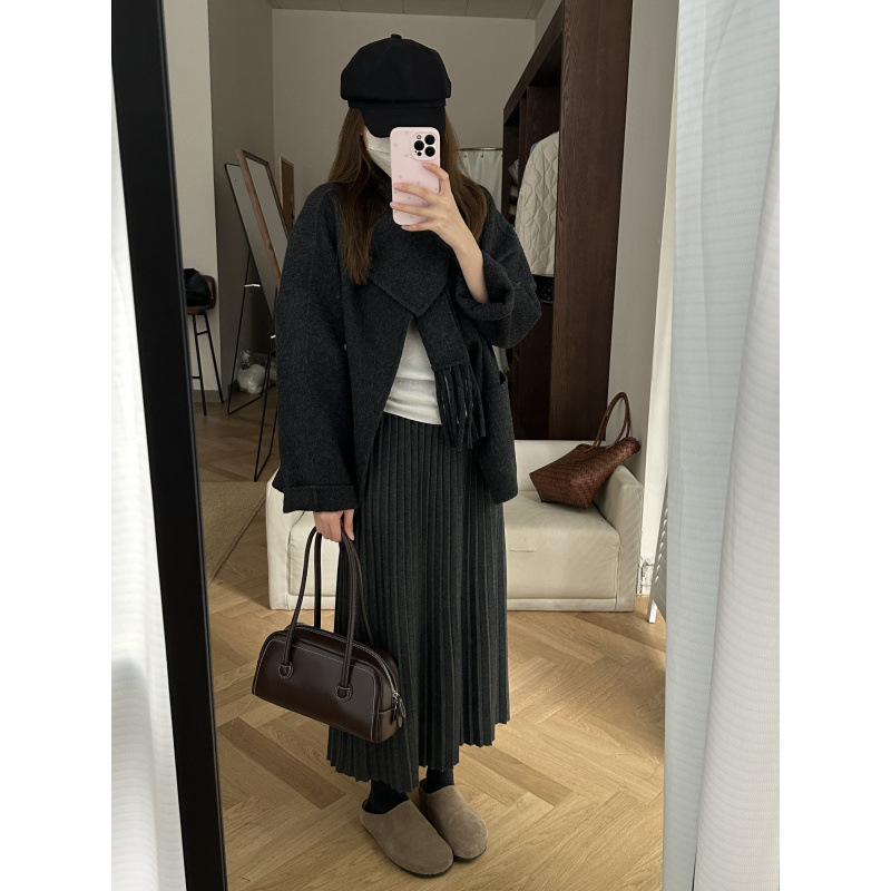 Отличная посадка! Утолщенная трикотажная плиссированная юбка для женщин, новая осенне-зимняя универсальная утягивающая юбка до половины тела в корейском стиле 2025 года, модная.
