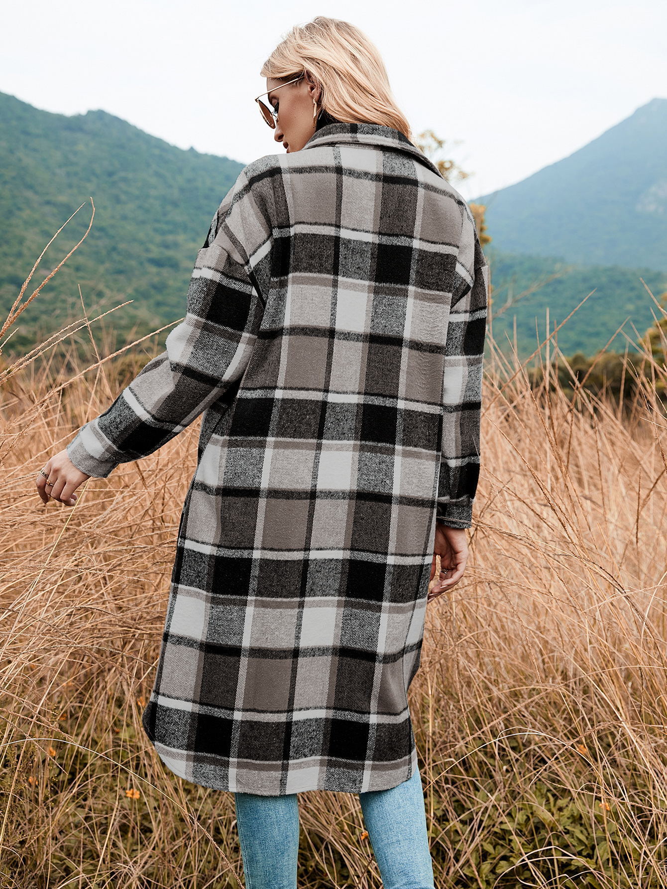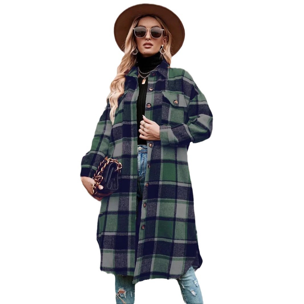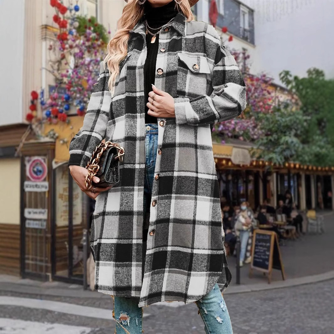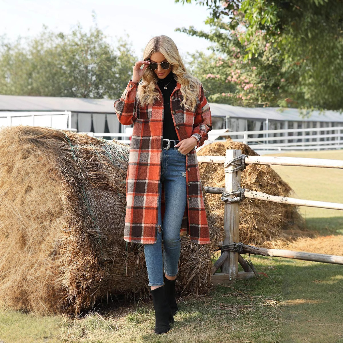 2024 осень и зима ветровка в европейском и американском стиле, куртка с боковыми разрезами и лацканами, свободная шерстяная клетчатая куртка, готовый запас