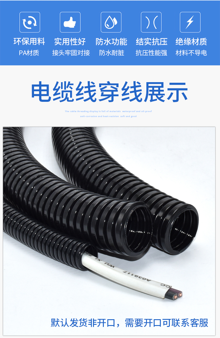 Пластиковый PA нейлоновый гофрированный черный шланг защитная втулка огнезащитная труба может быть открыт