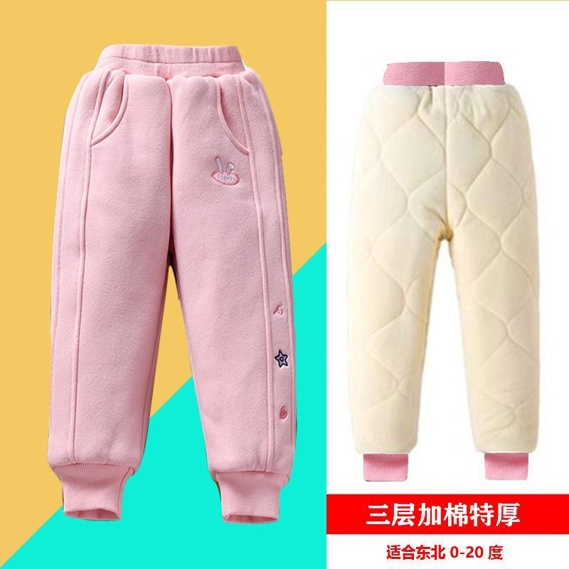 Девочки с бархатом и утолщением хлопчатобумажные брюки носят зимние и зимние северные толстые трехслойные хлопковые теплые спортивные брюки