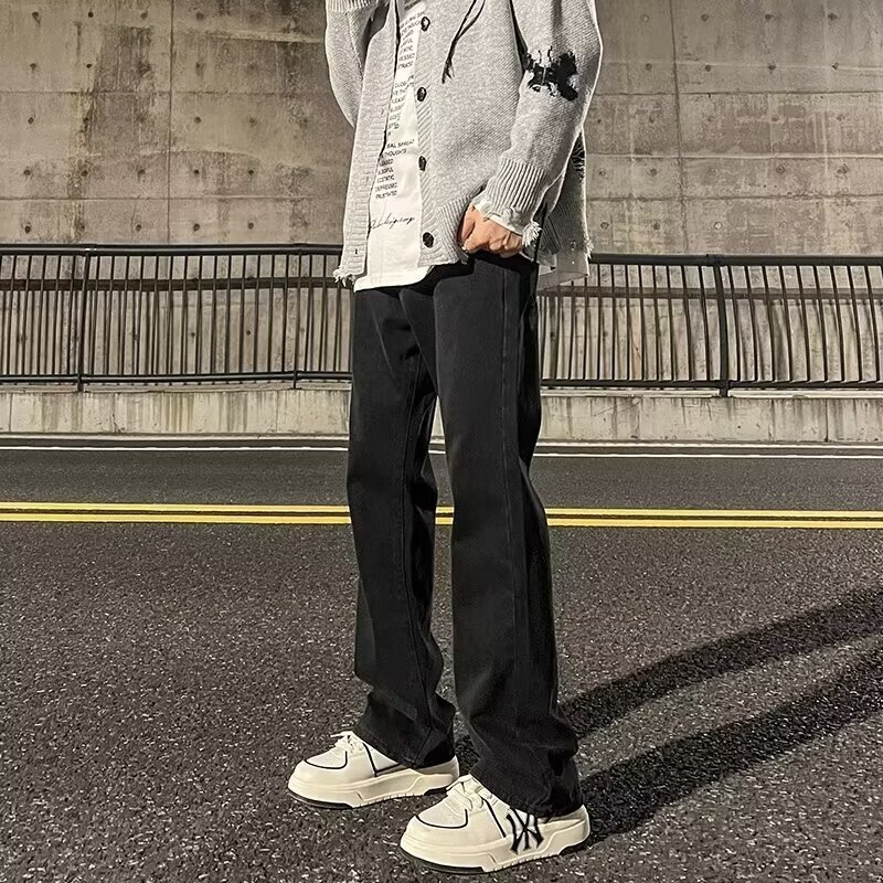 Мужские джинсы нового стиля 2026 года, черные свободные брюки в американском стиле, слегка расклешенные длинные брюки, прямые мужские брюки, мужская одежда.