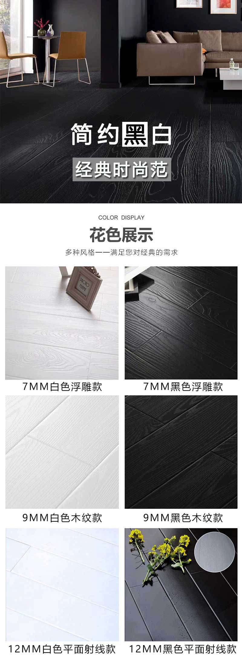 Плоская поверхность с текстурой белого дерева толщиной 7 мм.; 7 мм белая ручная царапина с рисунком плоскости; Плоская поверхность из черного дерева толщиной 9 мм.; Плоская поверхность с черным тиснением толщиной 9 мм.; Плоская поверхность с текстурой белого дерева толщиной 12 мм.; Плоская поверхность из черного дерева толщиной 12 мм.