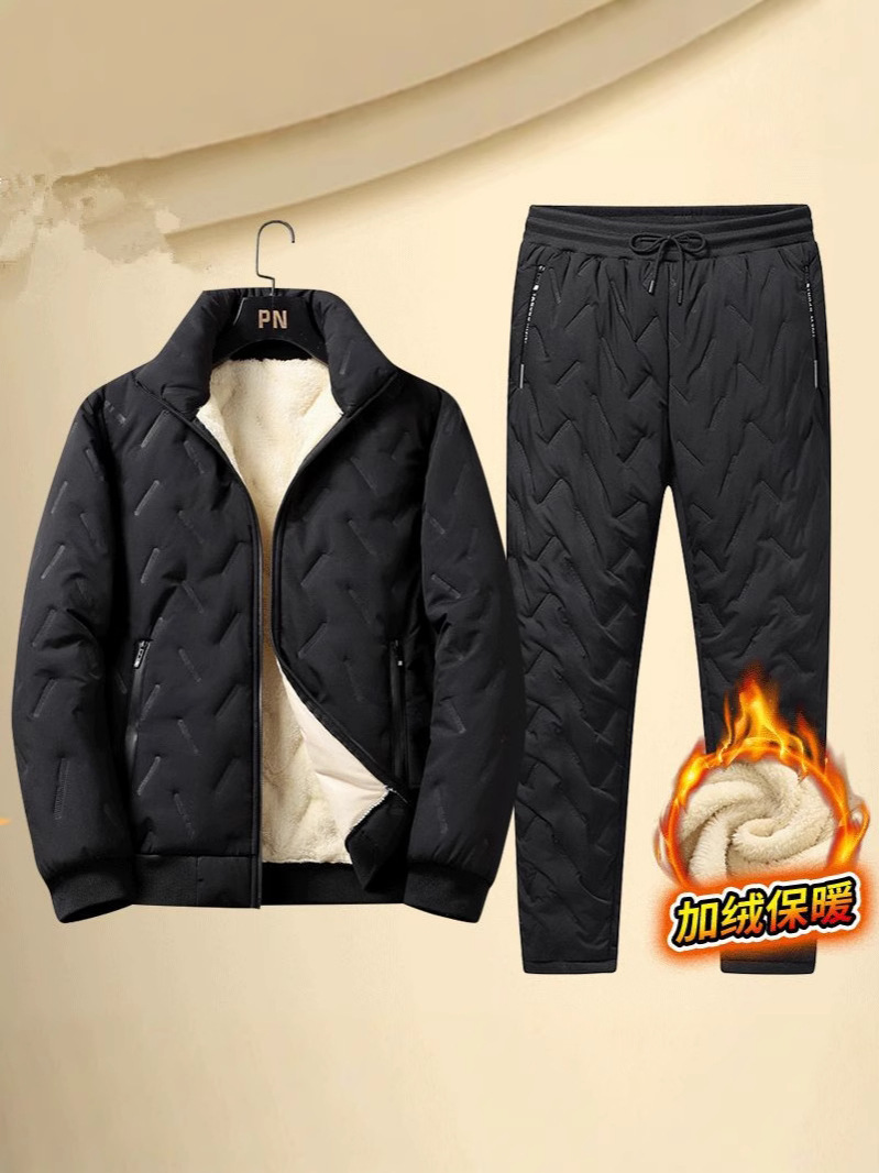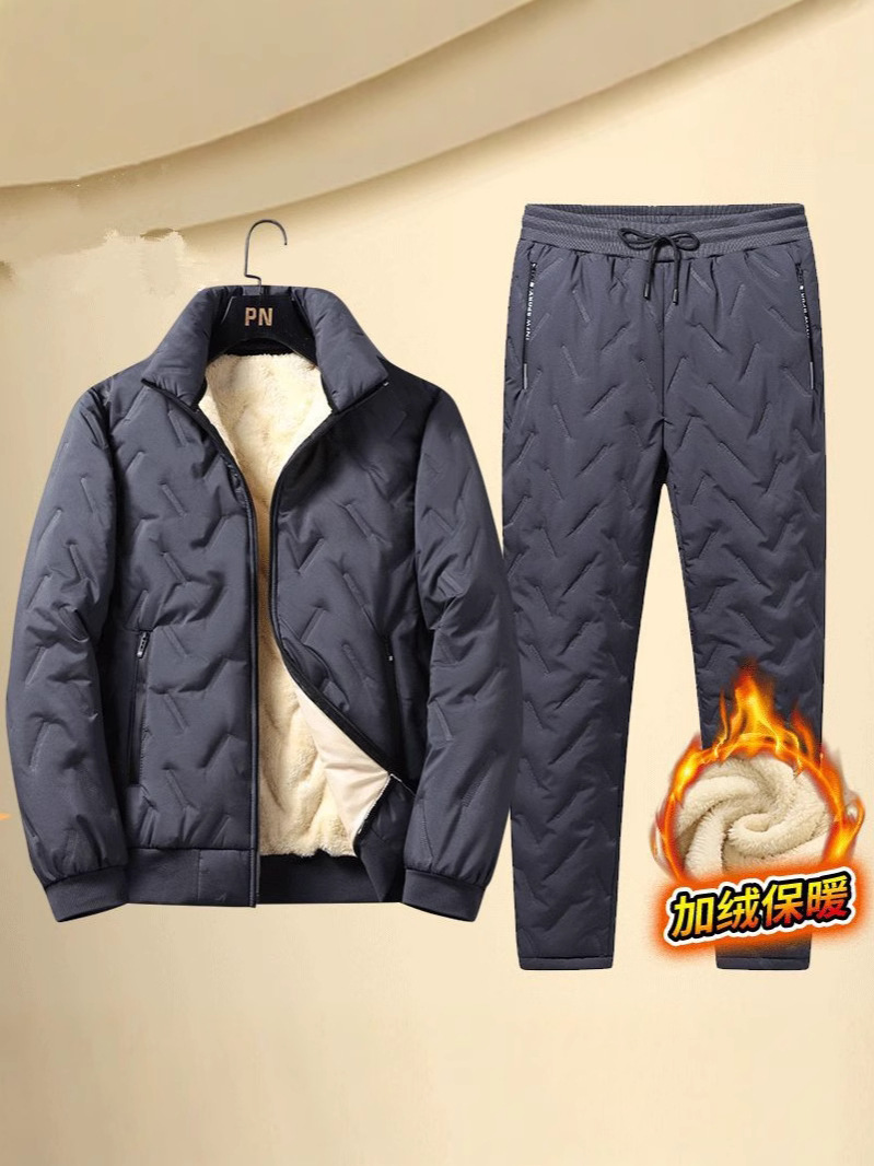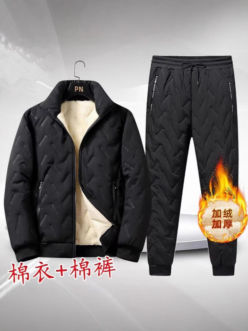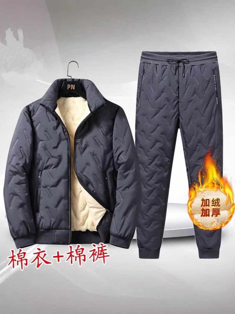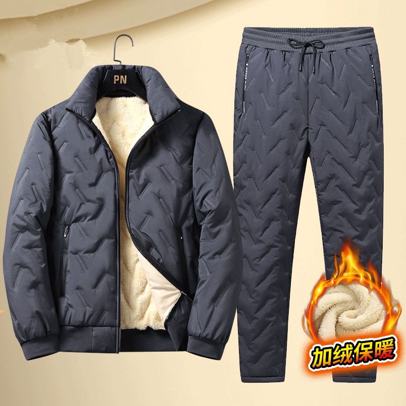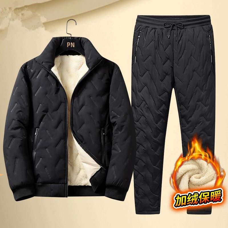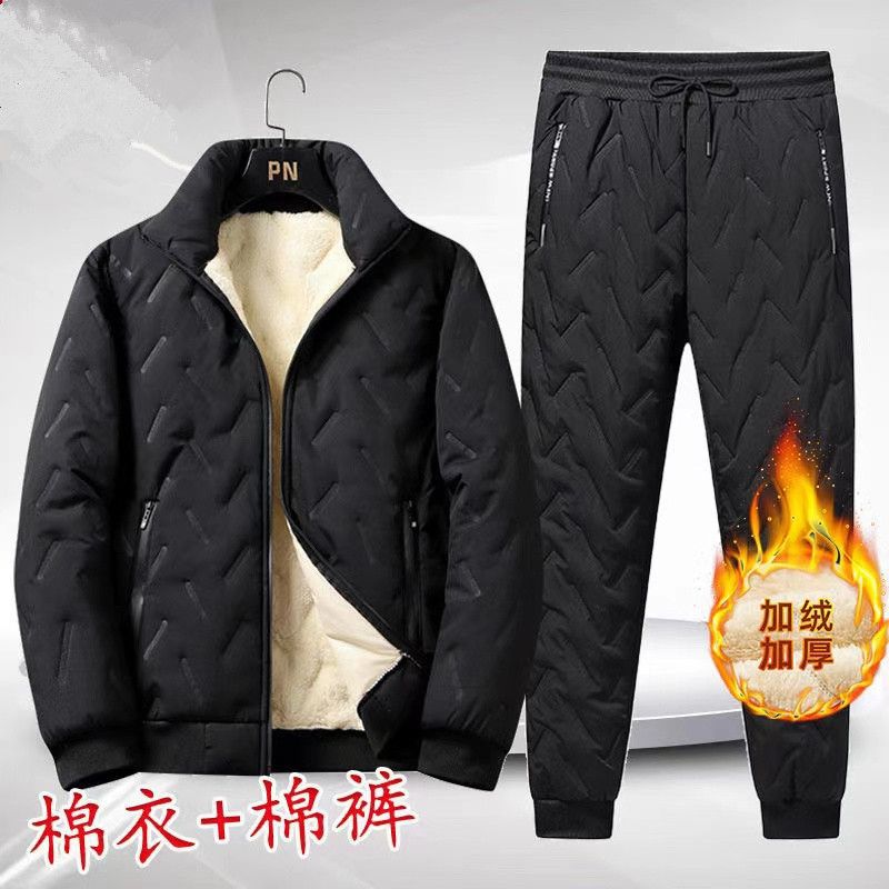 Трансграничные зимние мужские хлопчатобумажные костюмы с бархатом и утолщением стоячий воротник ягненка из двух частей повседневные хлопчатобумажные брюки хлопчатобумажная куртка