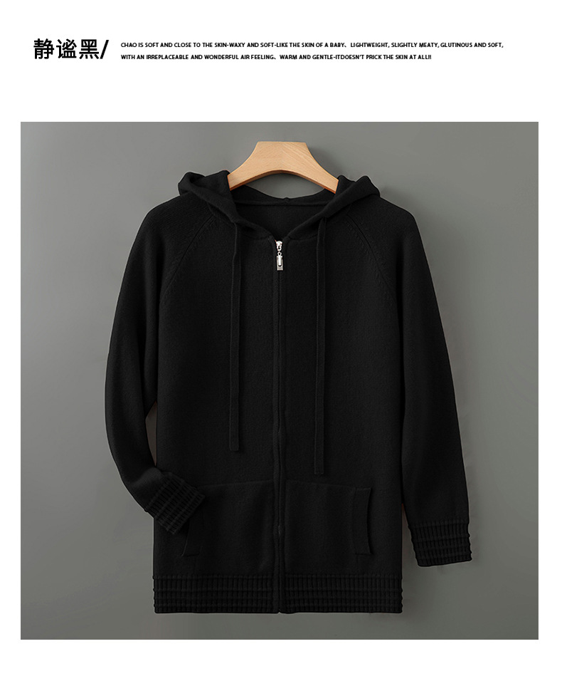 Осенний и зимний новый свободный вязаный куртка свитер с капюшоном повседневный 100% шерстяной кардиган мужской трансграничной независимой станции оптовой