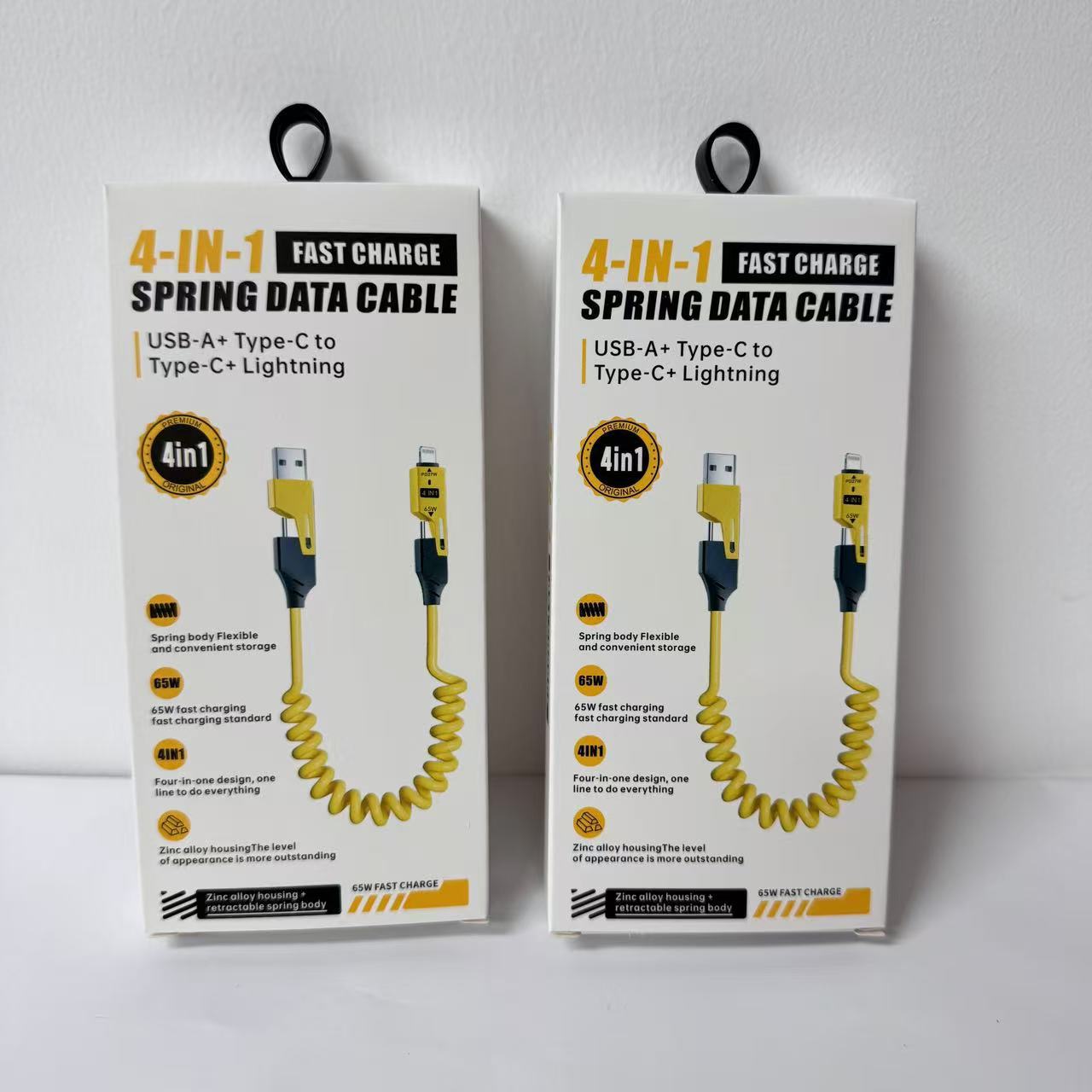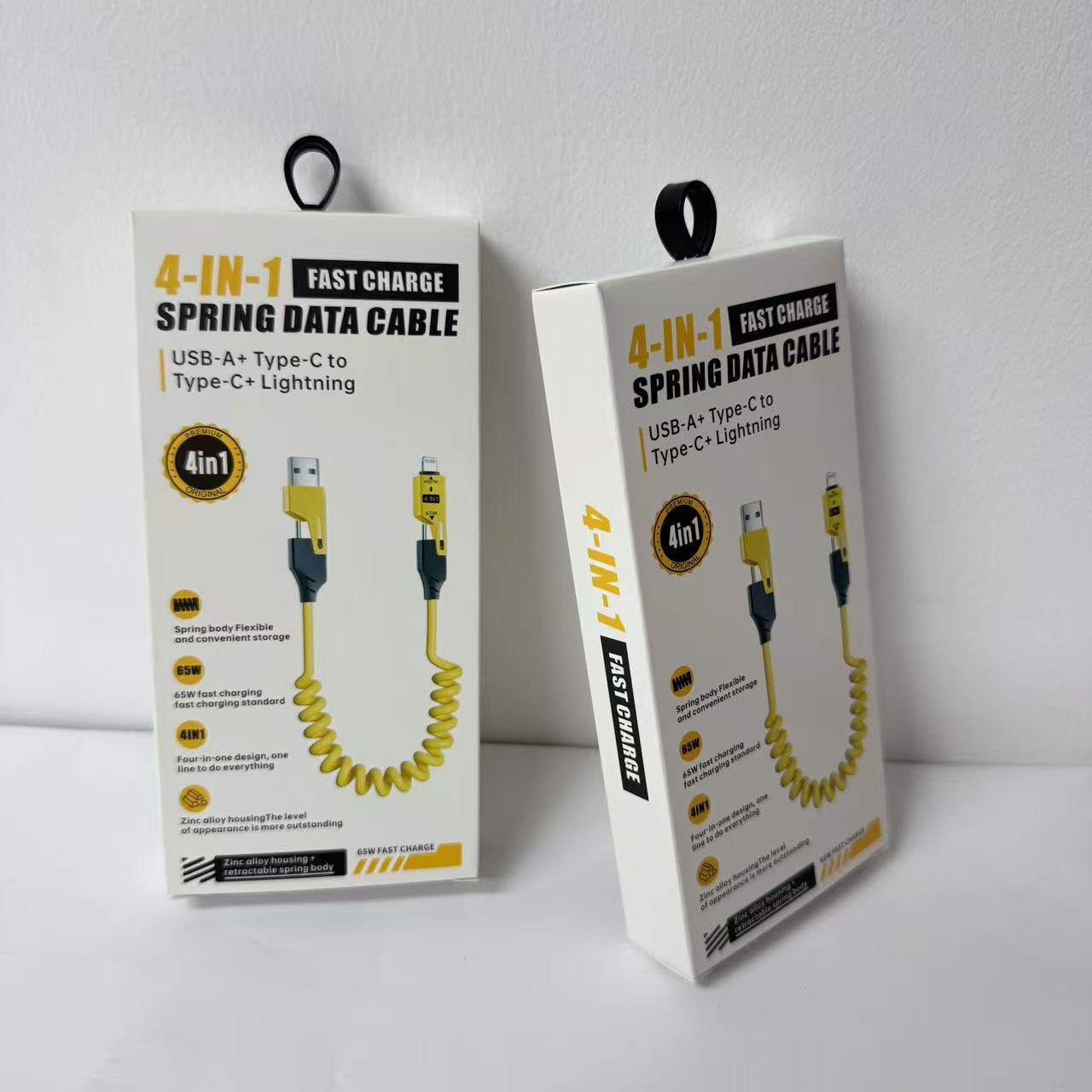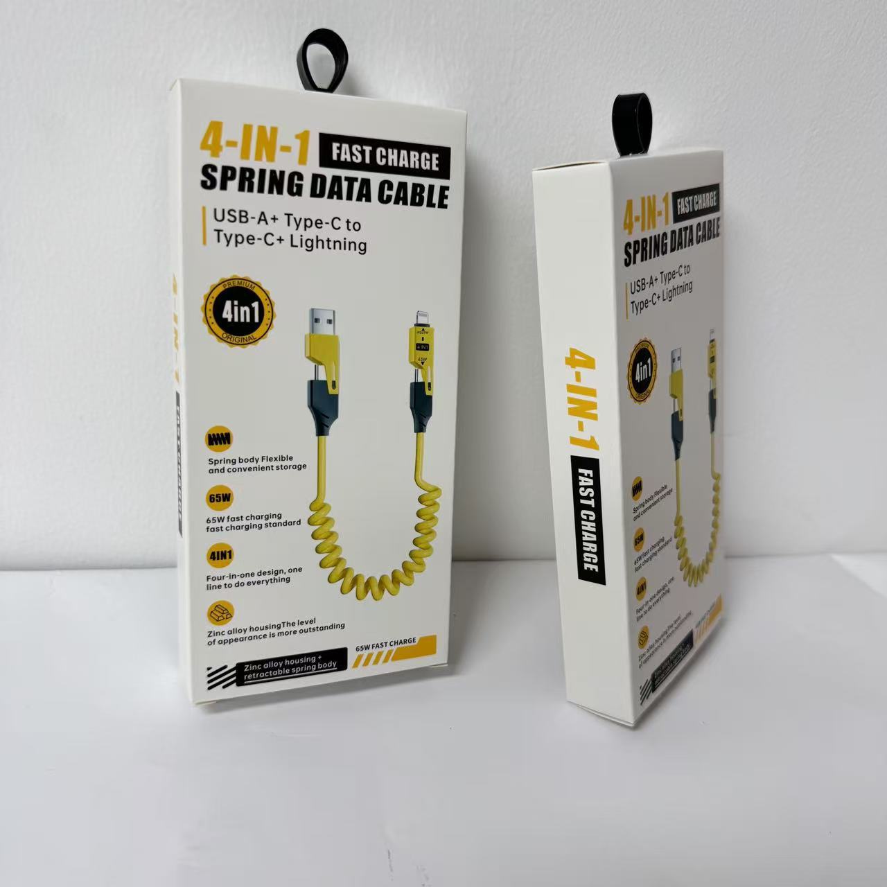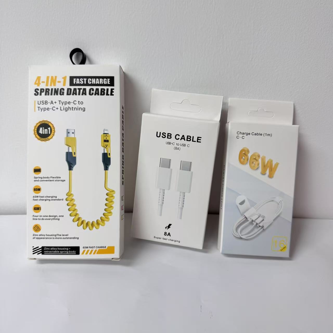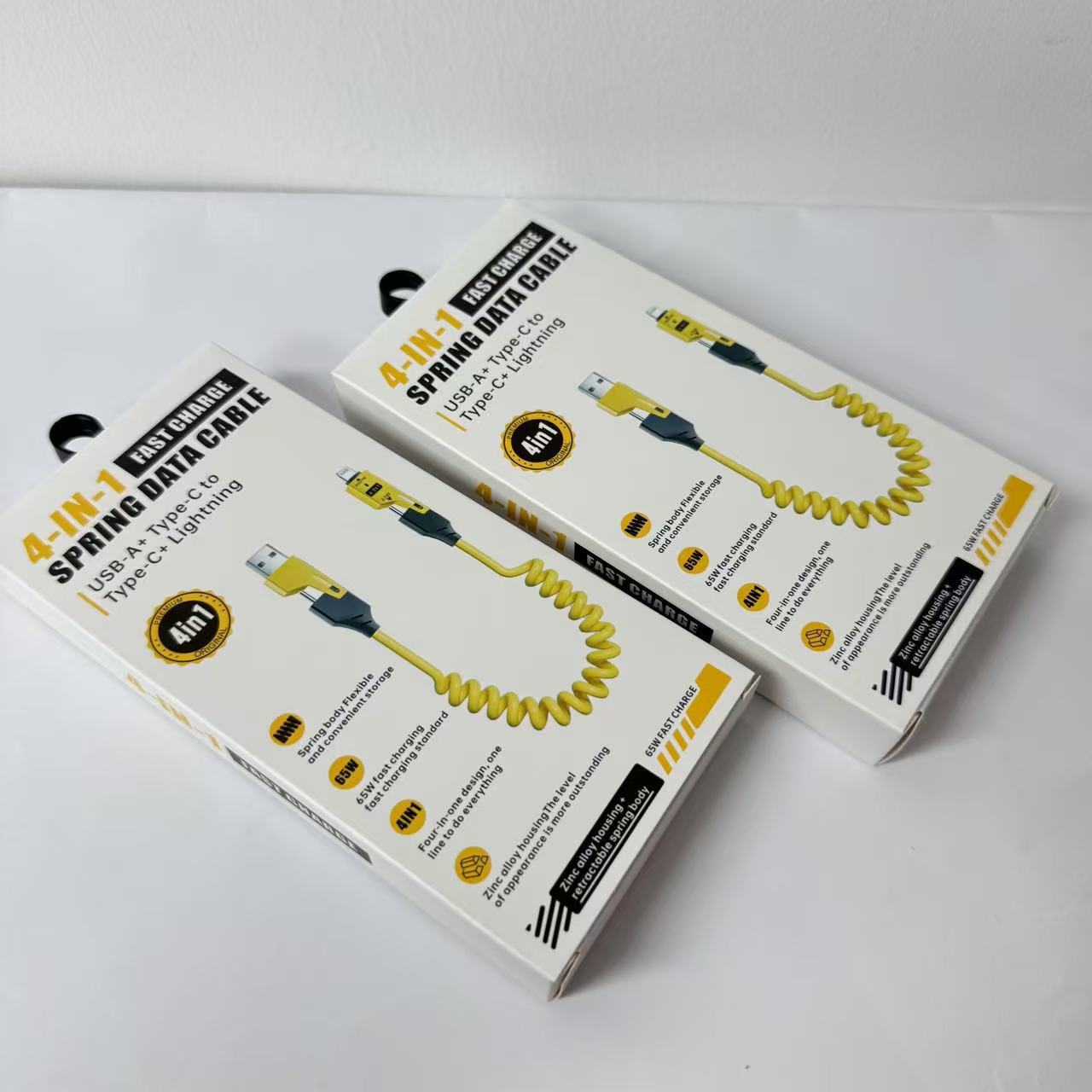 Кабель для зарядки 4-в-1 с пружинным механизмом, 65 Вт, в цветной коробке, упаковка для кабеля Apple 16, упаковка для кабеля для зарядки 17, маленькая белая коробка