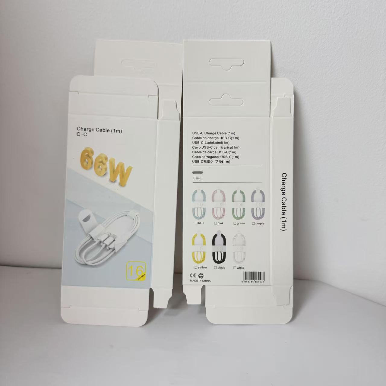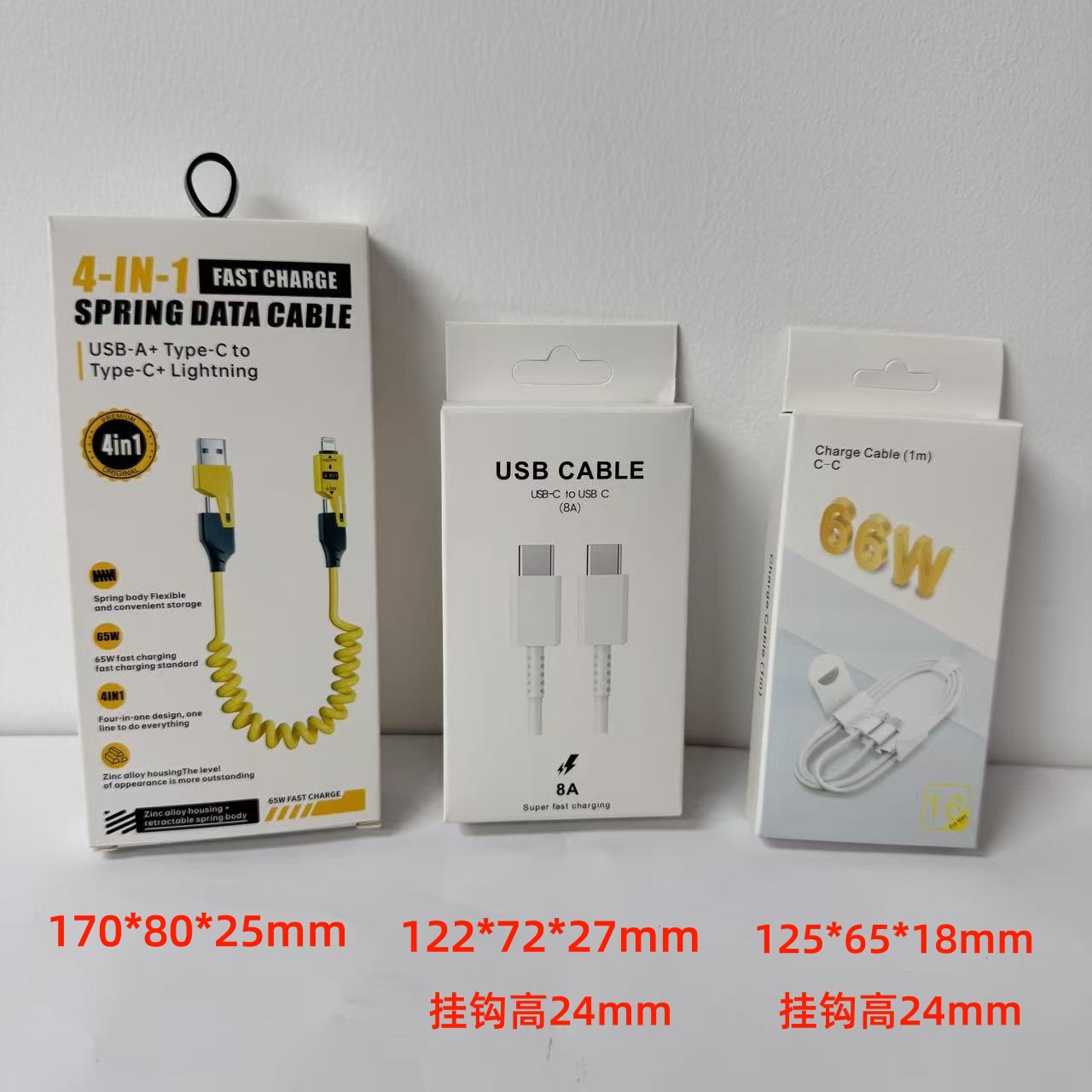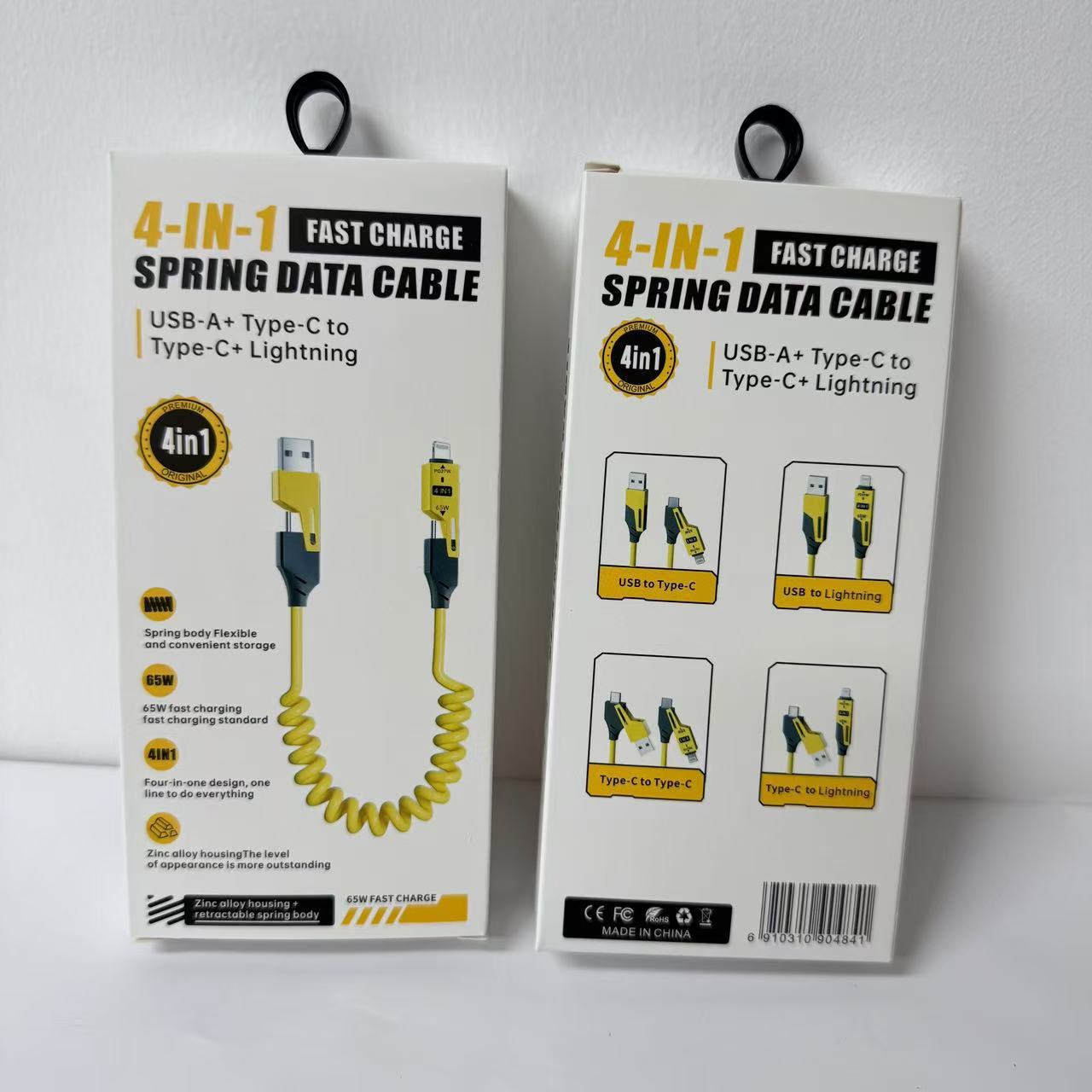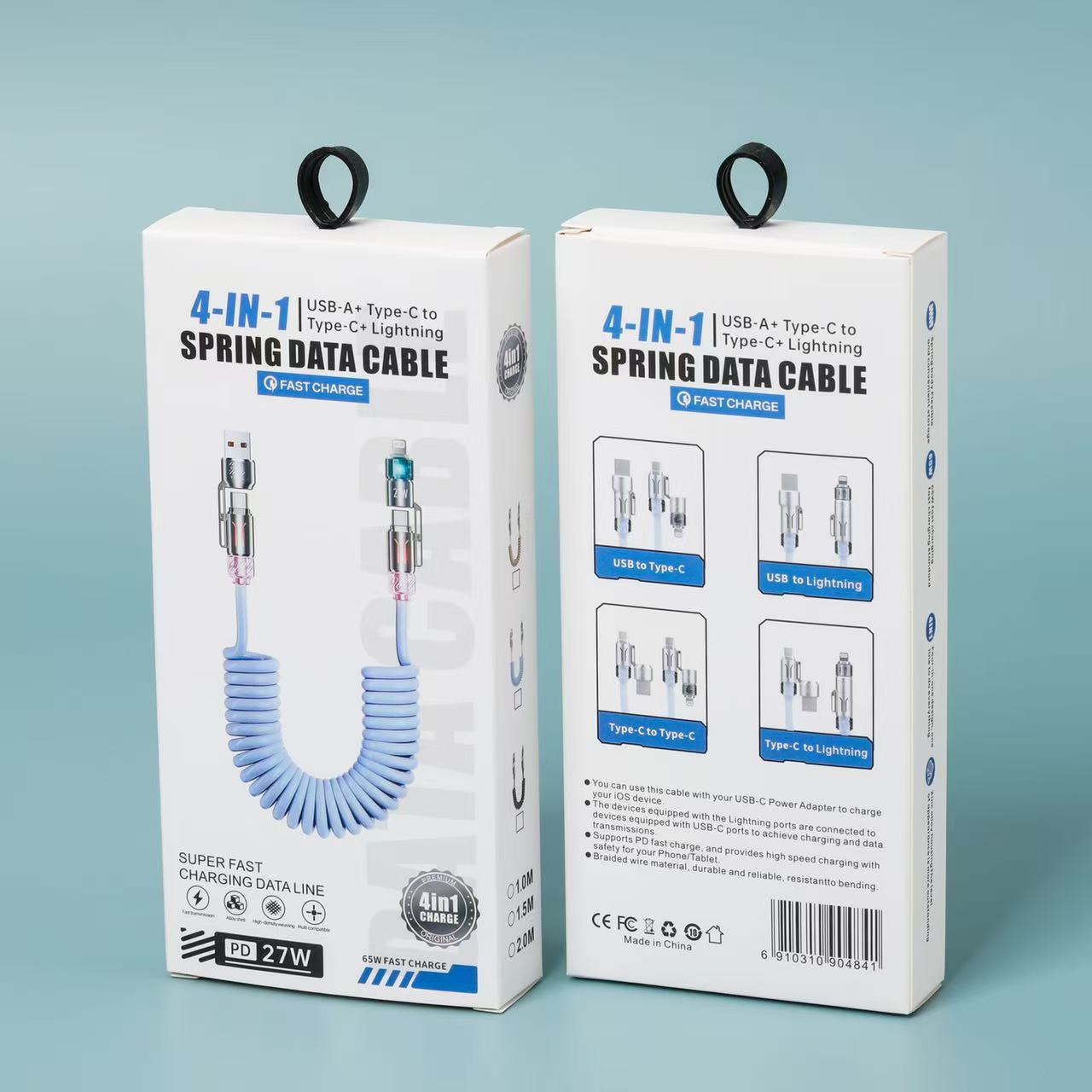 Кабель для зарядки 4-в-1 с пружинным механизмом, 65 Вт, в цветной коробке, упаковка для кабеля Apple 16, упаковка для кабеля для зарядки 17, маленькая белая коробка