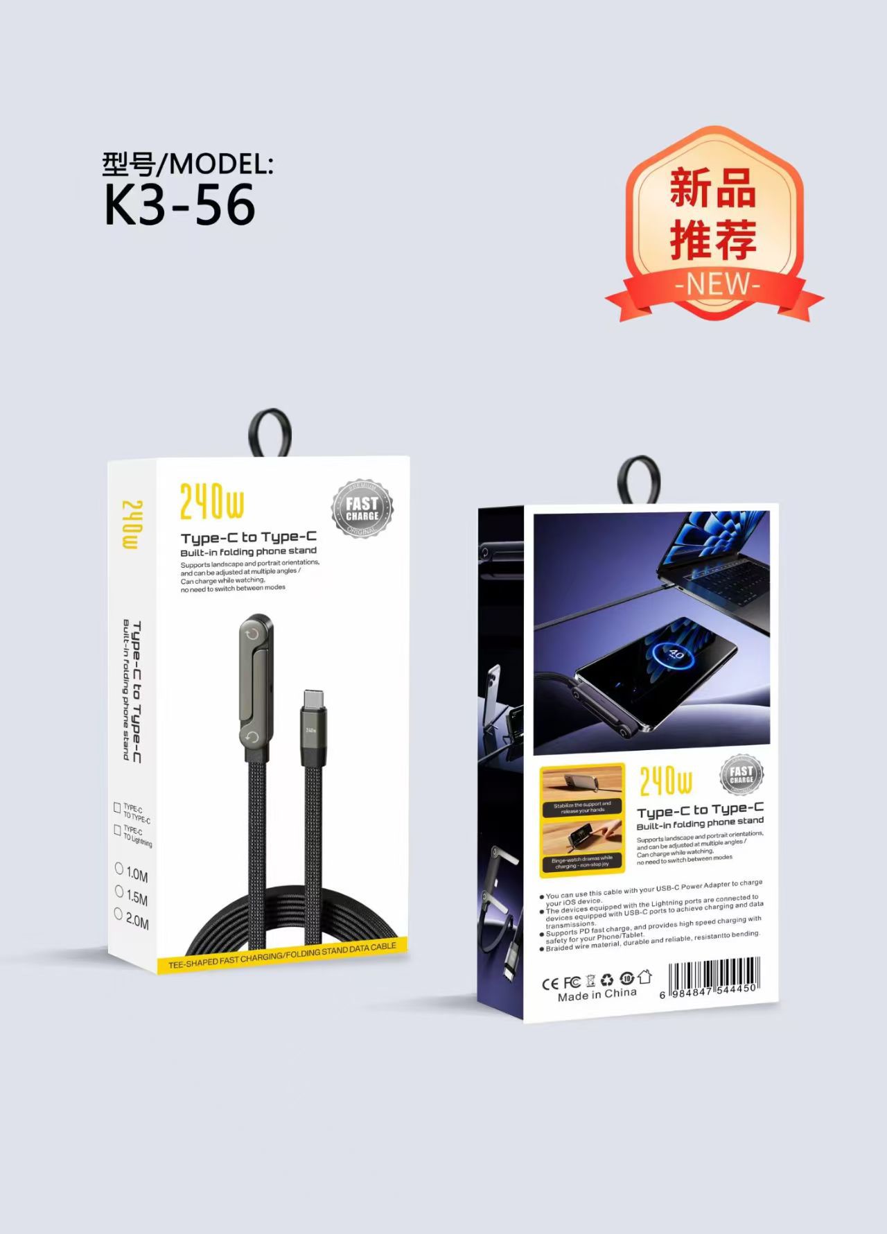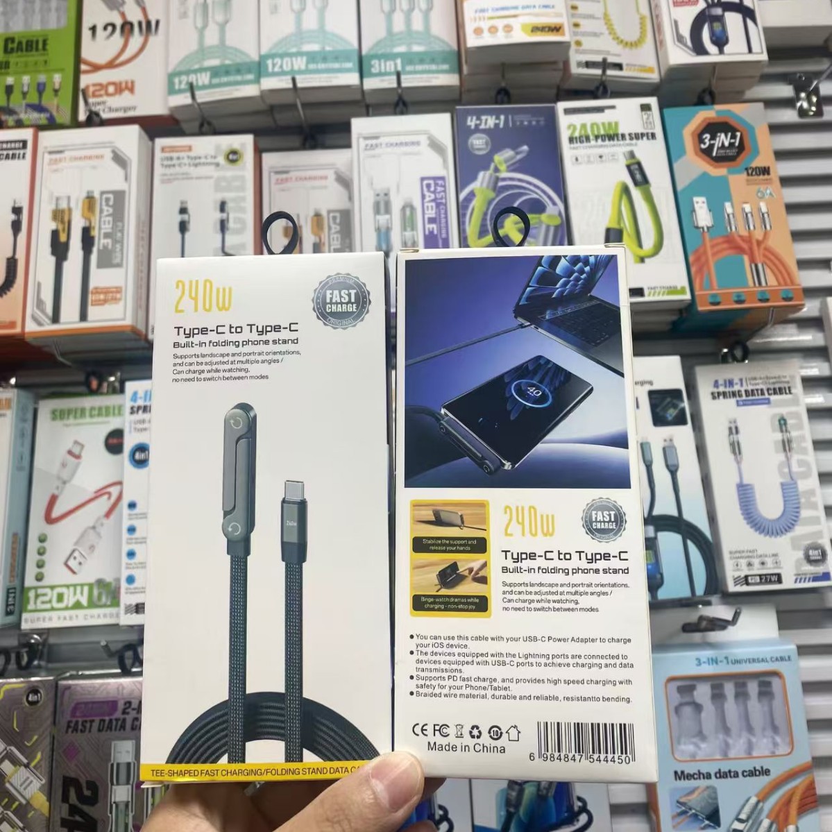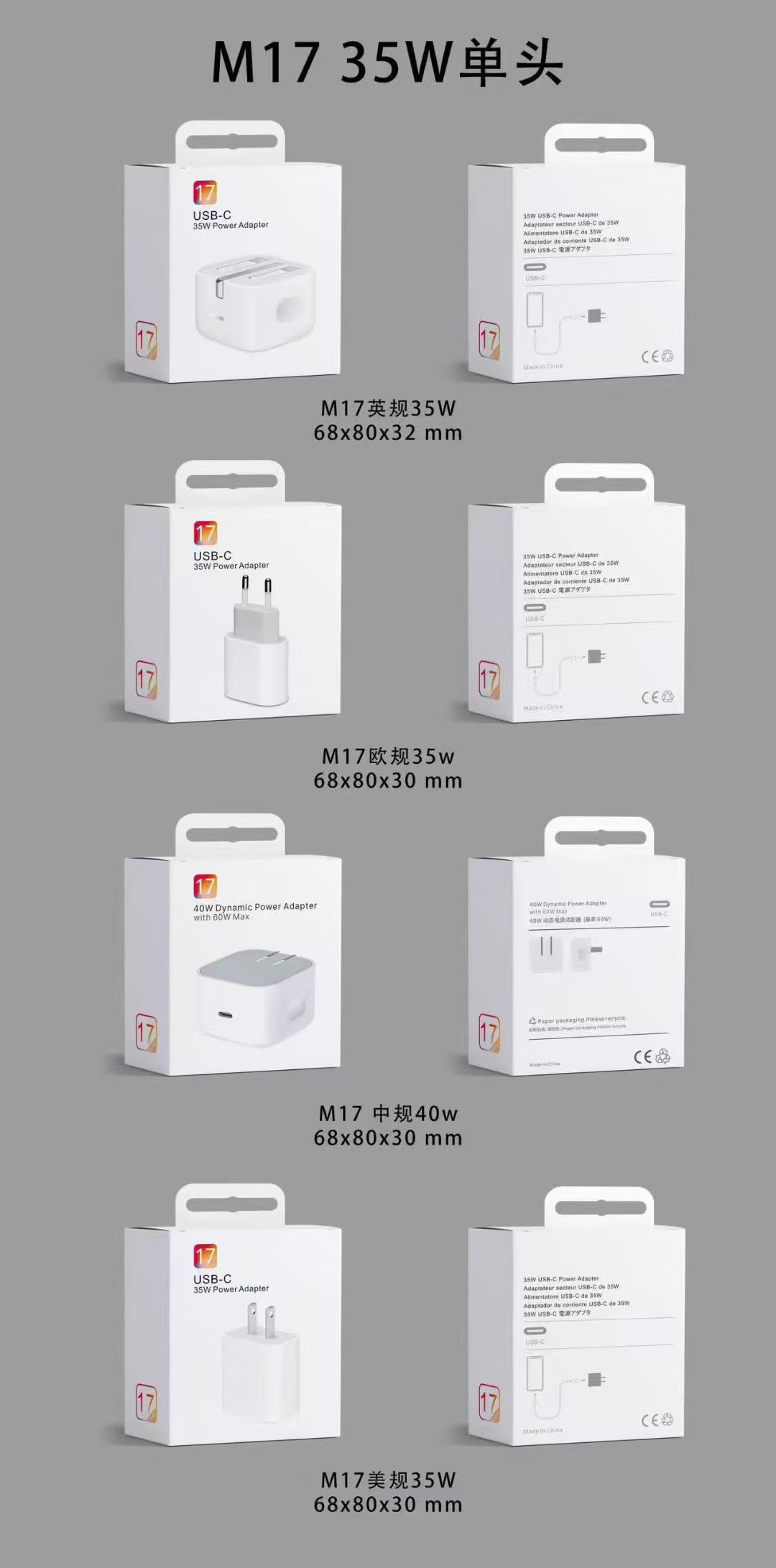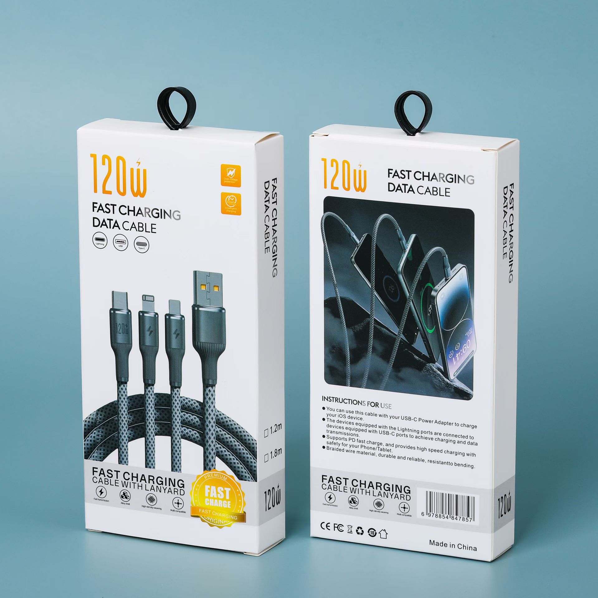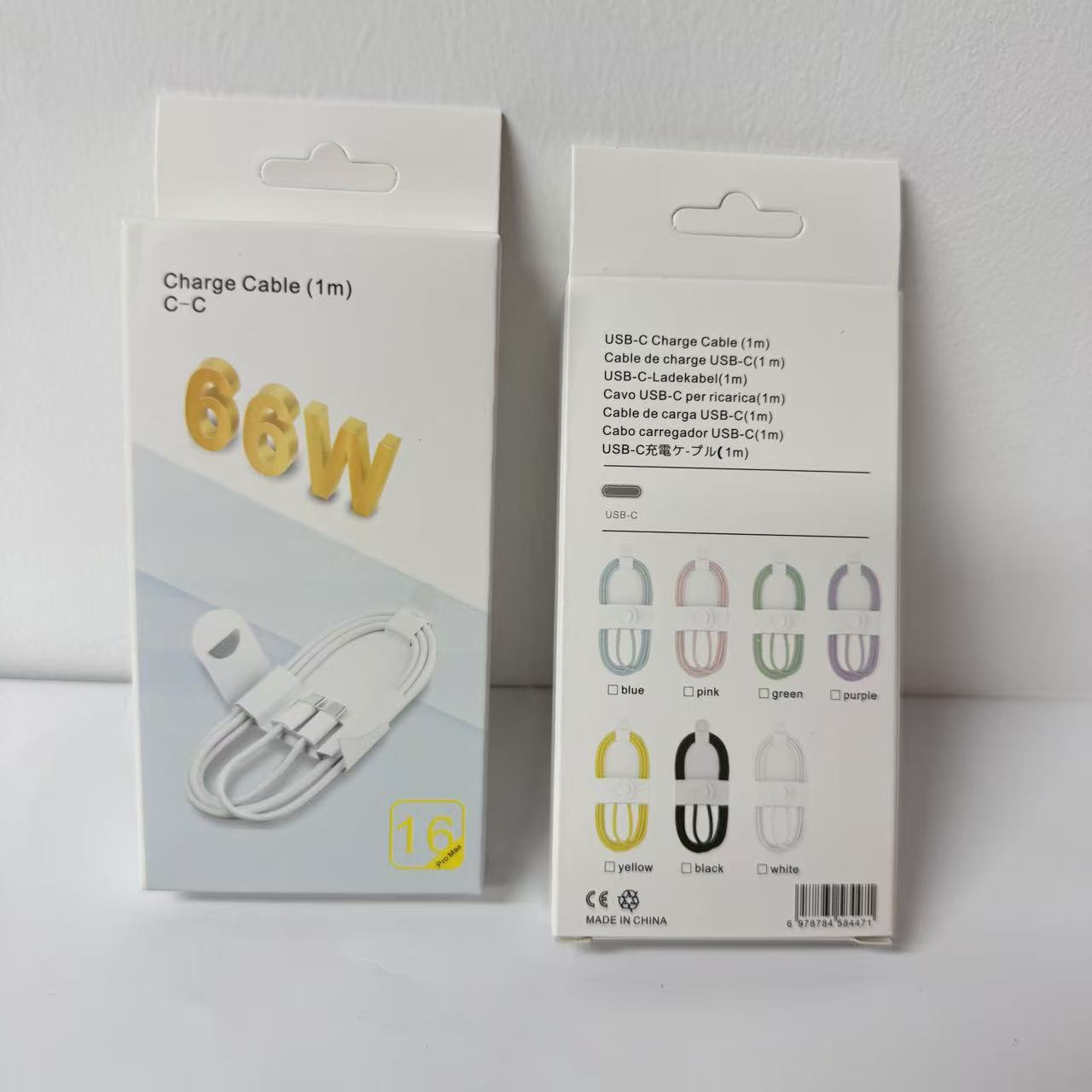Кабель для зарядки 4-в-1 с пружинным механизмом, 65 Вт, в цветной коробке, упаковка для кабеля Apple 16, упаковка для кабеля для зарядки 17, маленькая белая коробка