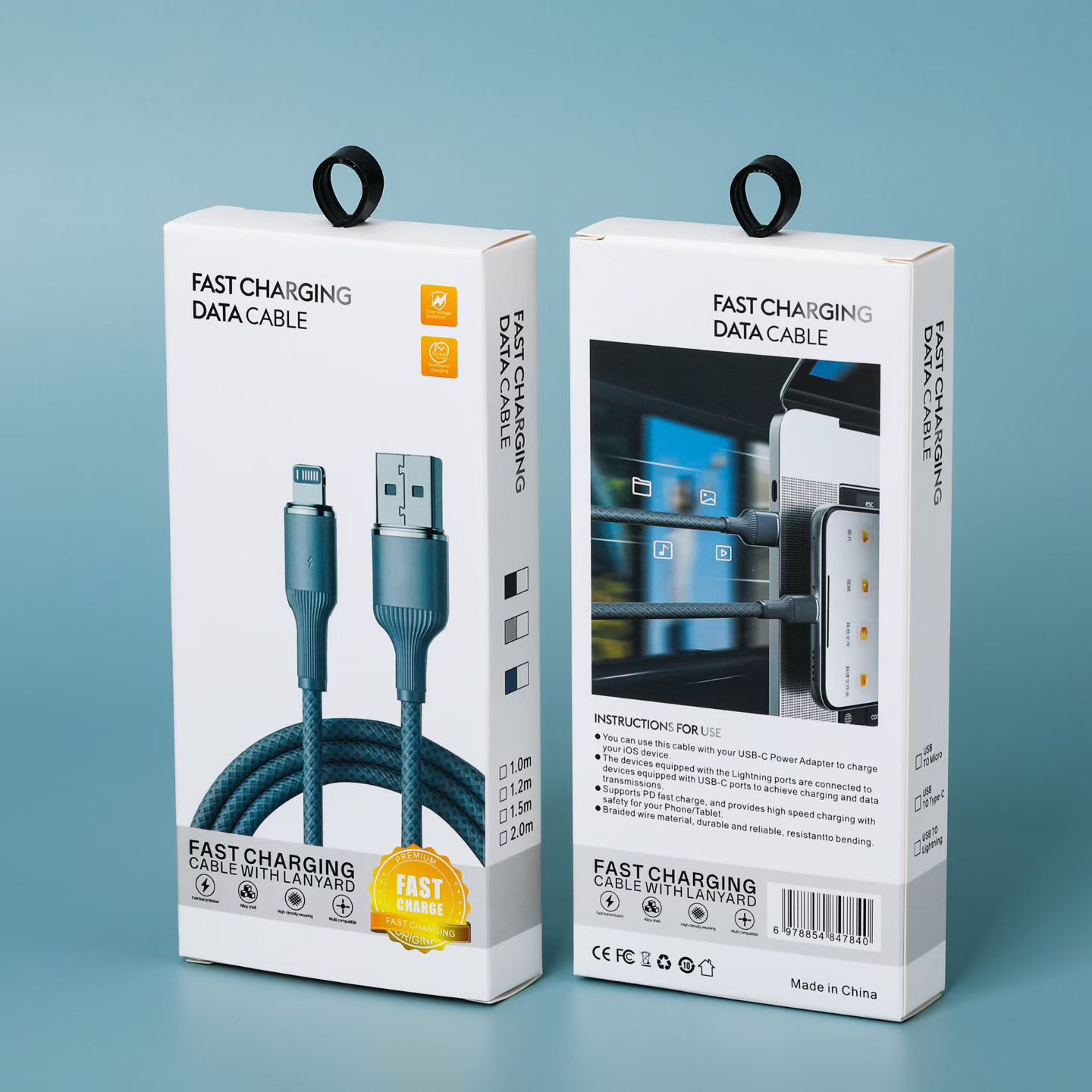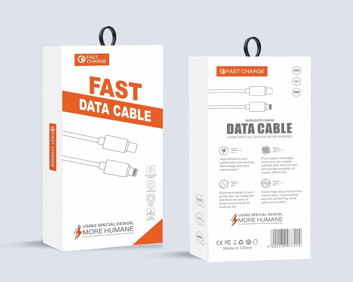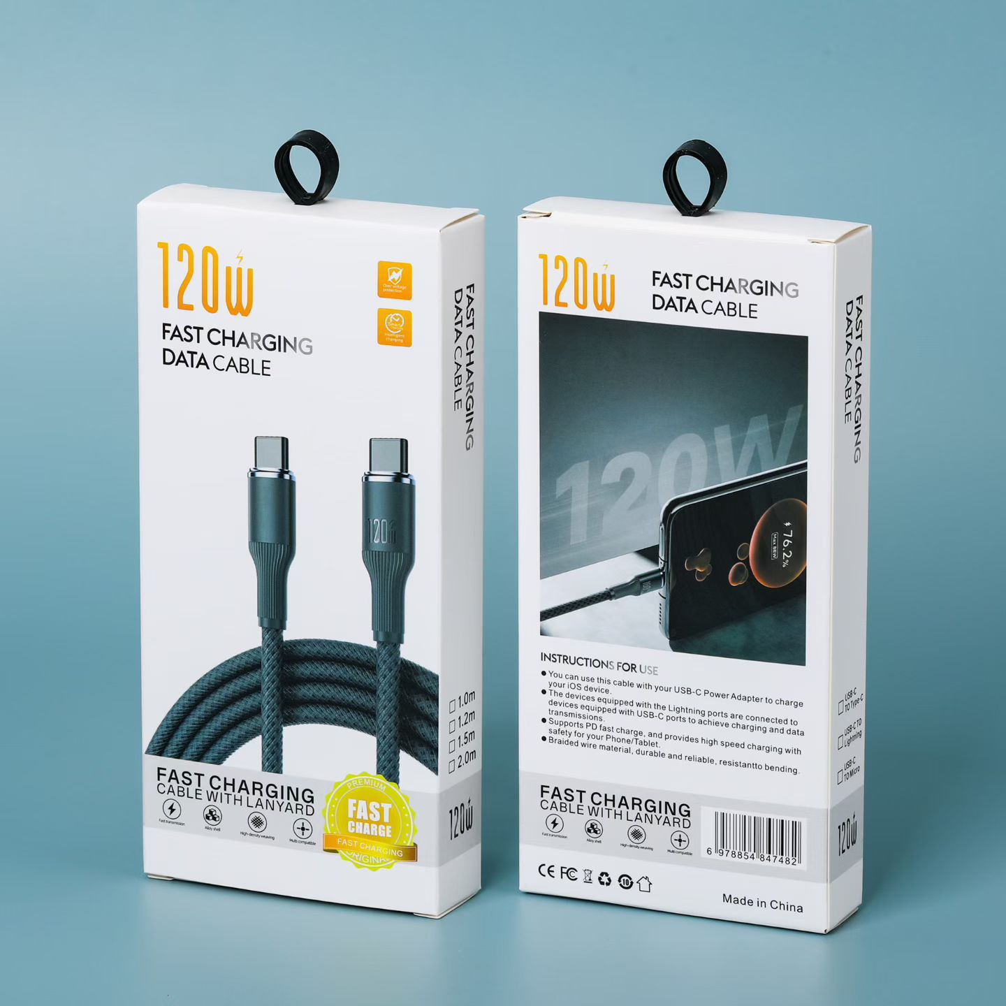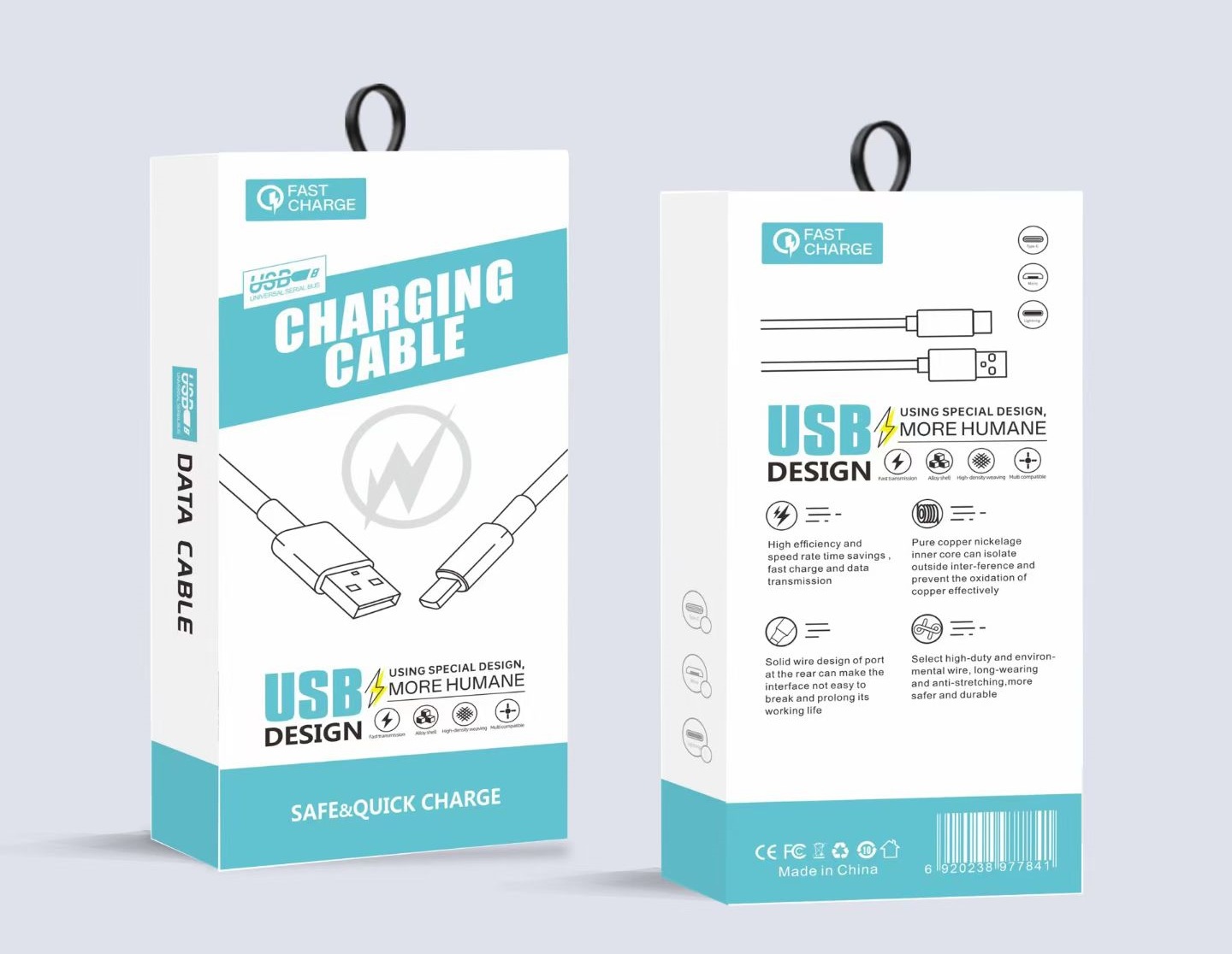 Упаковка силиконового кабеля для передачи данных с плетением «макарон».