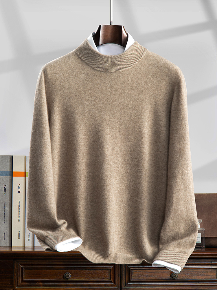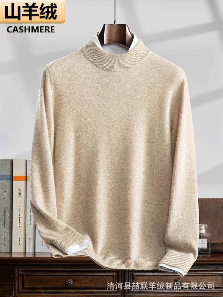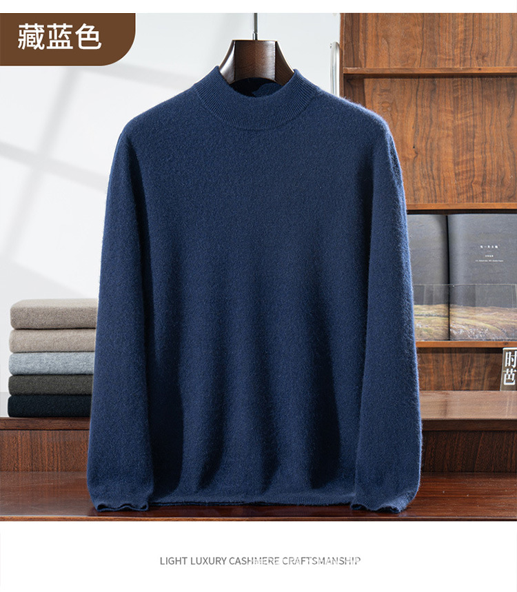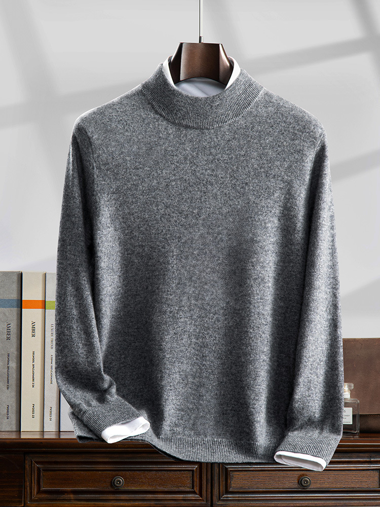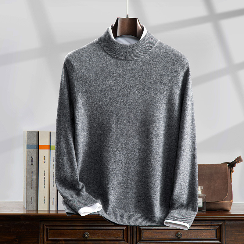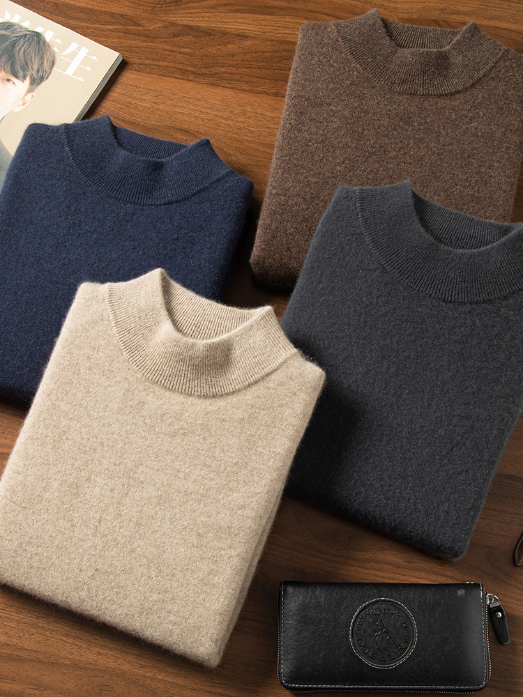 Новый мужской свитер из чистого кашемира на зиму 2025 года, с воротником-стойкой, толстый вязаный пуловер, повседневный свободный свитер-базовый слой для мужчин.