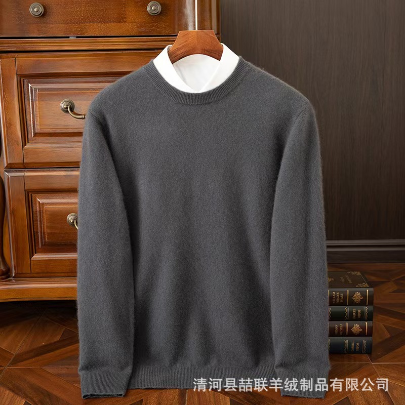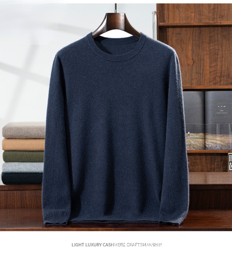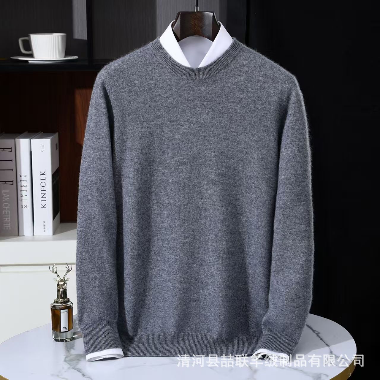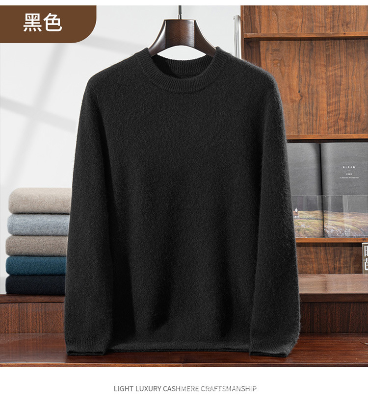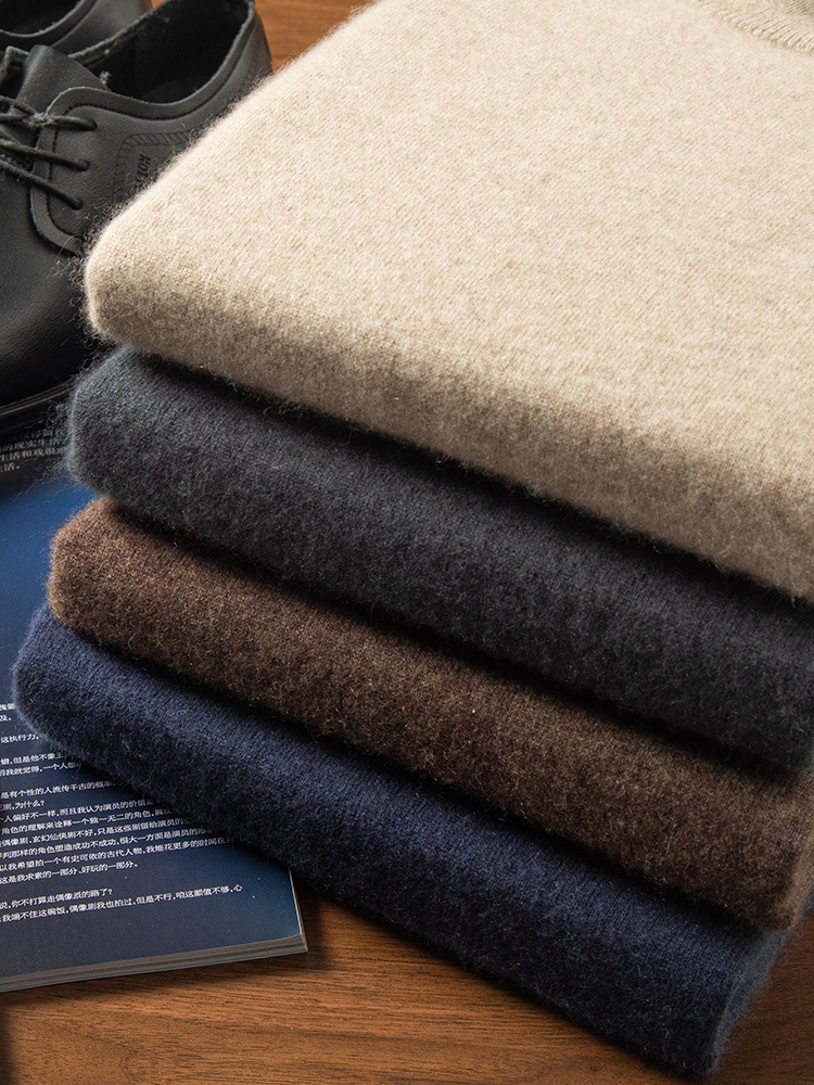 Новый мужской свитер из чистого кашемира на зиму 2025 года, с воротником-стойкой, толстый вязаный пуловер, повседневный свободный свитер-базовый слой для мужчин.