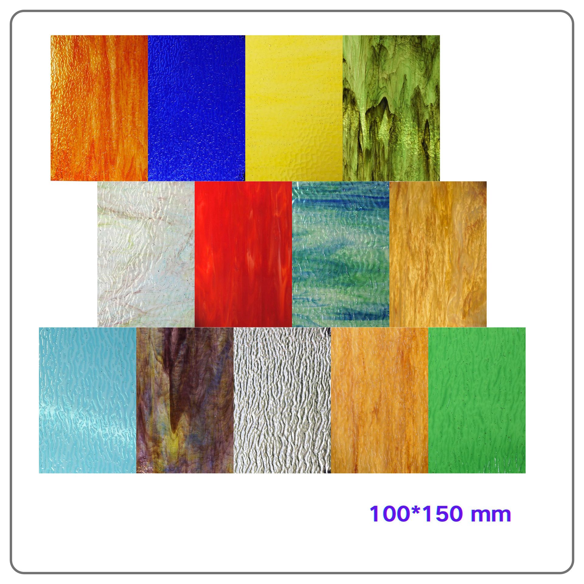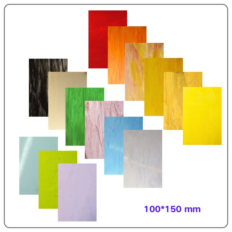 Набор из 8 витражных стекол серии №8-1, красные оттенки, 10*15 см, толщина 3 мм, 8 штук, цветное церковное стекло.