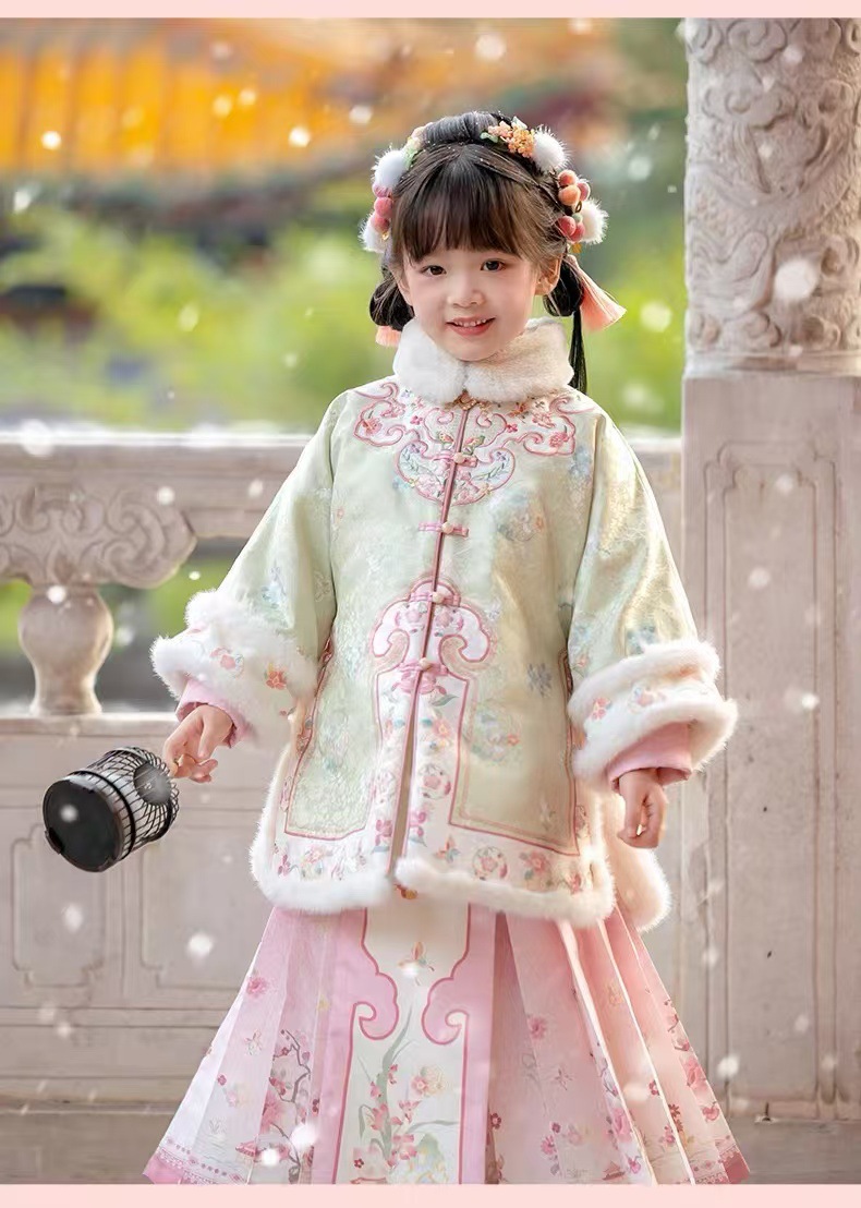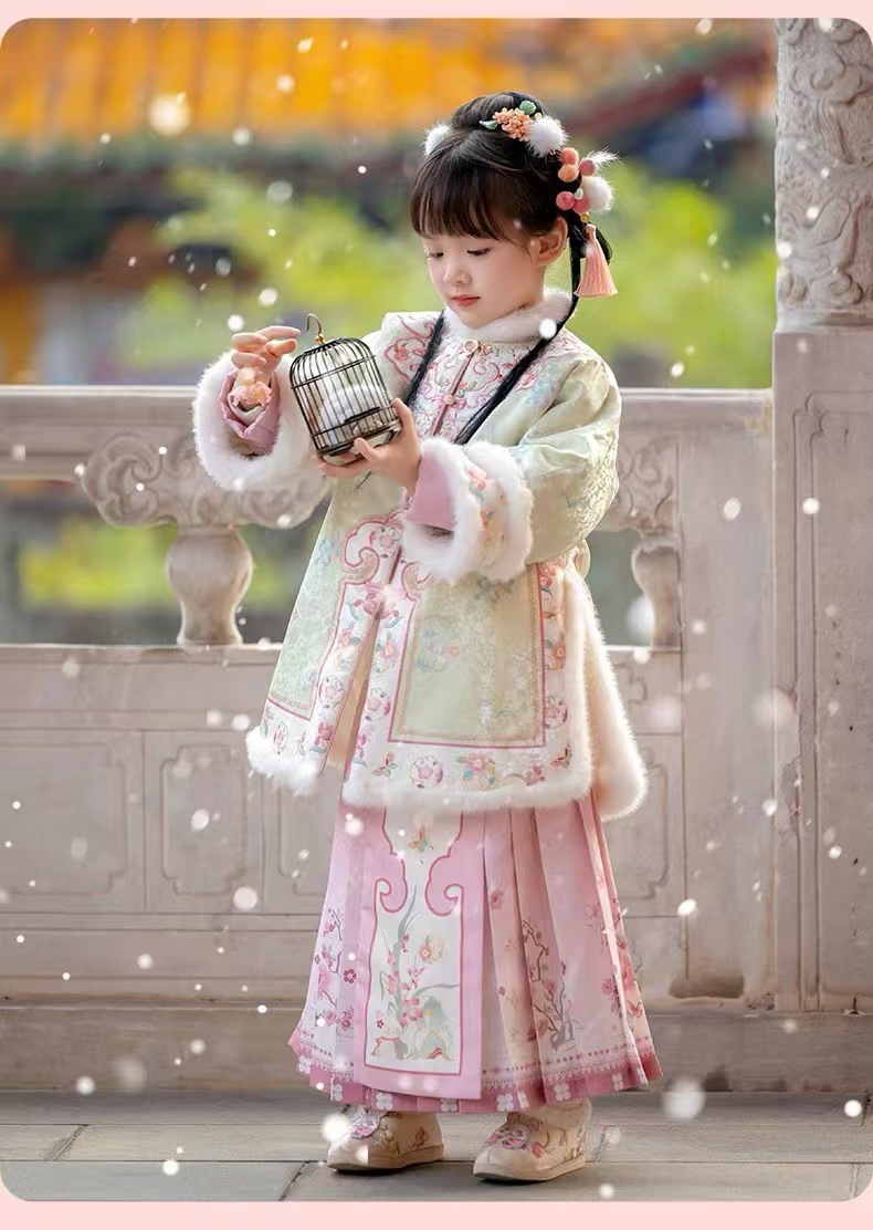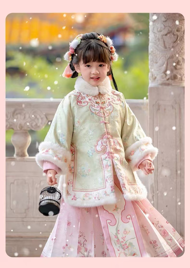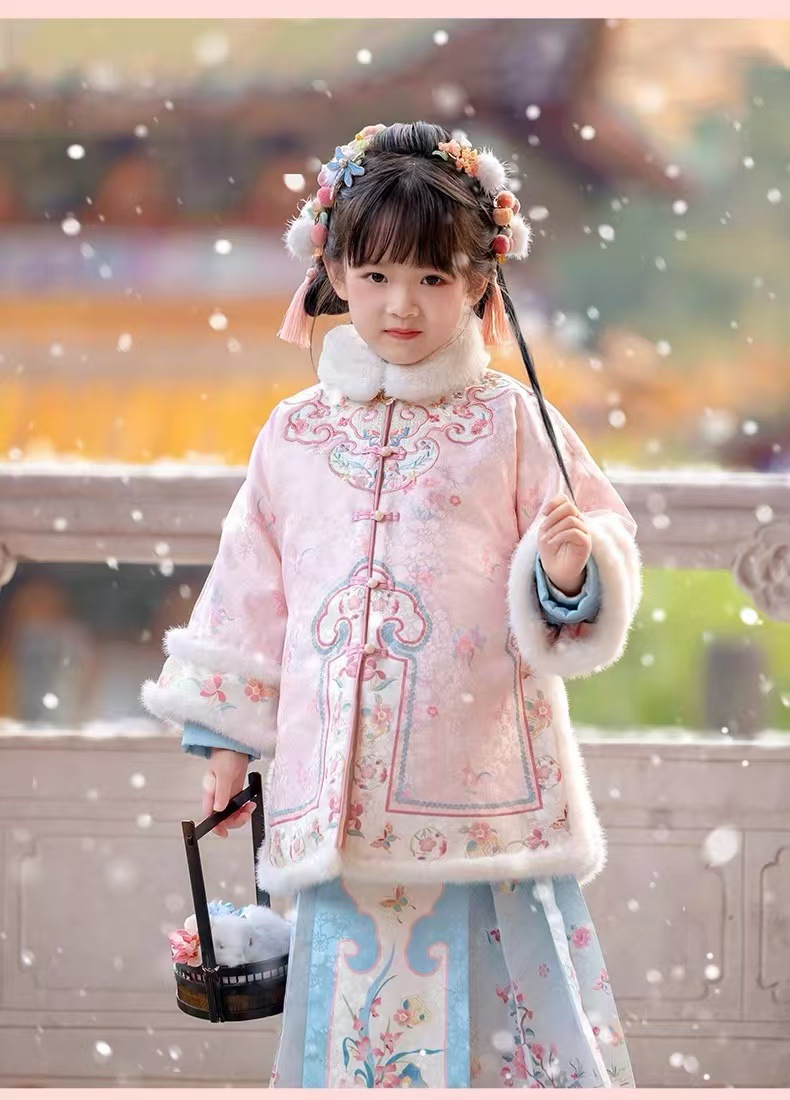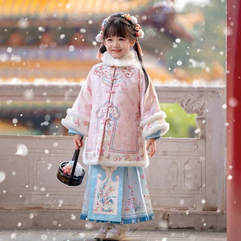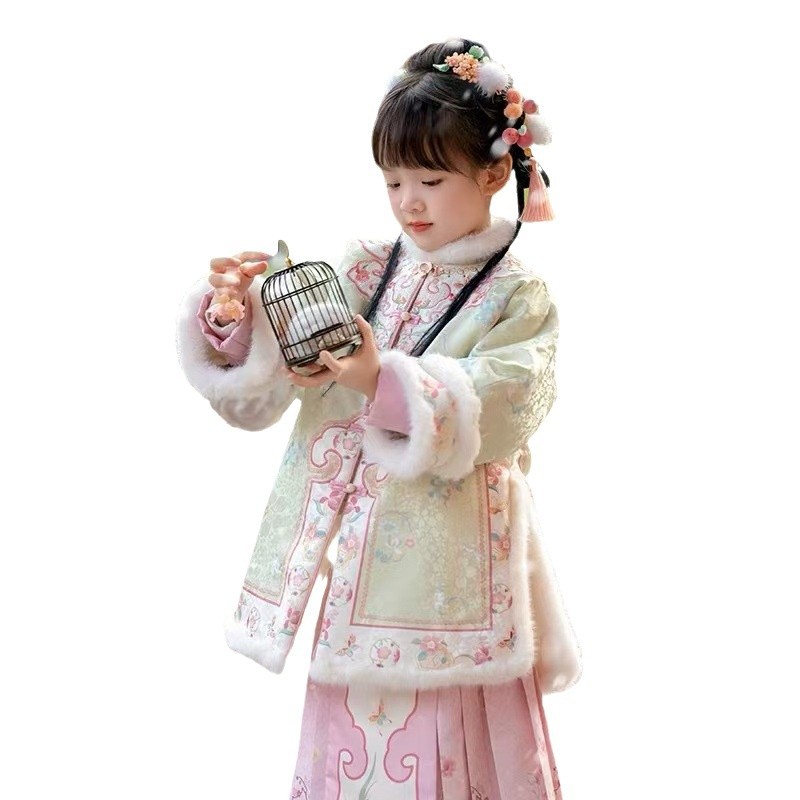 Новинка: зимний комплект ханьфу для девочек 2025 года, утепленный костюм в стиле Мин, юбка-мамьян для детей, древний костюм для девочек, сказочный наряд на Новый год.