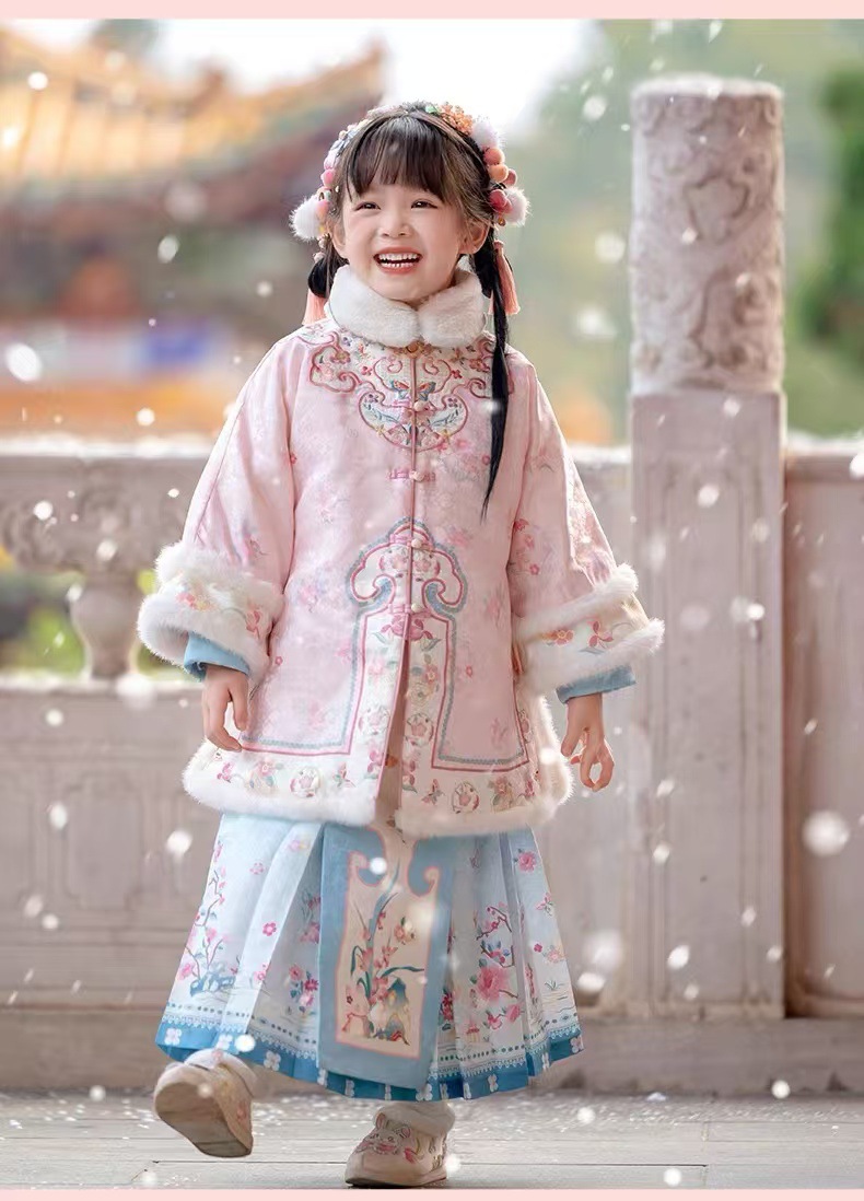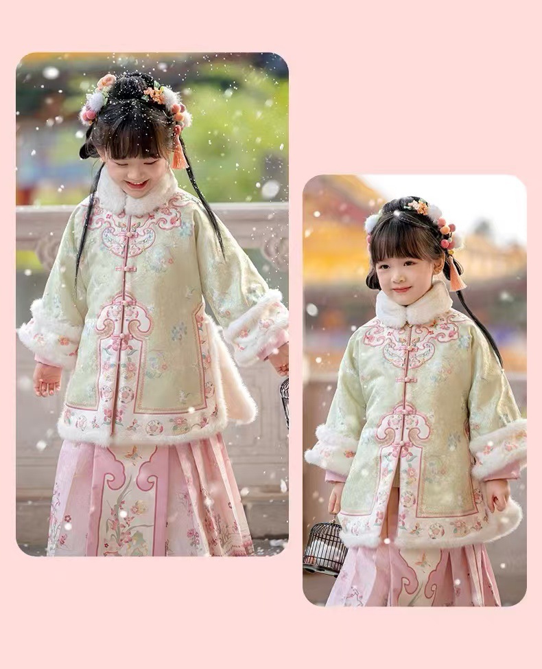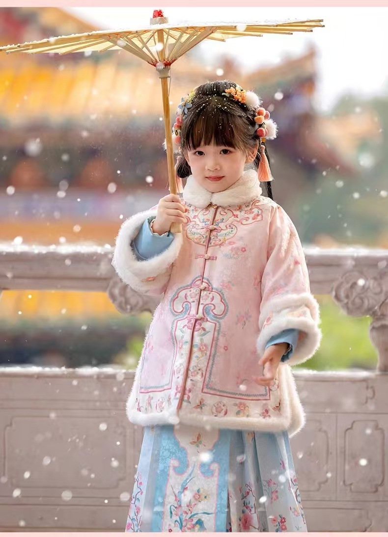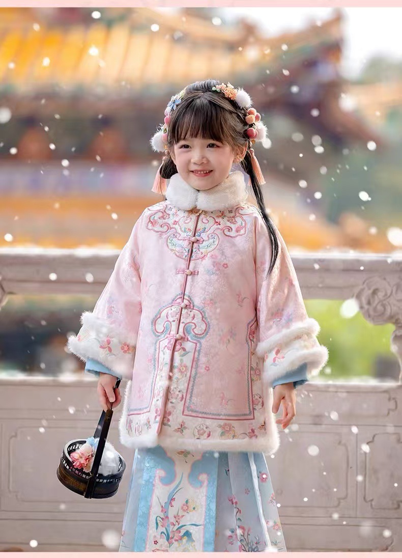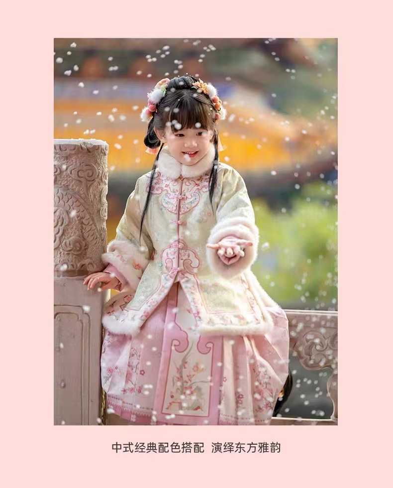 Новинка: зимний комплект ханьфу для девочек 2025 года, утепленный костюм в стиле Мин, юбка-мамьян для детей, древний костюм для девочек, сказочный наряд на Новый год.