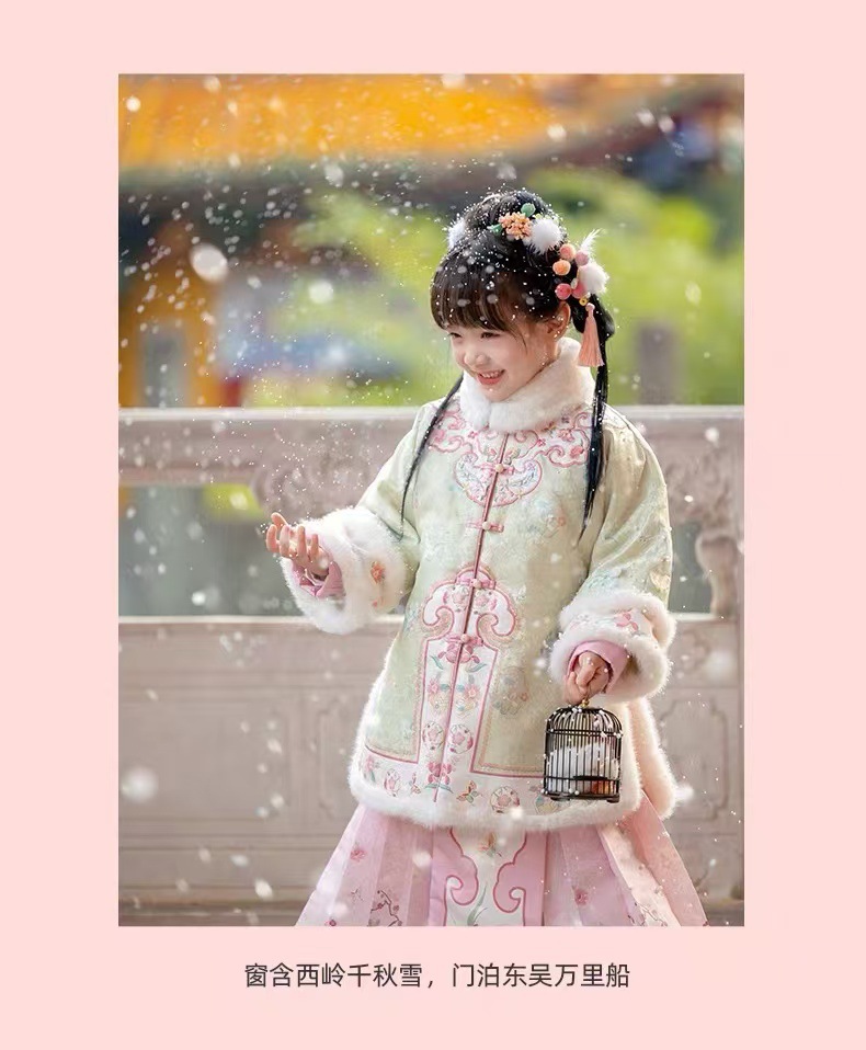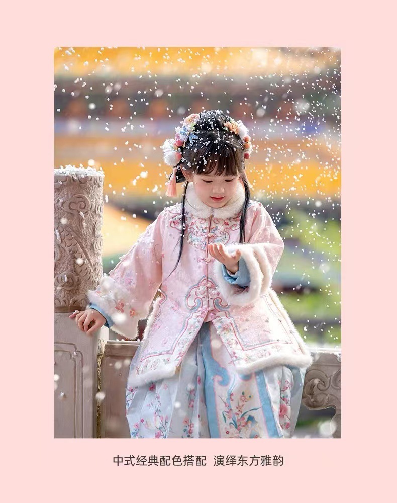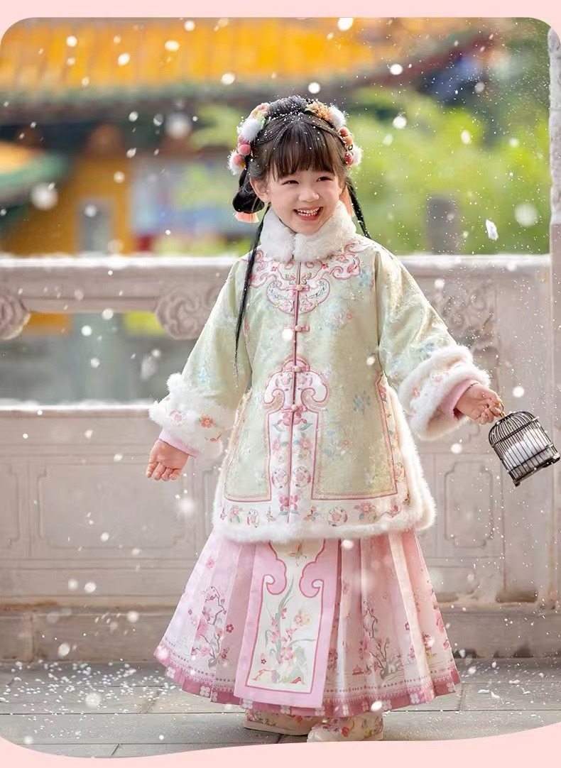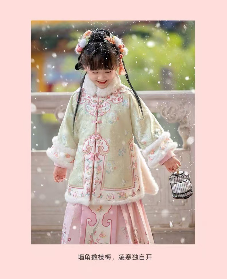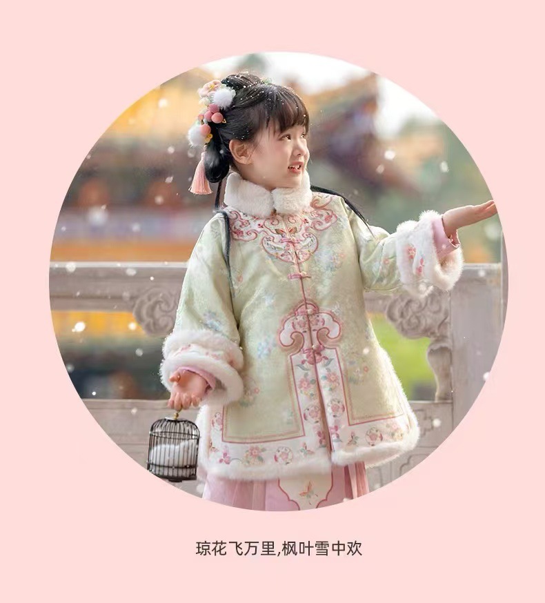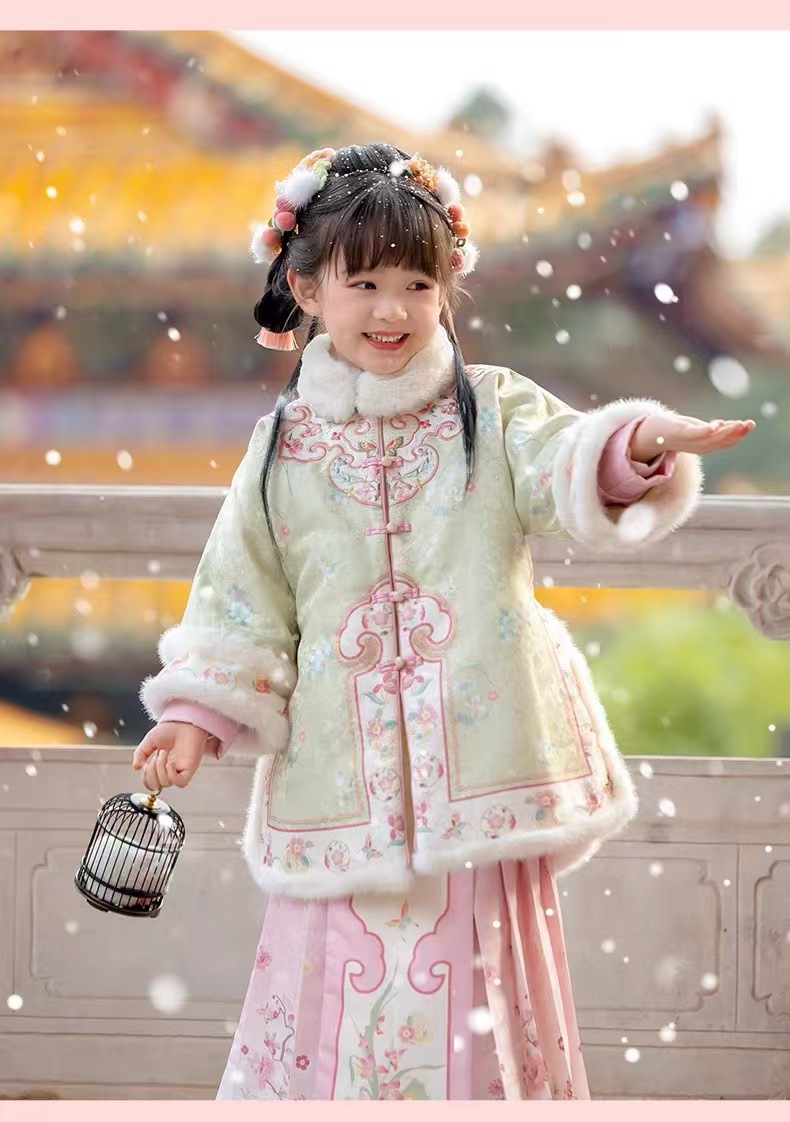 Новинка: зимний комплект ханьфу для девочек 2025 года, утепленный костюм в стиле Мин, юбка-мамьян для детей, древний костюм для девочек, сказочный наряд на Новый год.
