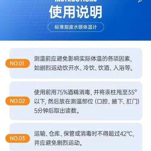 Термометр ртутный стеклянный подмышечный большой для взрослых и детей, термометр-зонд