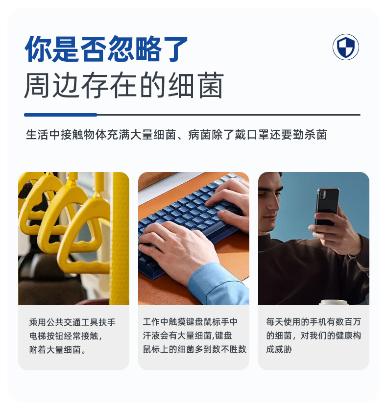 Степень стерилизации без смывания, быстрого высыхания составляет 99,99%. Этот продукт оказывает убийственное воздействие на Staphylococcus aureus, Escherichia coli, Monococcus monococcus aureus и Candida albicans.