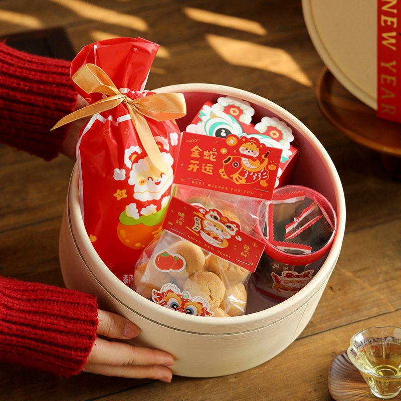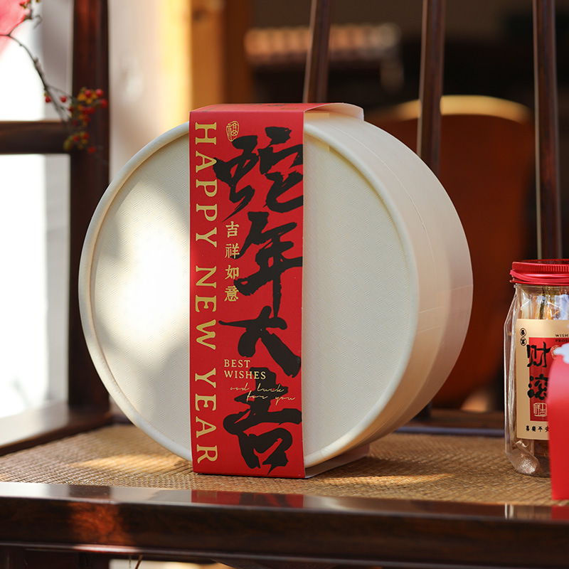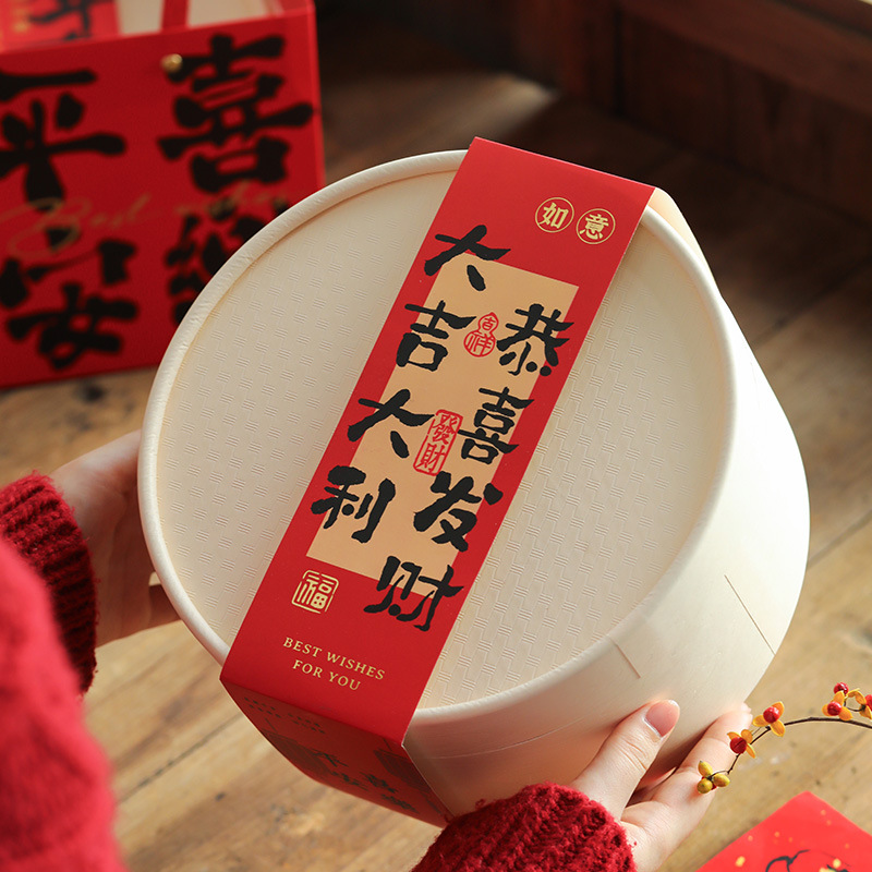 Подарочная упаковка на Новый год 2026: пустая коробка в китайском стиле для выпечки, печенья, конфет, на Год Лошади, для Праздника Весны и Нового года, в форме ведра