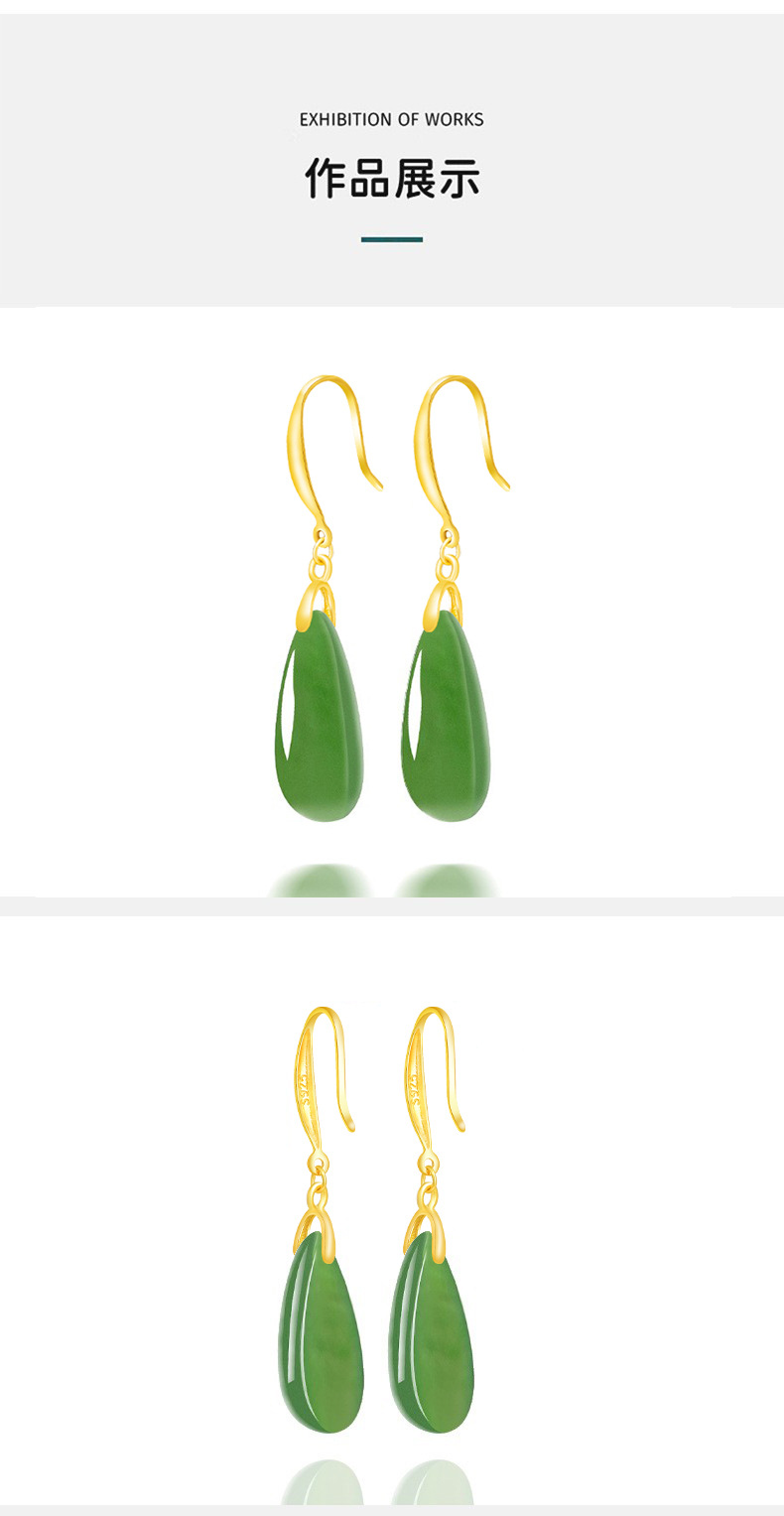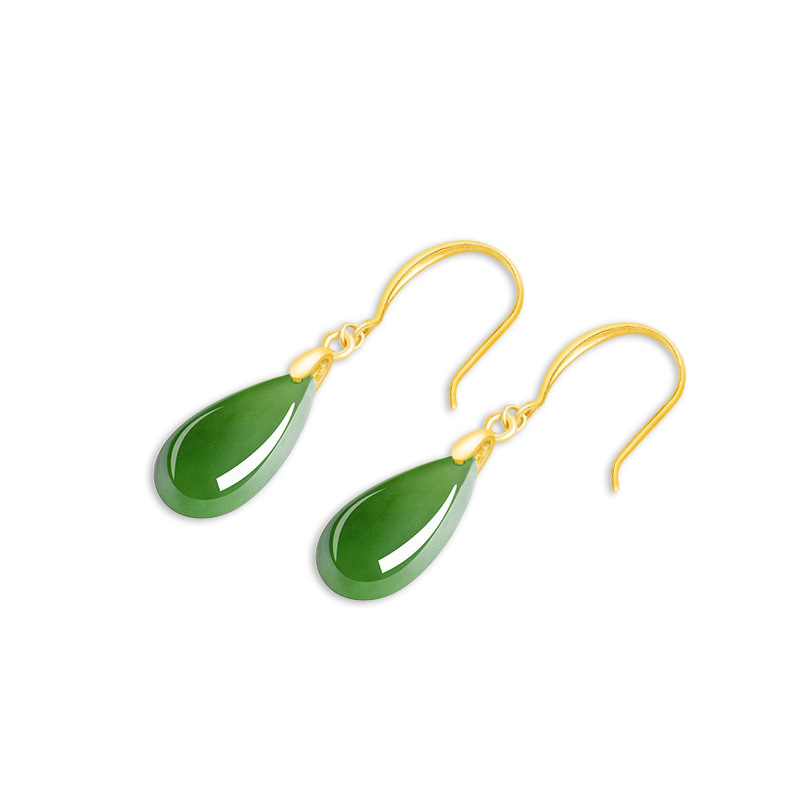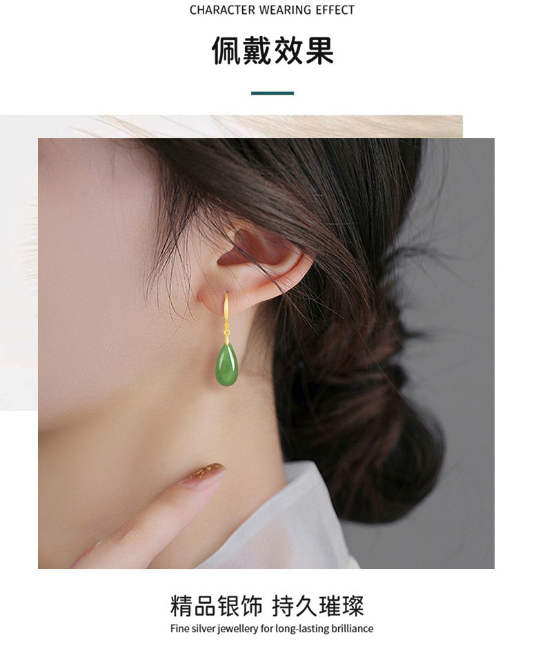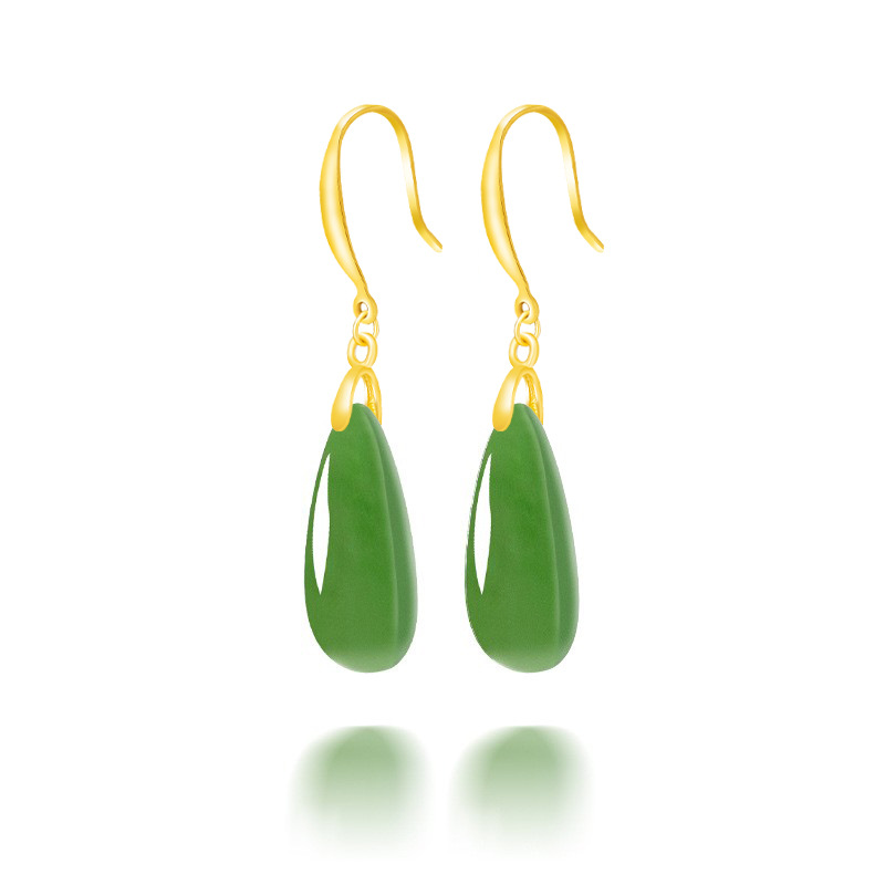 Старые материалы Натуральный Хотан Джейд Капли Нефритовые Серьги S925 Серебряные инкрустированные Высокие темпераменты Женские серьги-серьги Новые