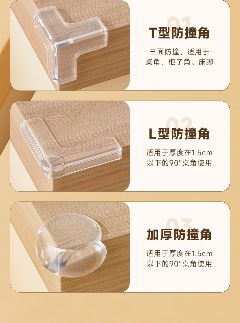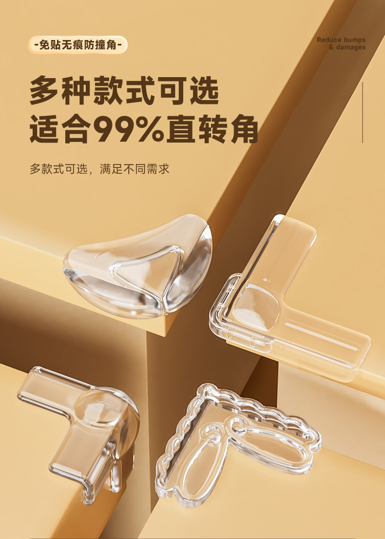 L-образный угол для предотвращения столкновений; L-образный мини-угловой защитный элемент с воздушной подушкой; L-образный уголок окна с подушкой безопасности [запатентованная модель]; Угловой маленький оконный проем в форме буквы L; Г-образный большой угловой оконный проем; Т-образный небольшой уголок для предотвращения столкновений; Т-образный большой противоударный уголок; Маленький круглый противоударный уголок; Секторообразный угол против столкновений; Уголок с защитой от столкновений в форме капли воды; Уголок против столкновений в форме бабочки [запатентованная модель]; Уголок против столкновений в форме слитка